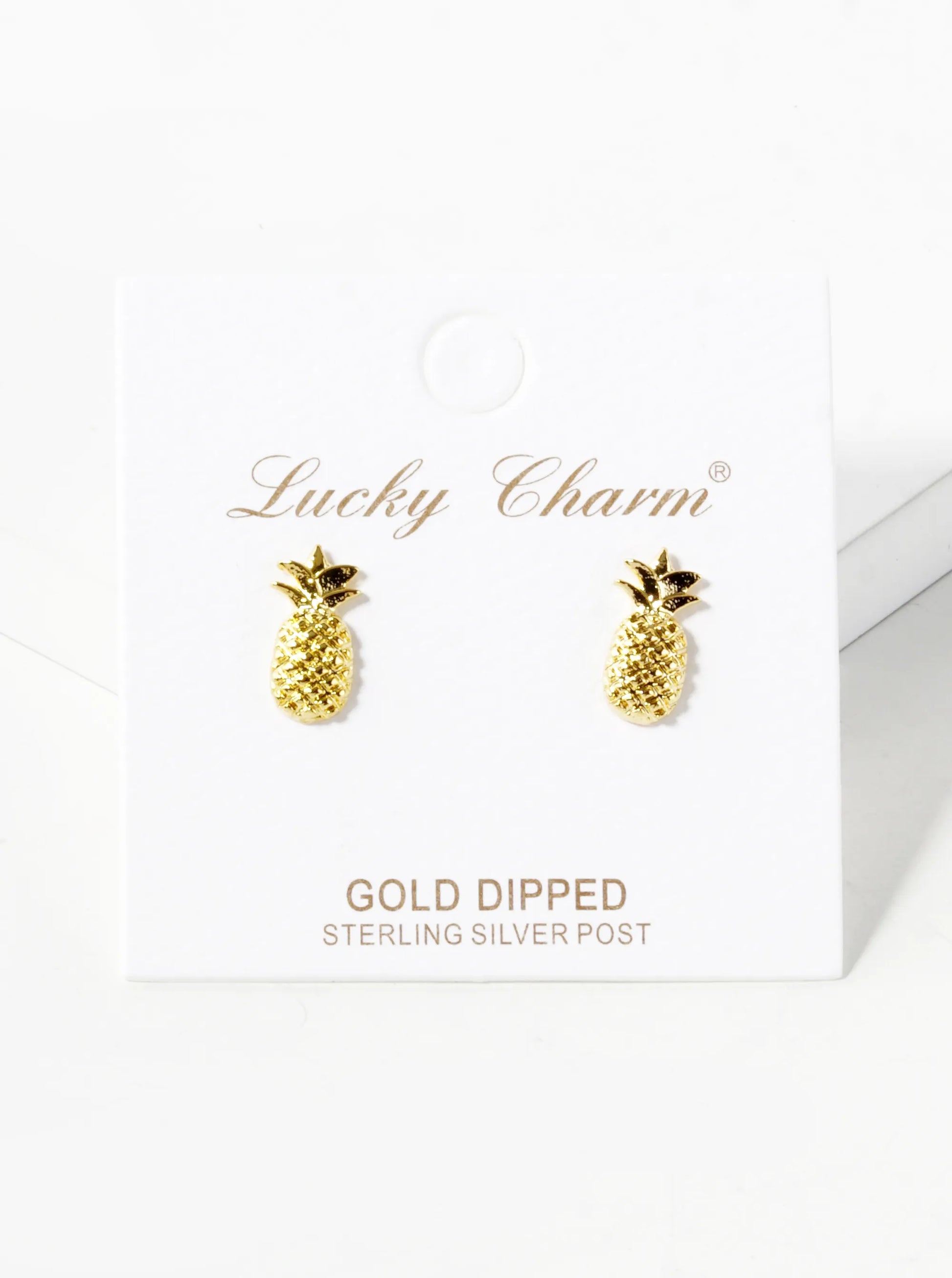 18K Gold Dipped Textured 12mm Brass Pineapple Sterling Silver Post Stud Earrings