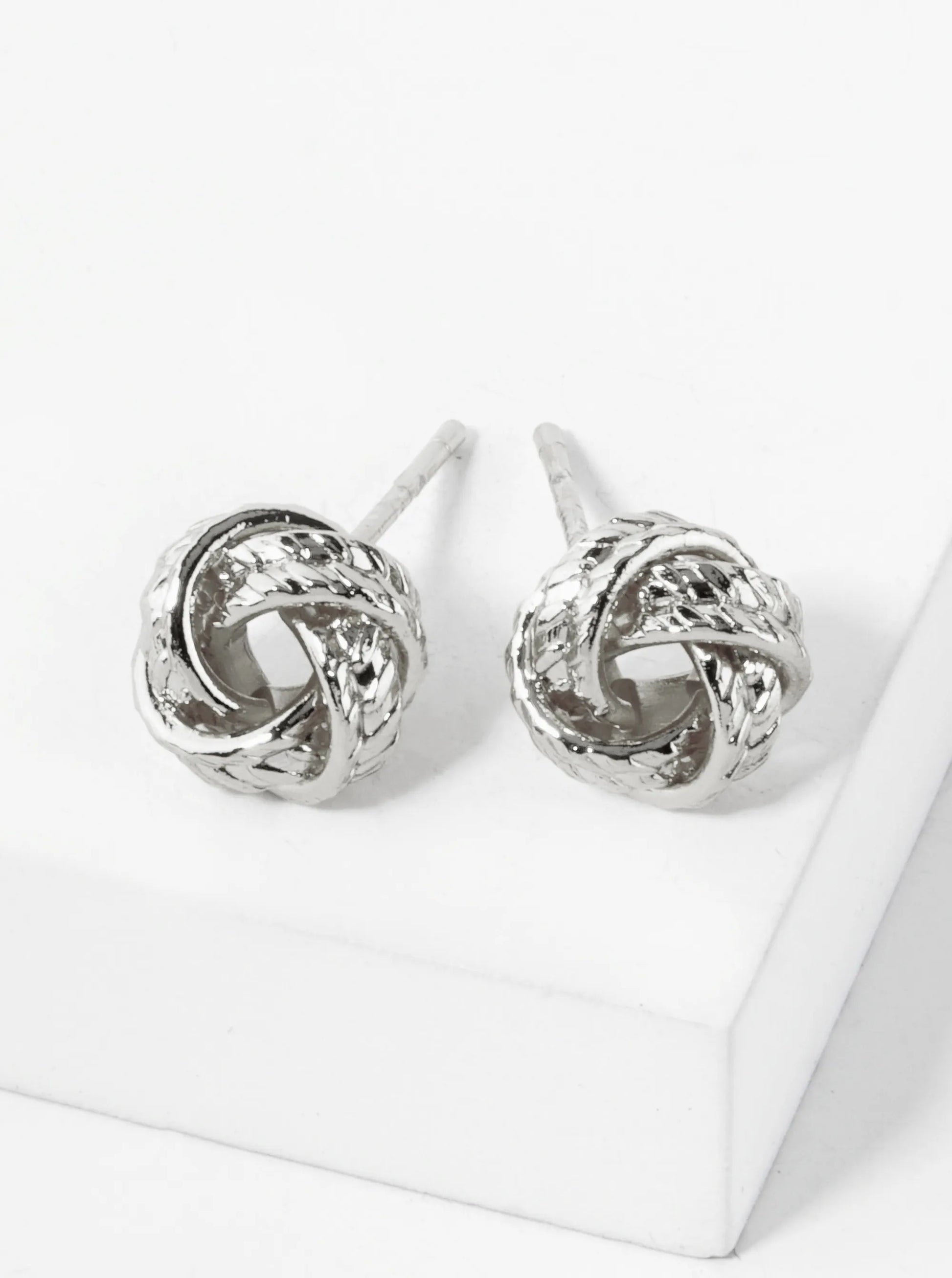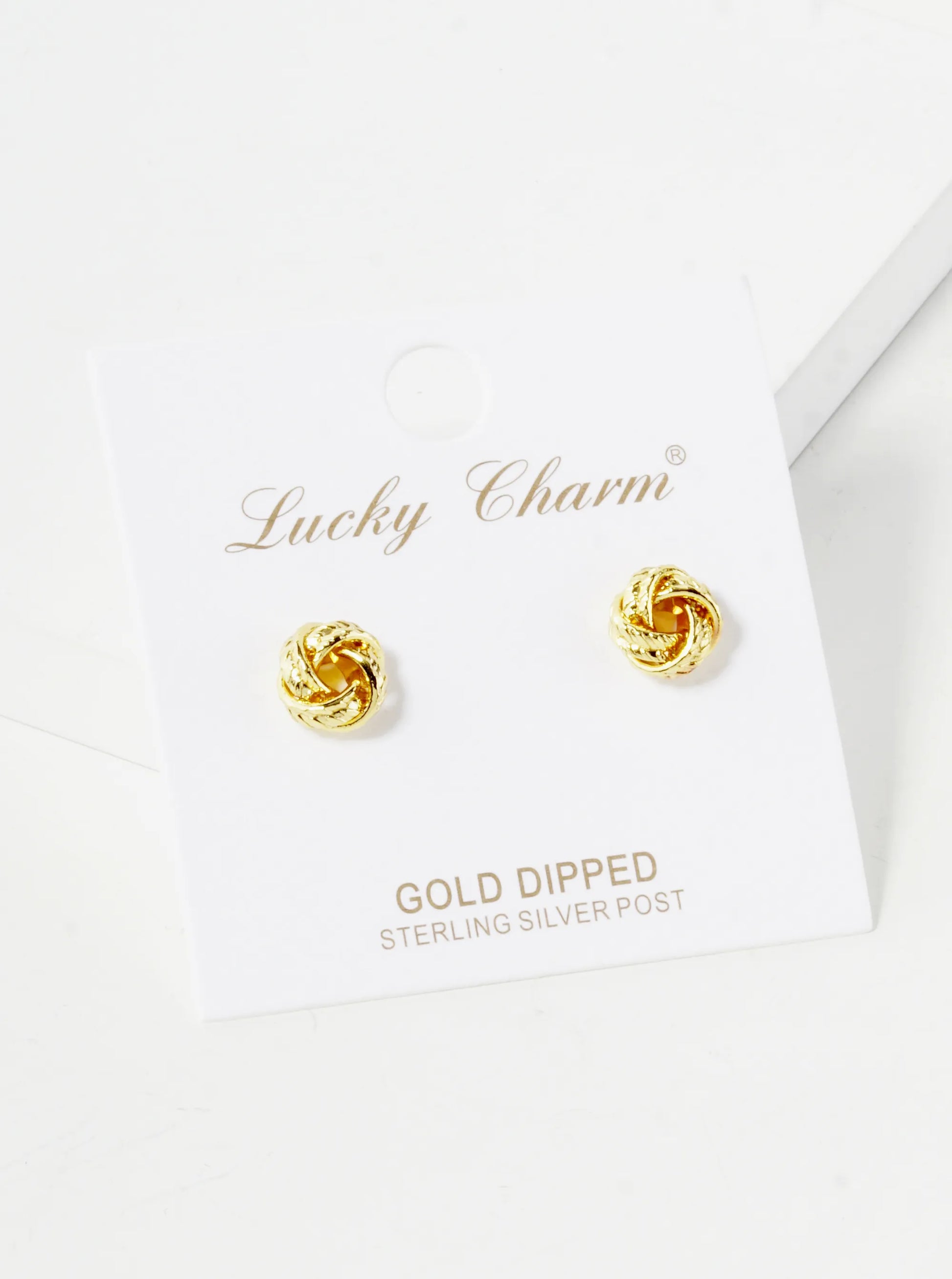 18K Gold Dipped Textured 8mm Love Knot Stud Earrings
