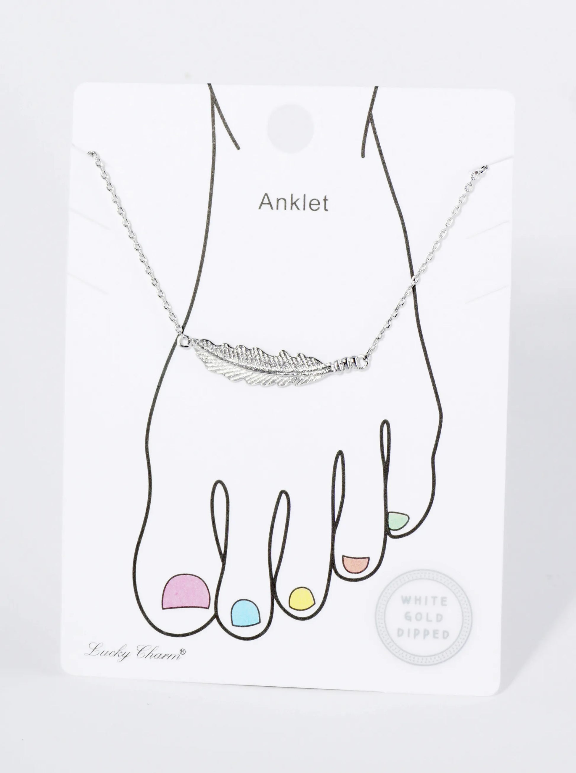 18K Gold Dipped Textured Feather Brass Chain Anklet