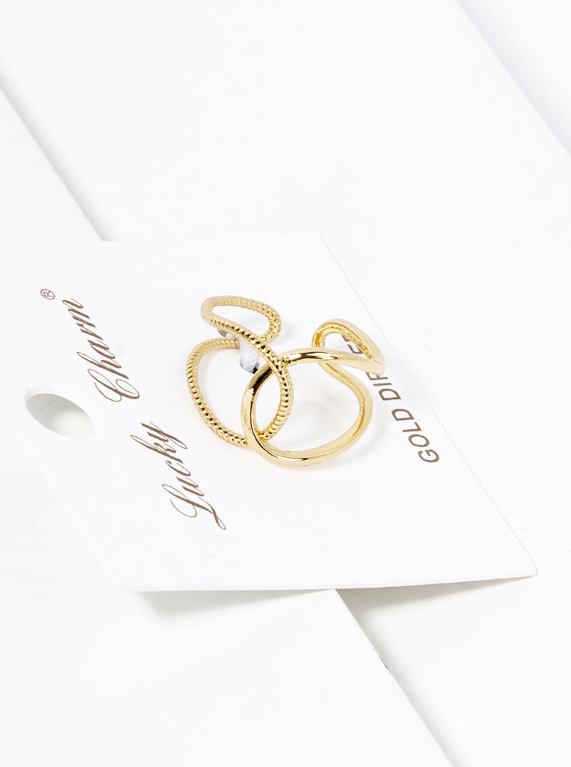 18k Gold Dipped Textured Metal Adjustable Interlocking Ring