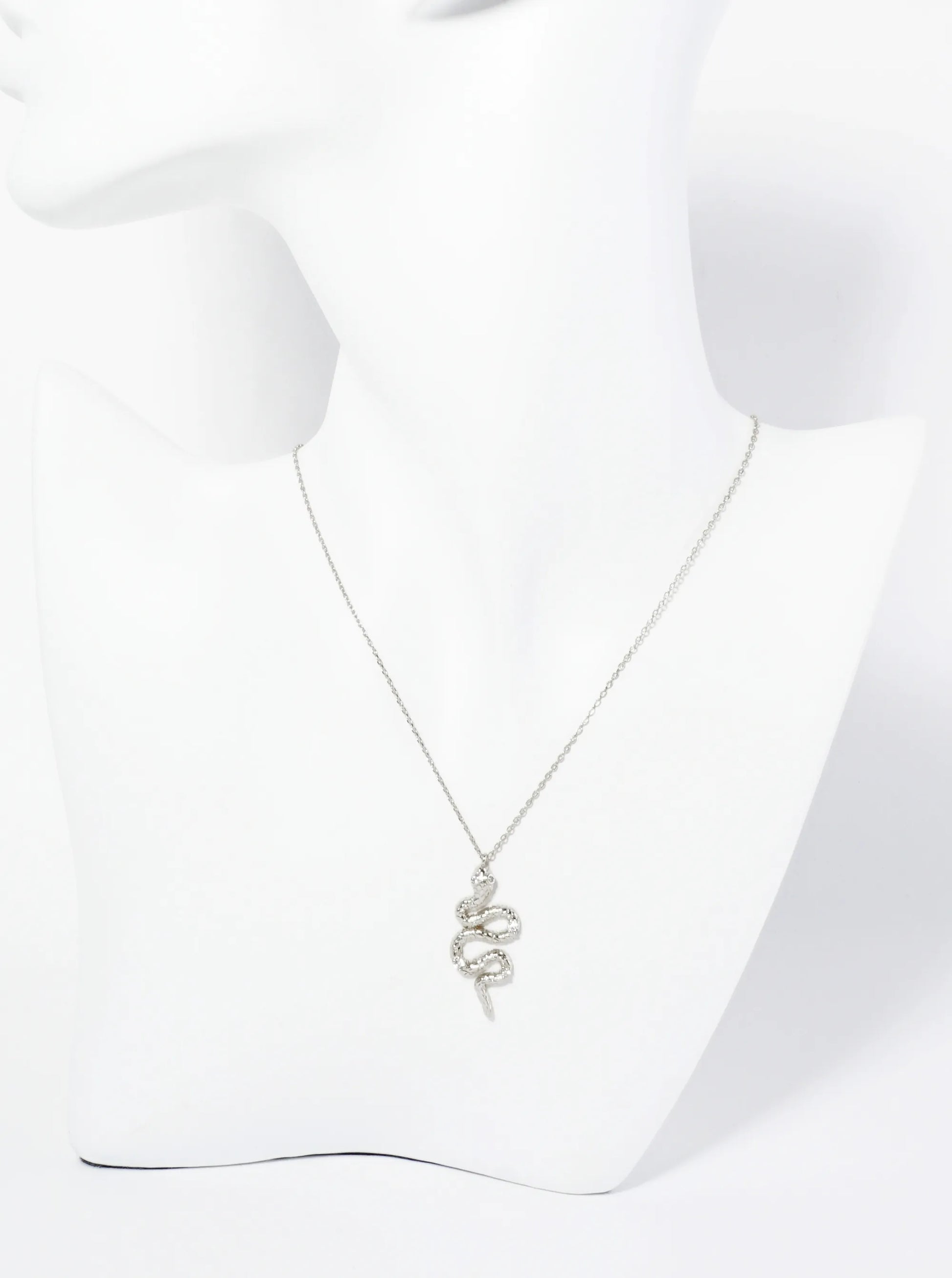 18K Gold Dipped Textured Snake Pendant Adorned With CZ Stones Necklace