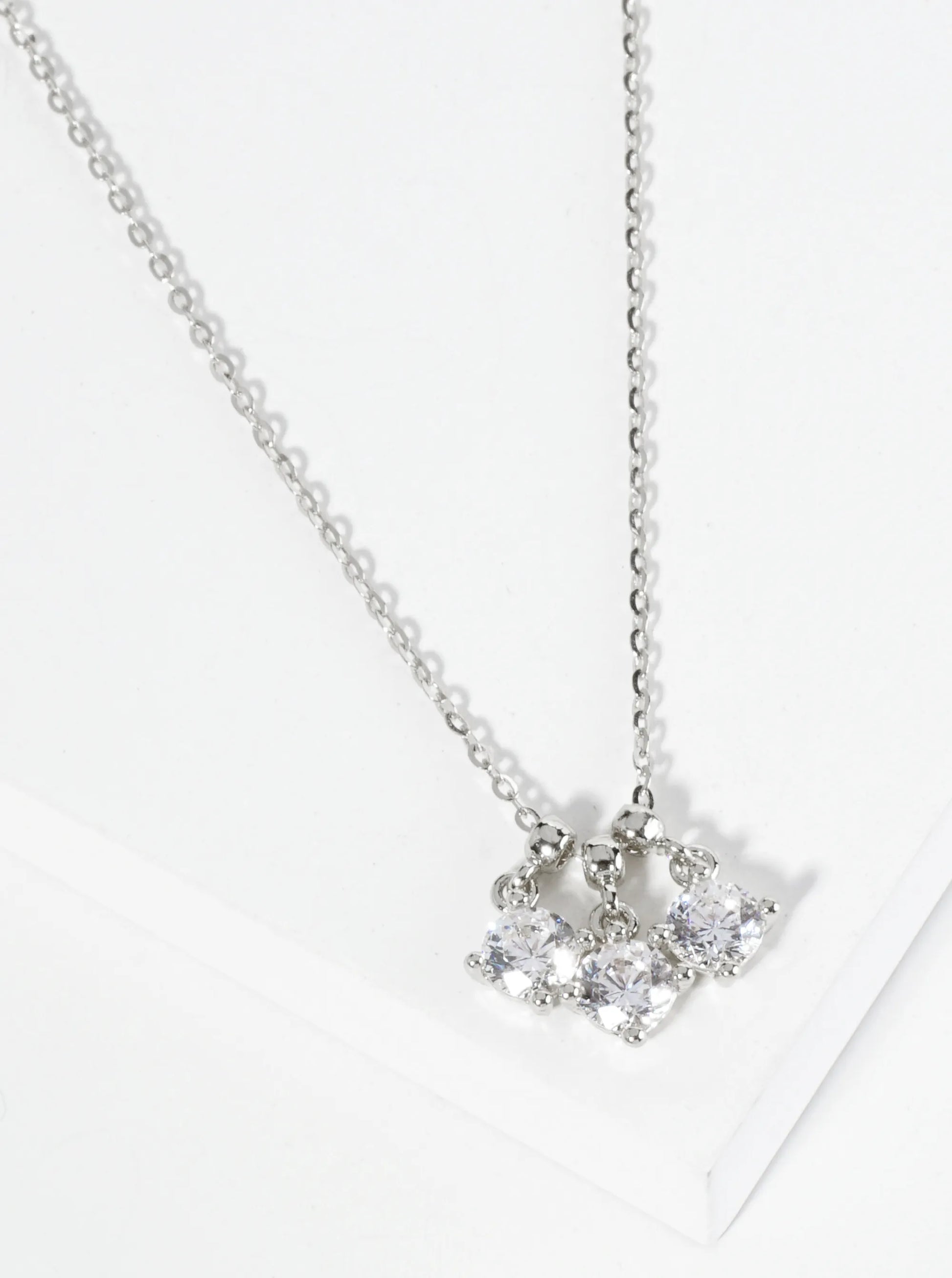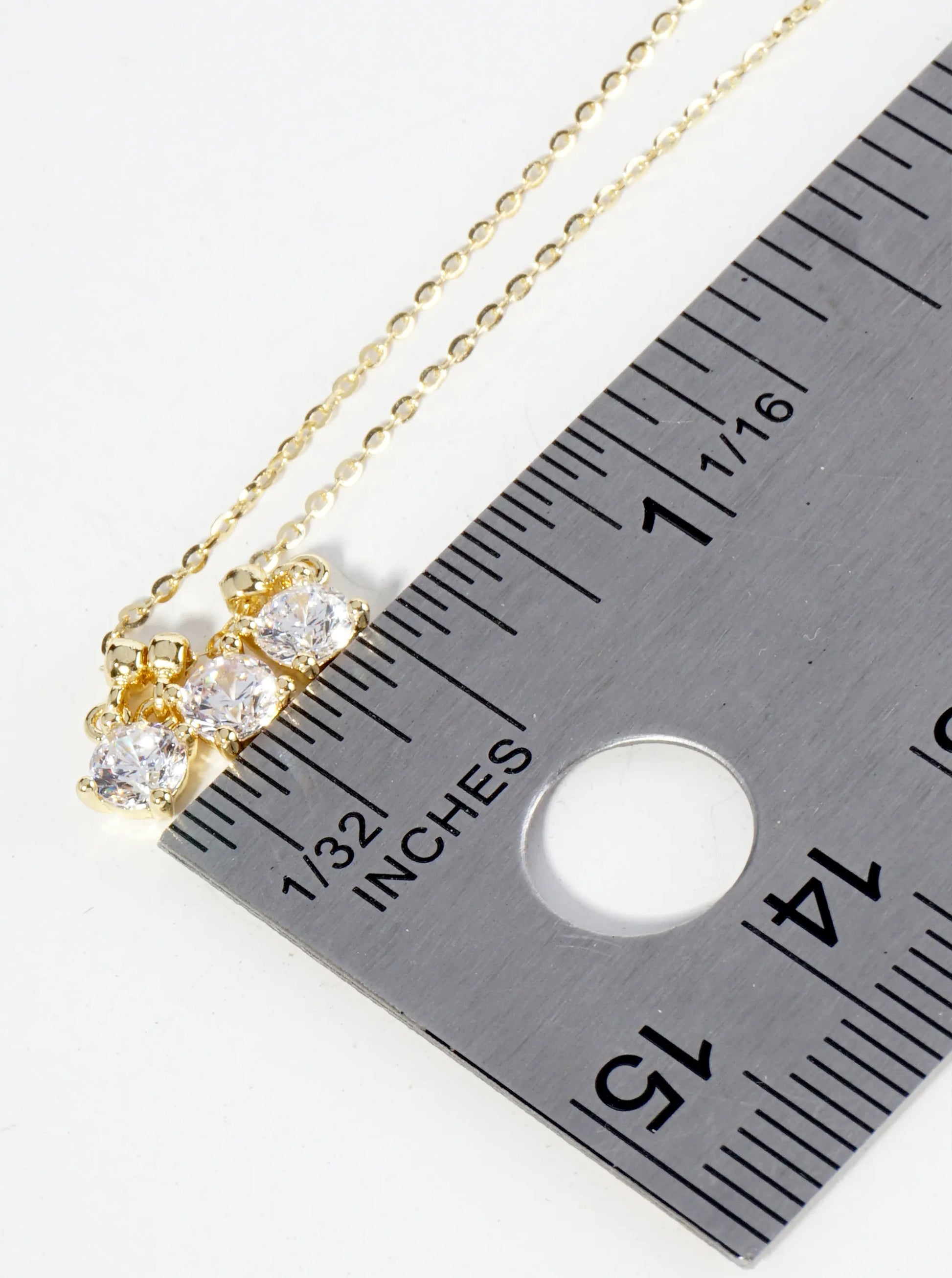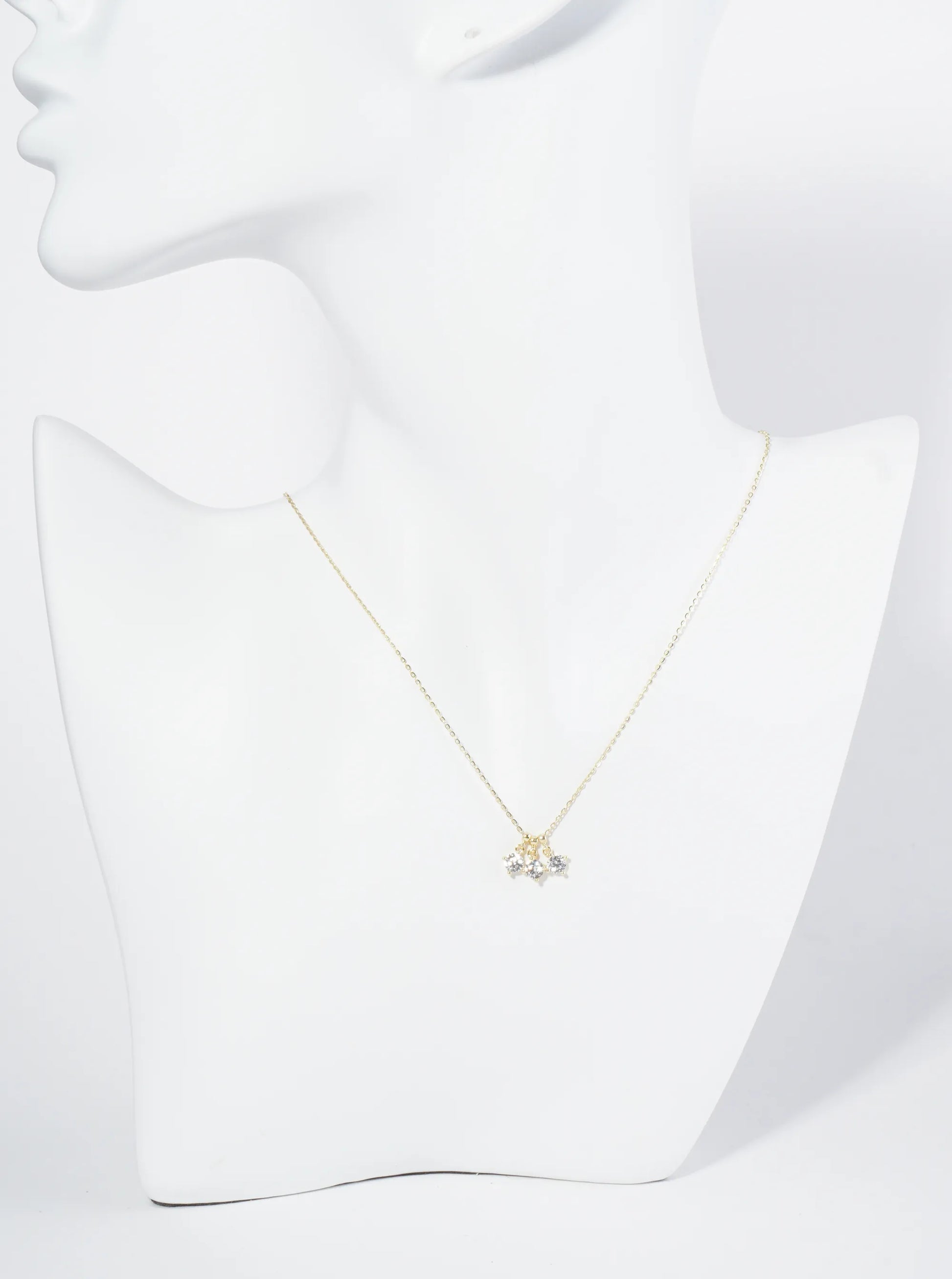18K Gold Dipped Three 4-Prong Cubic Zirconia Pendant Necklace