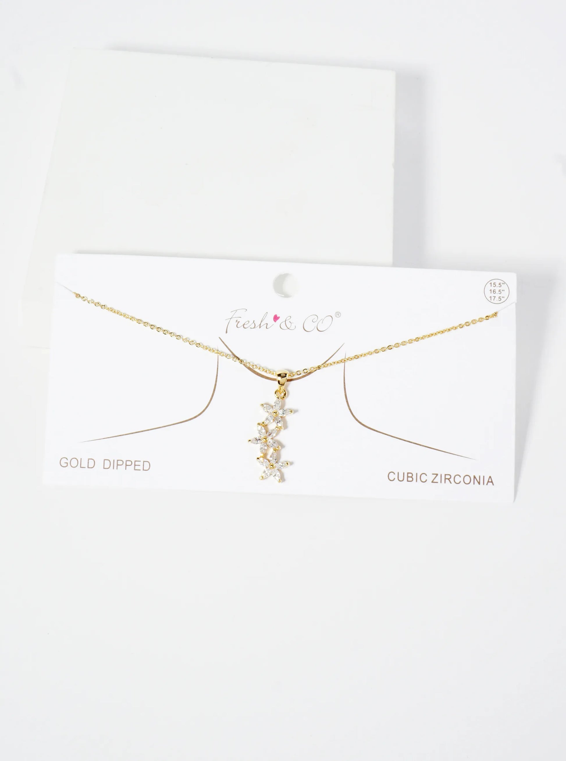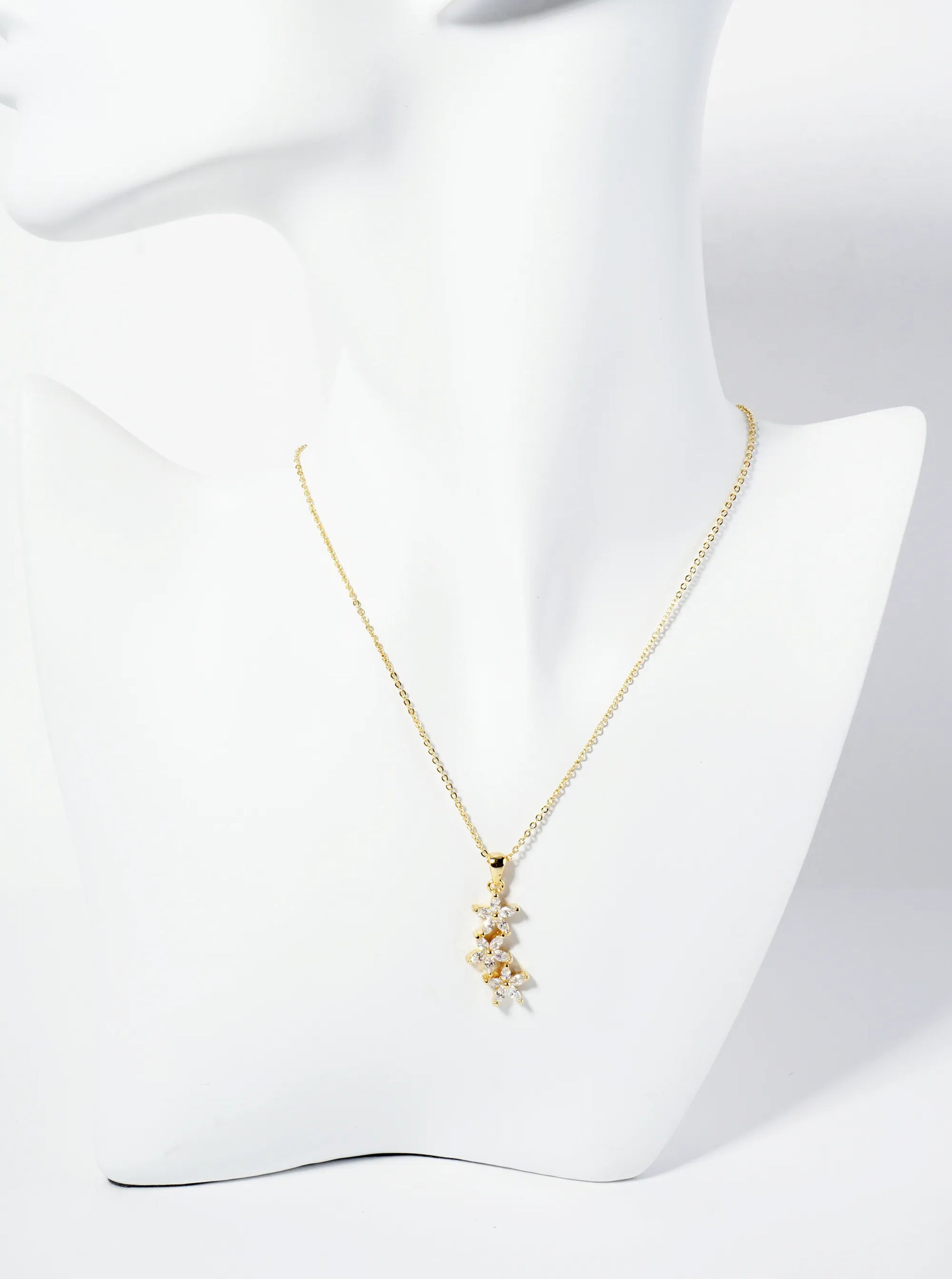 18K Gold Dipped Three CZ Flower Drop Pendant Necklace