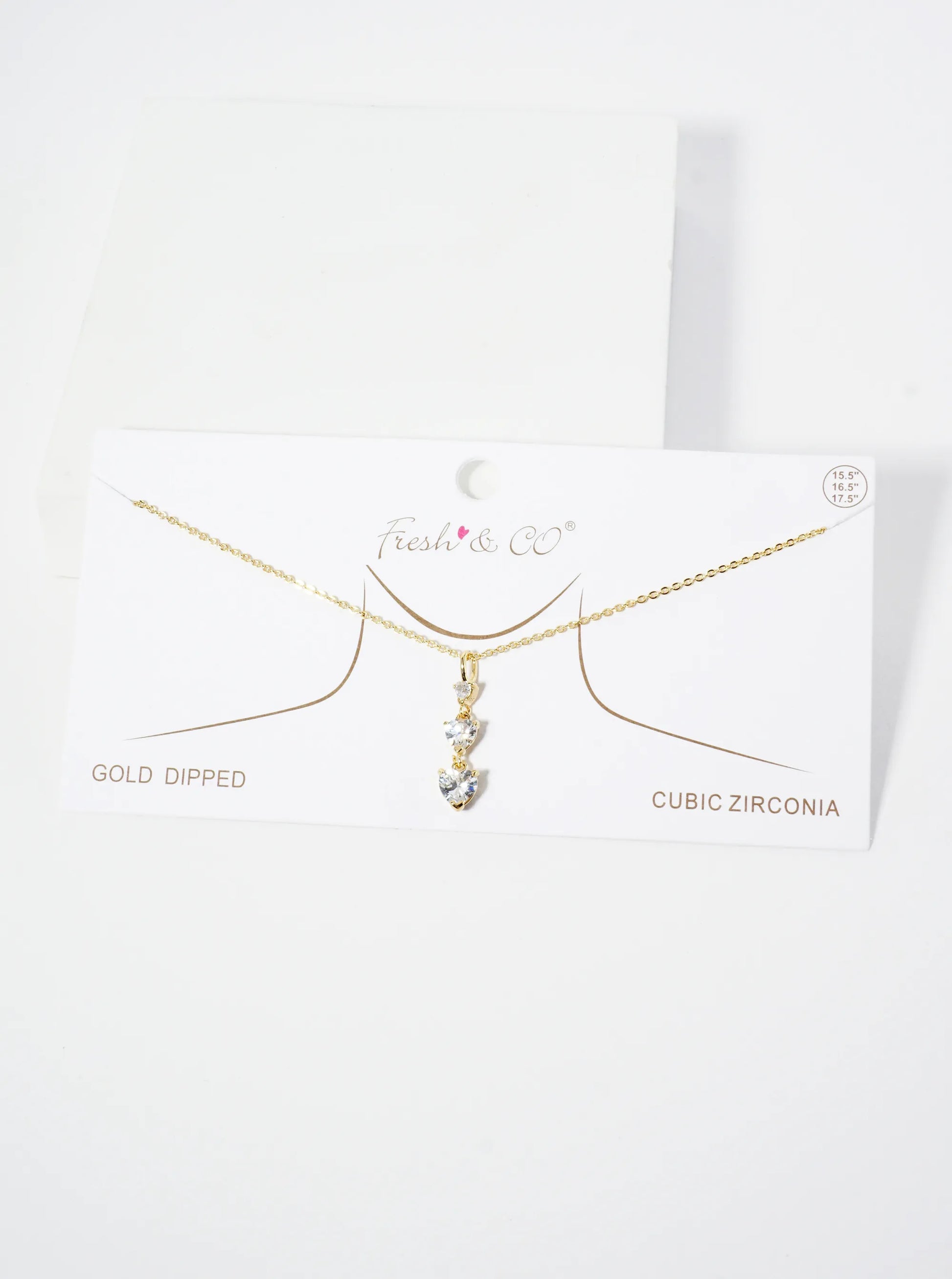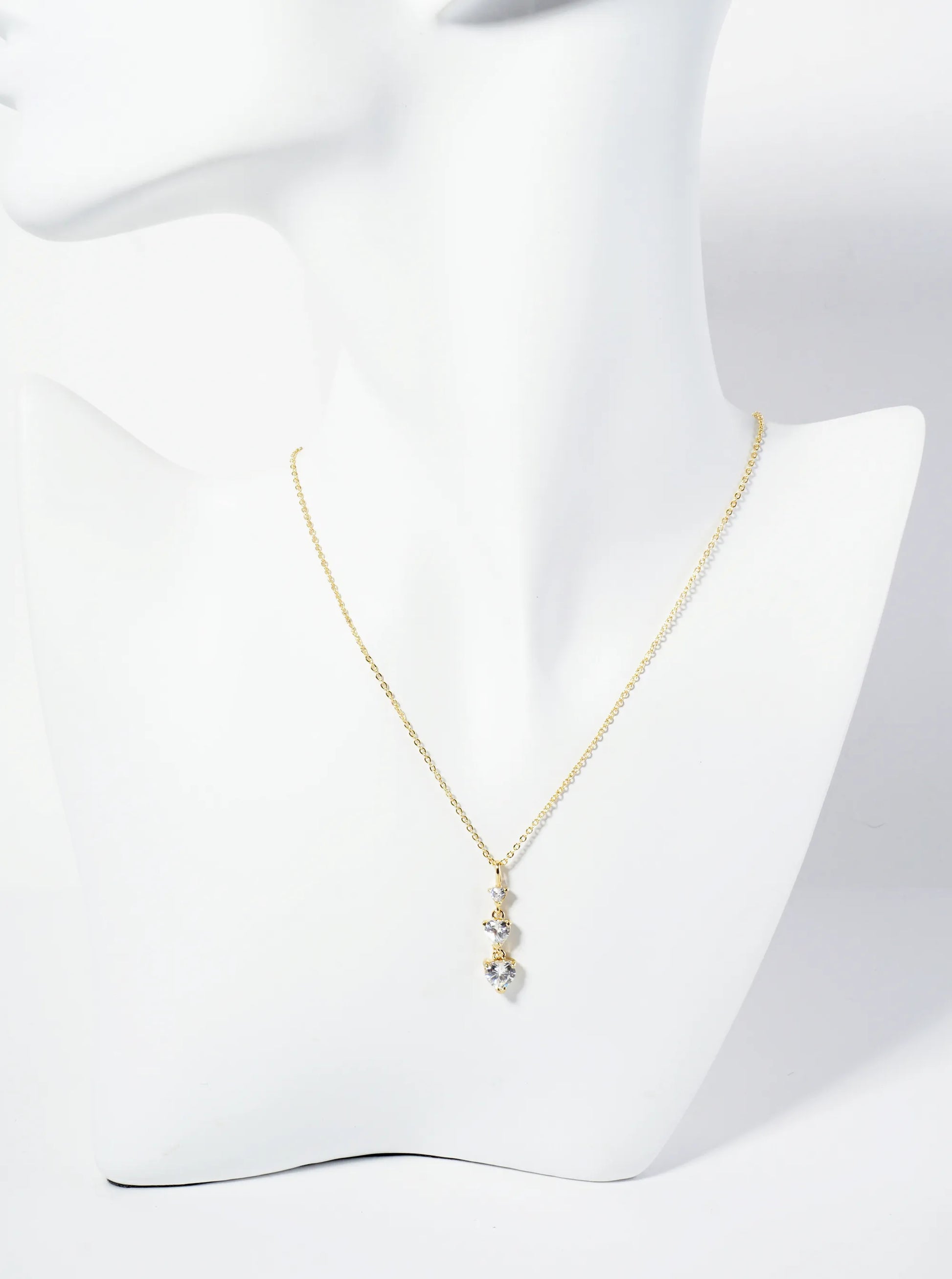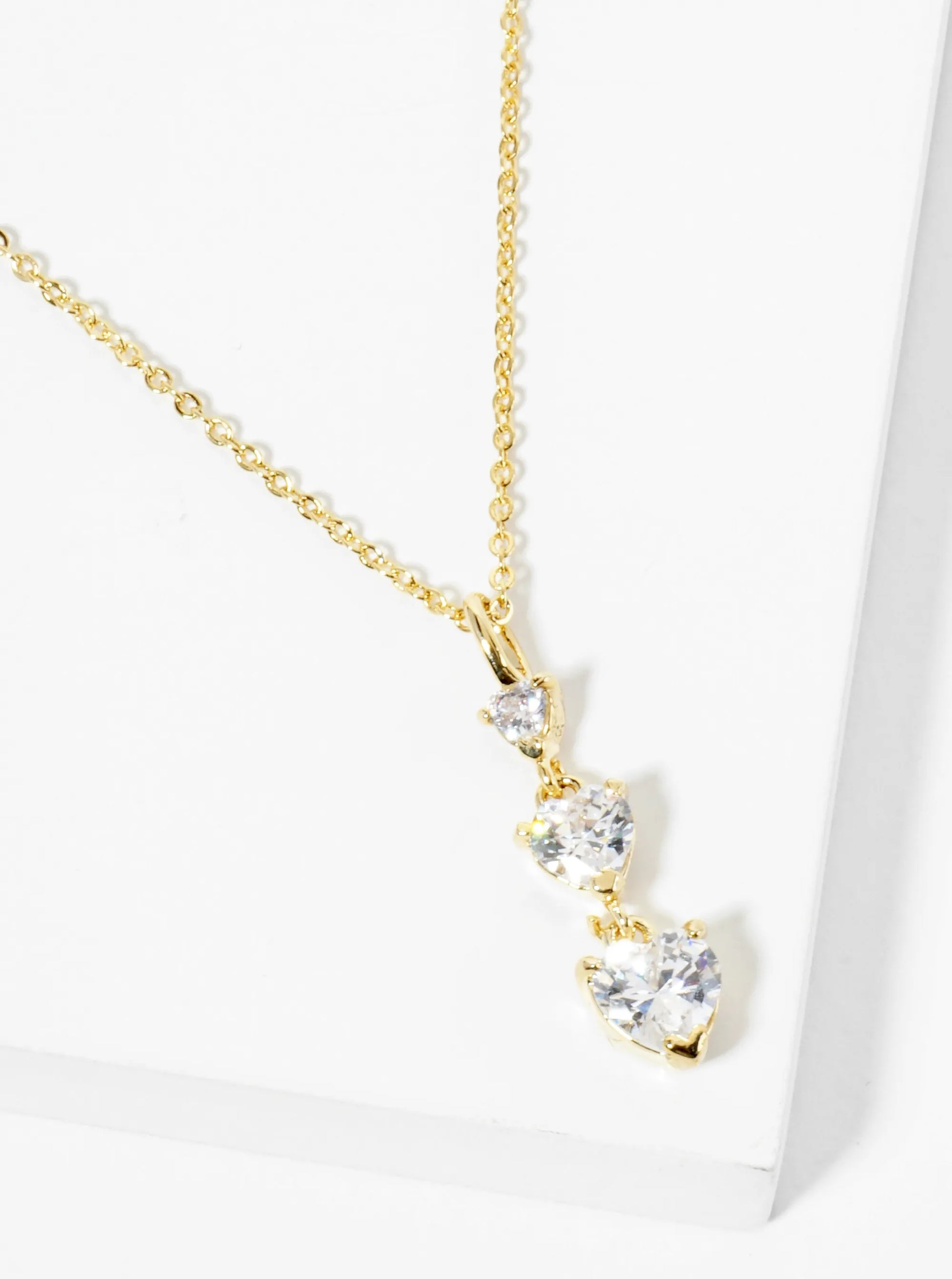 18K Gold Dipped Three Graduated Heart CZ Stones Pendant Necklace