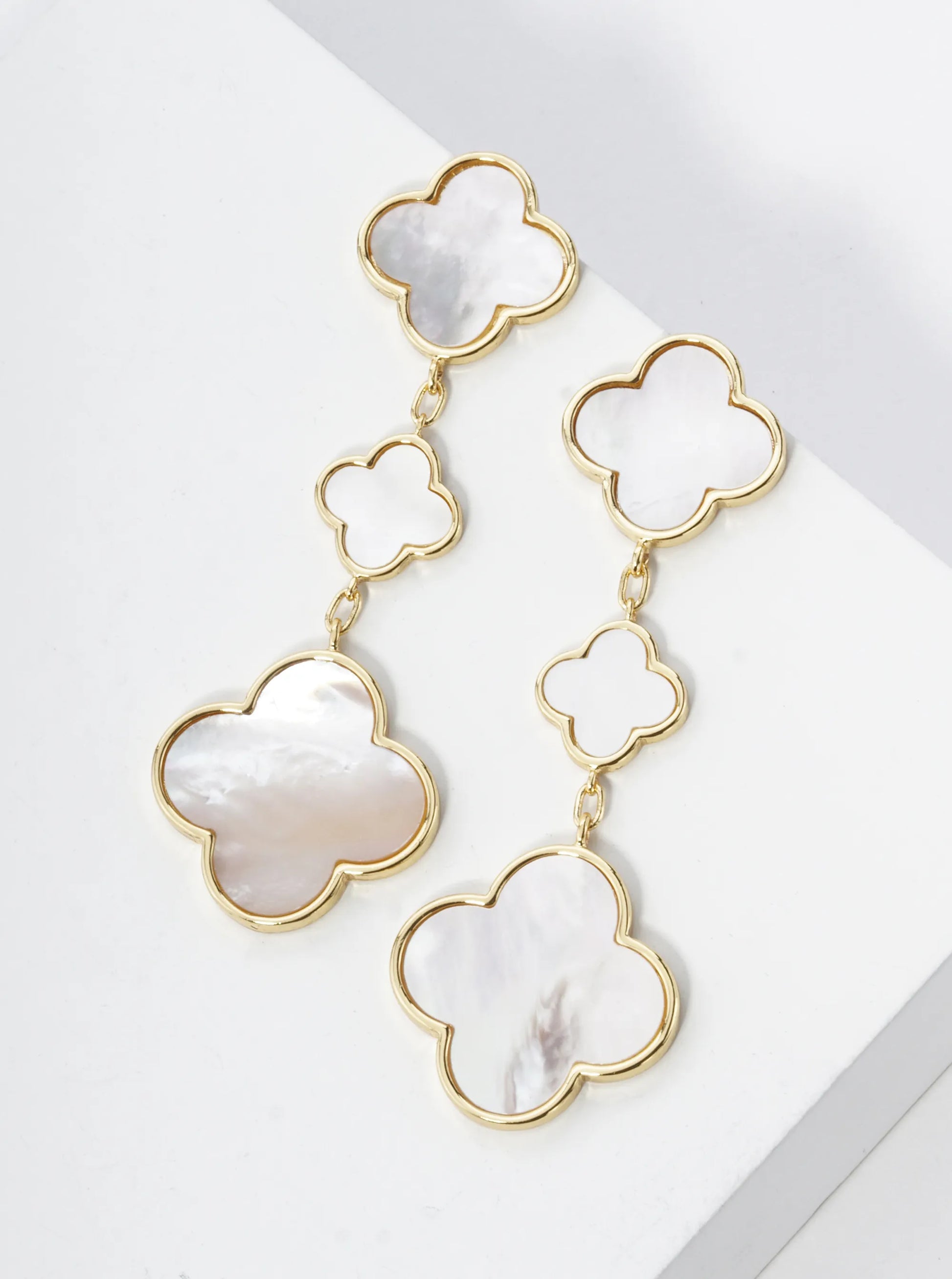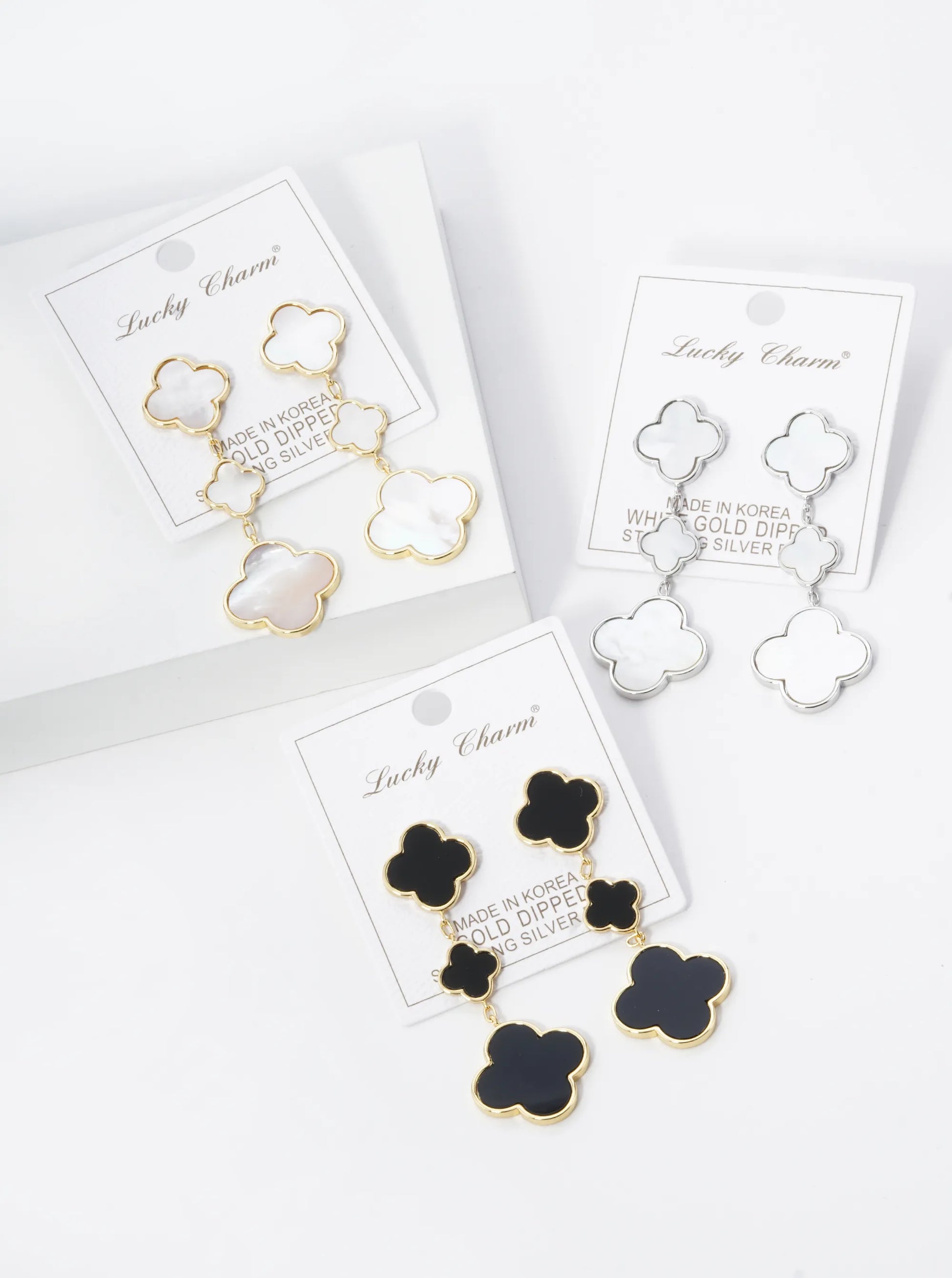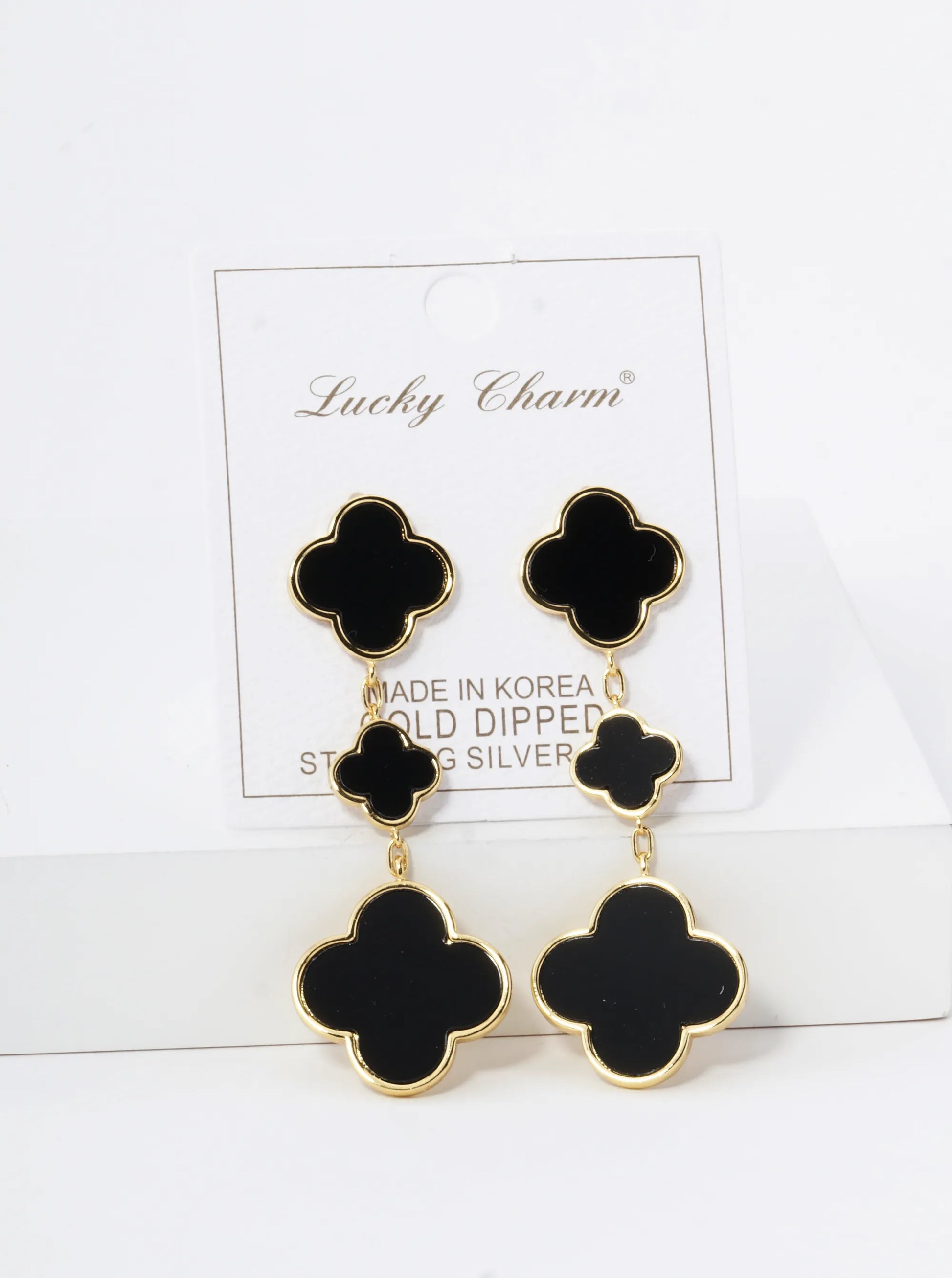 18K Gold Dipped Three Quatrefoil Drop Dangle Post Earrings