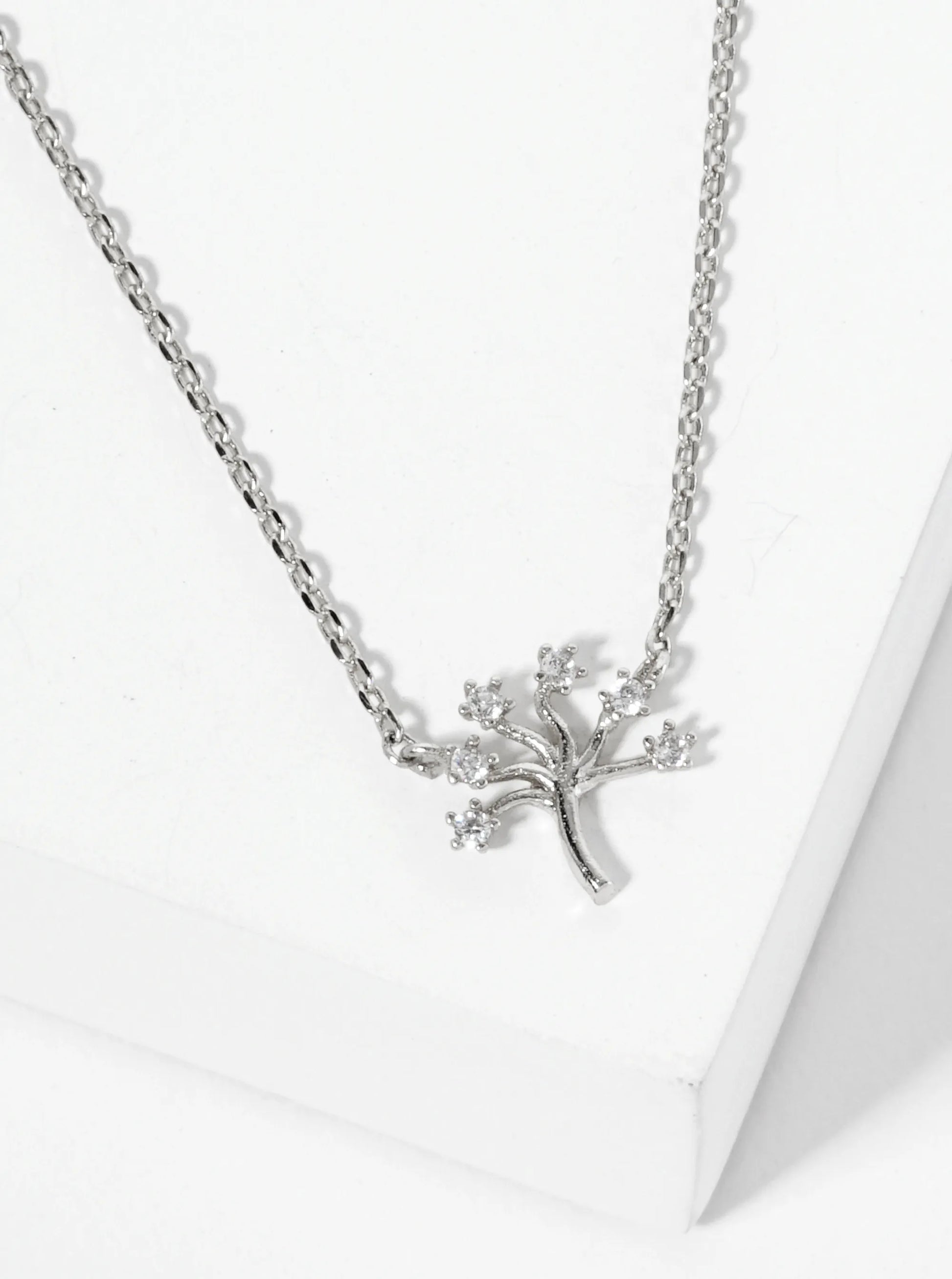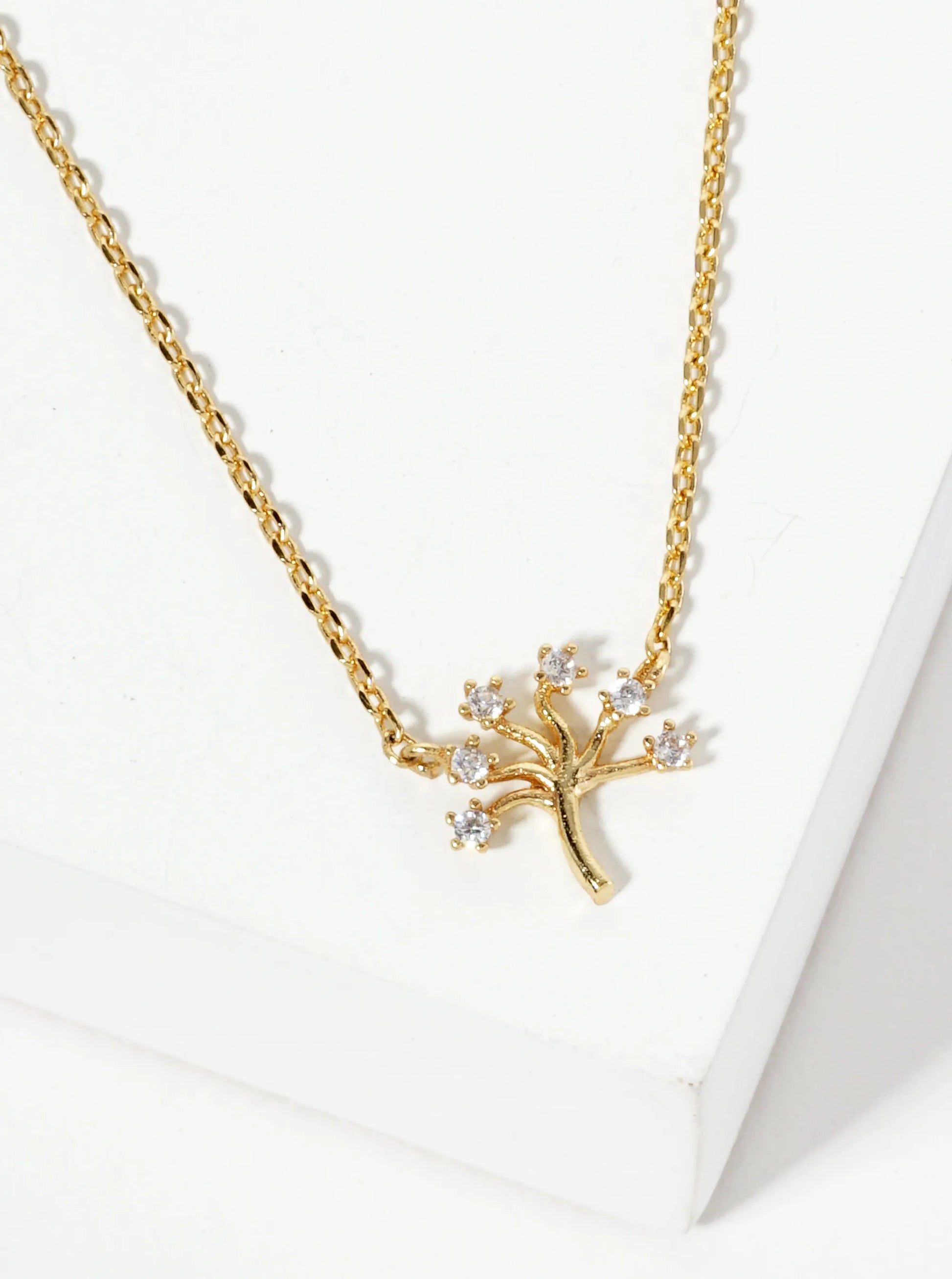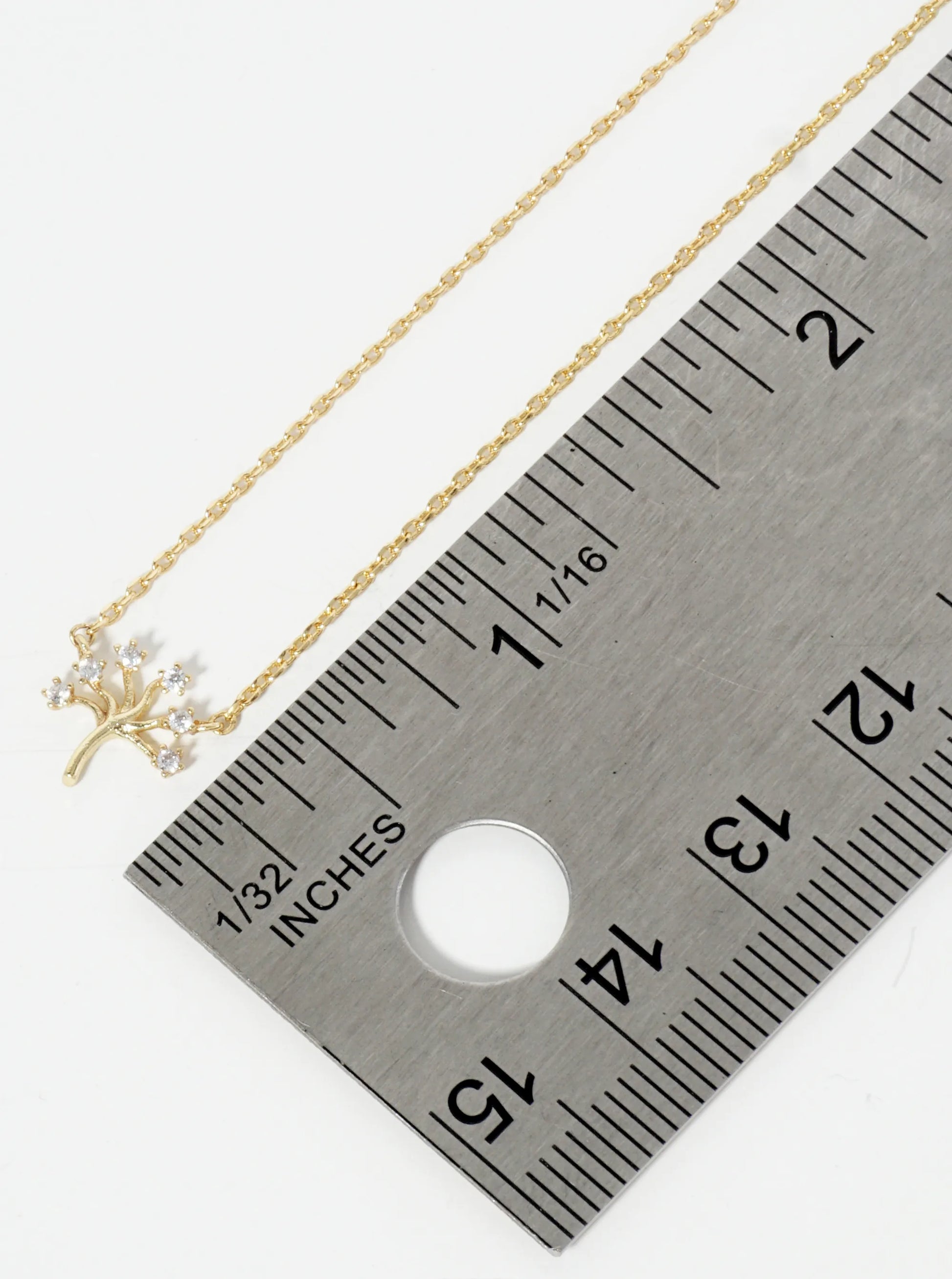 18K Gold Dipped Tiny CZ Tree Of Life Pendant Necklace