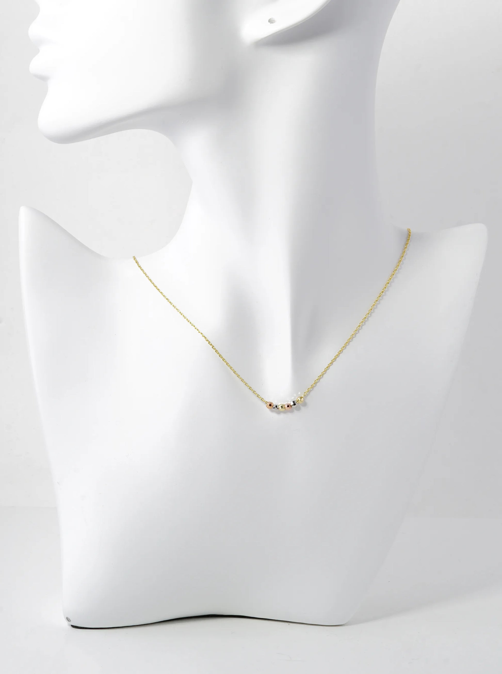 18K Gold Dipped Tri Color Textured Beads Pendant Delicate Necklace