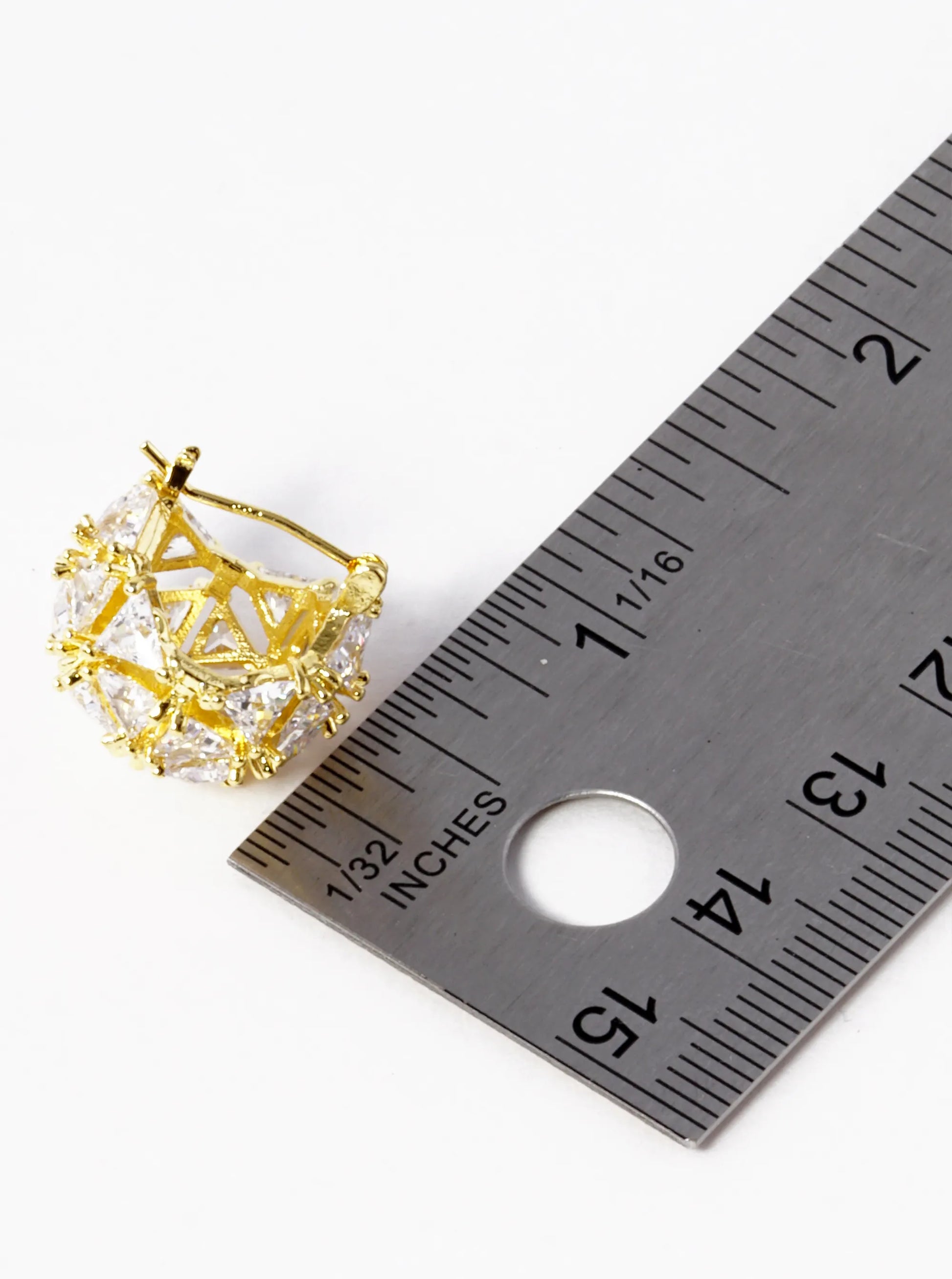 18K Gold Dipped Triangle Cubic Zirconia Ball Hoop Earrings