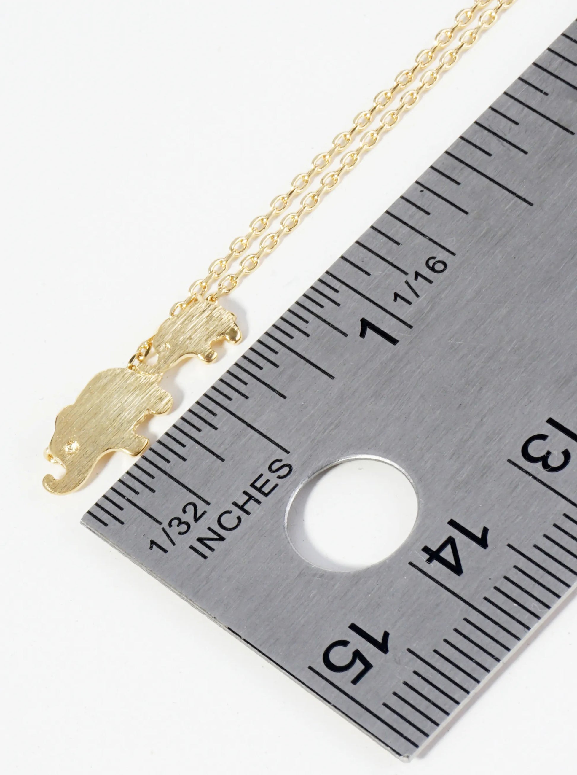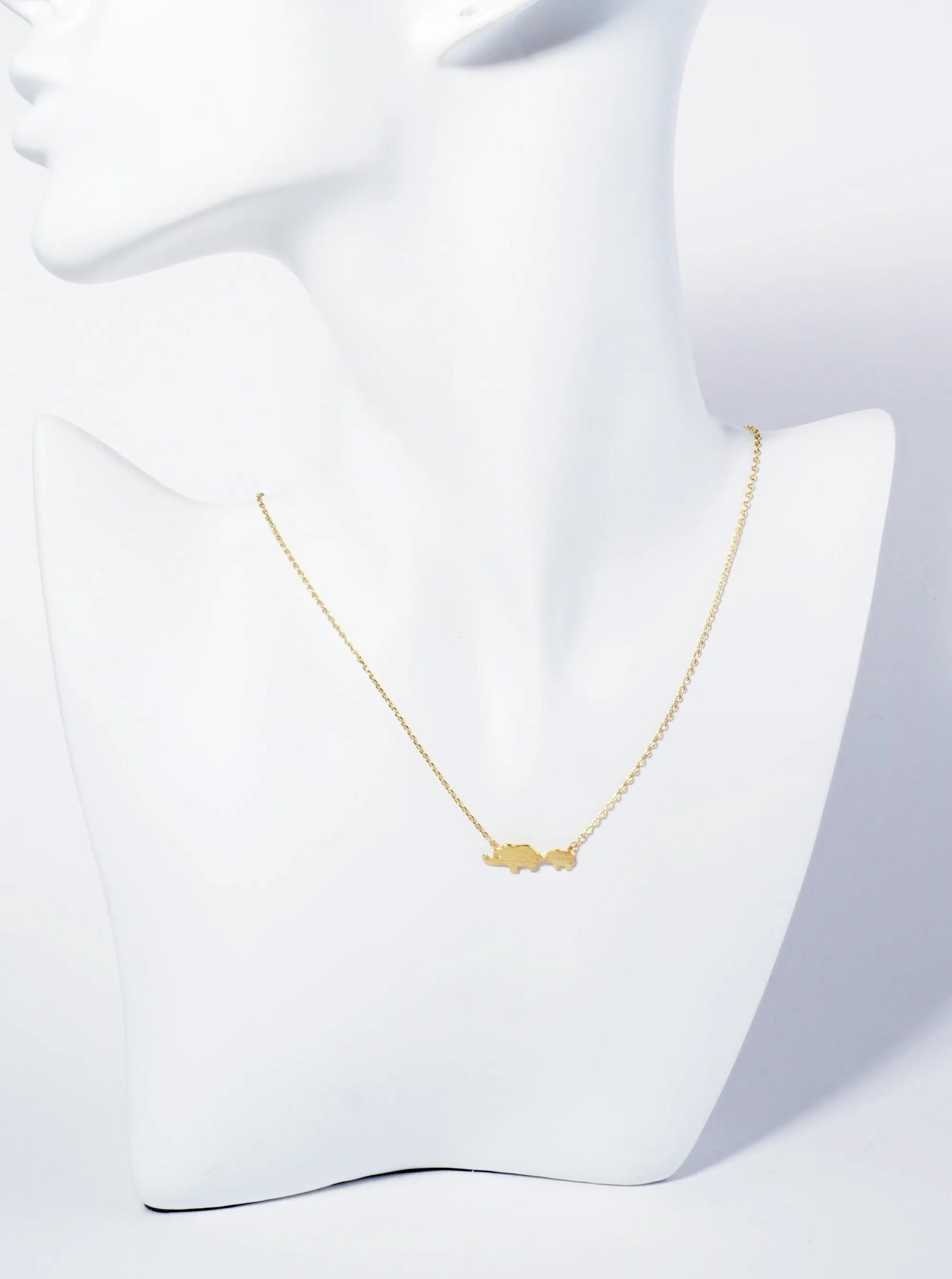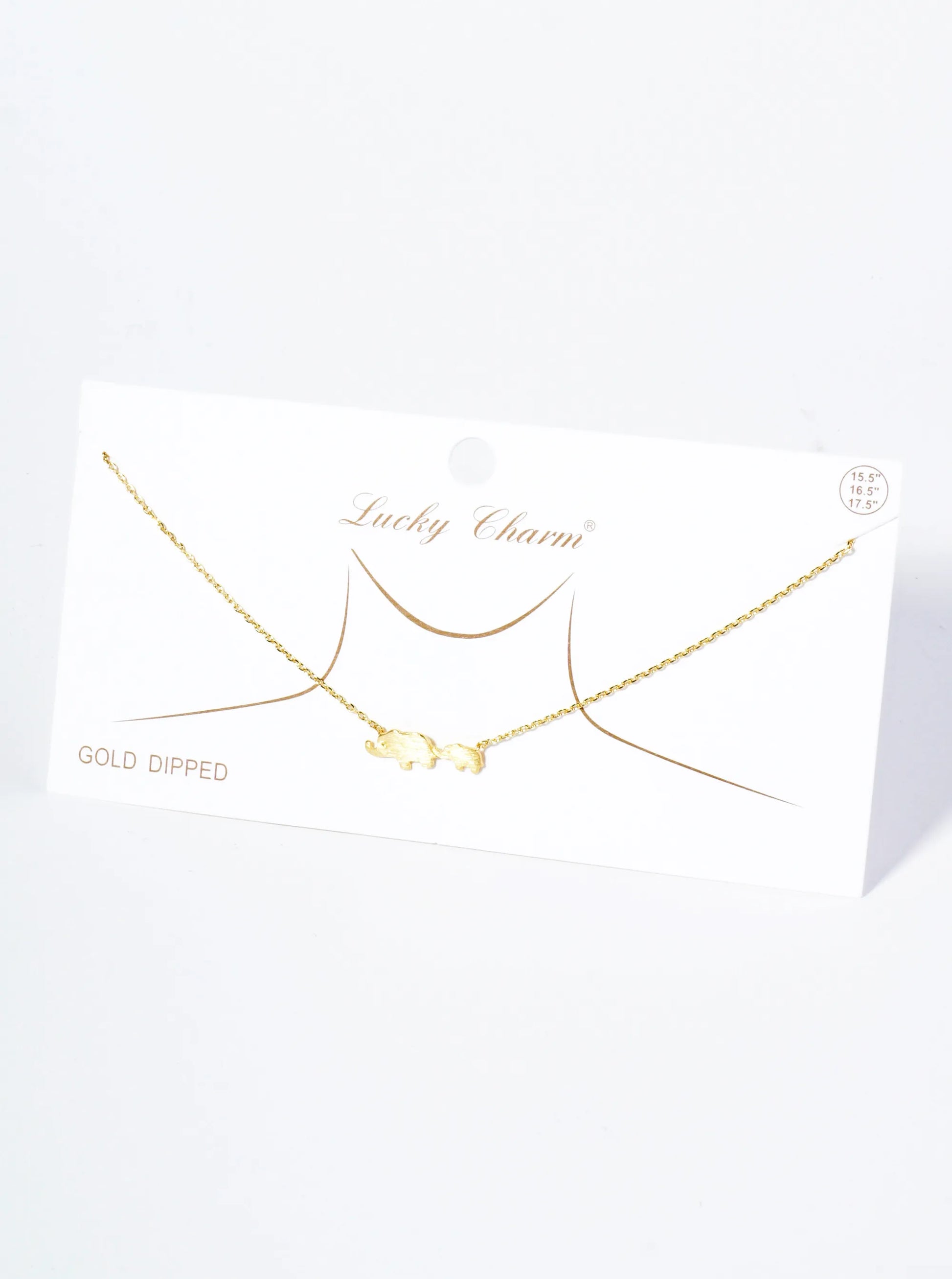 18K Gold Dipped Two Brushed Brass Elephants Pendant Necklace