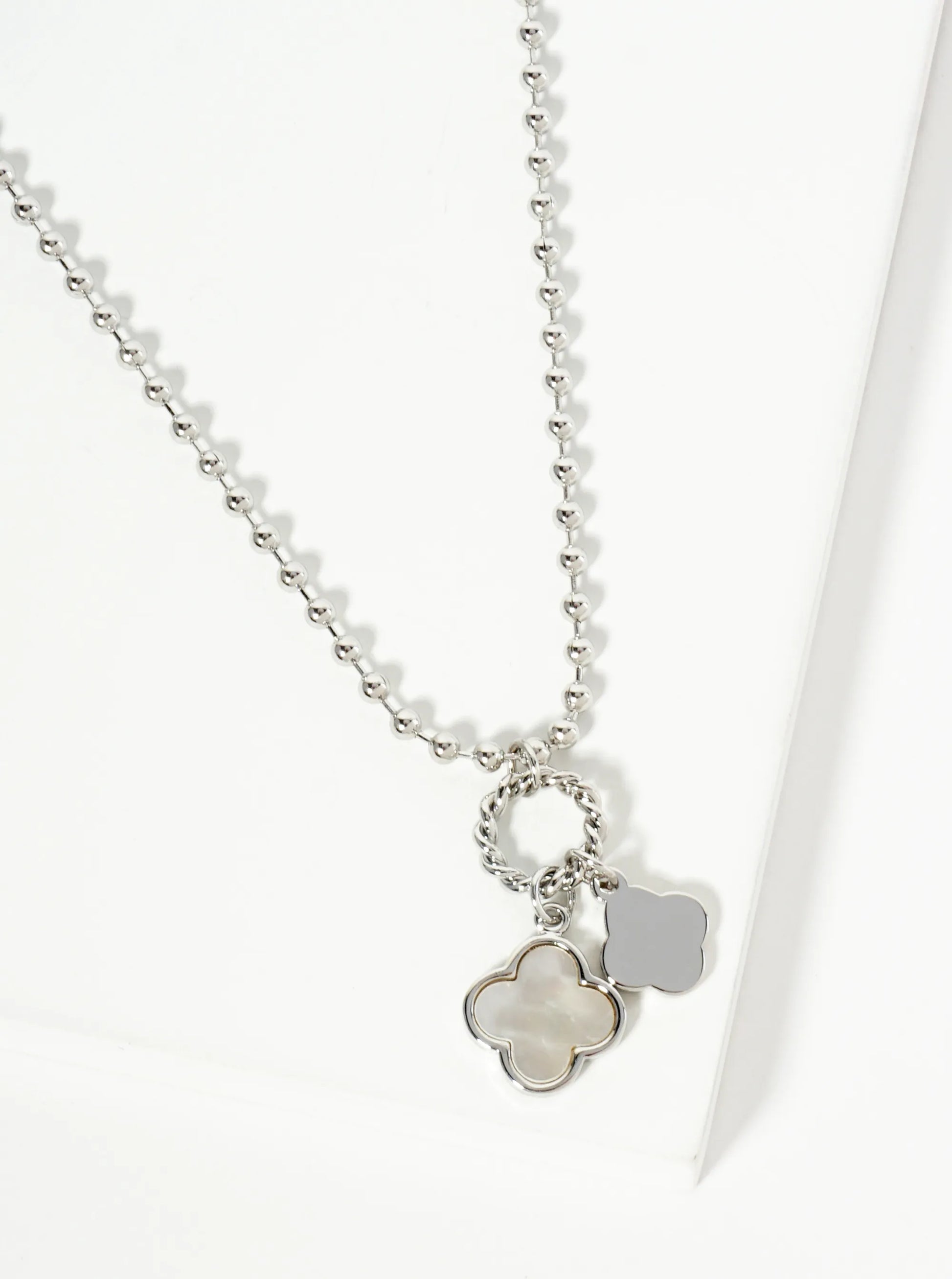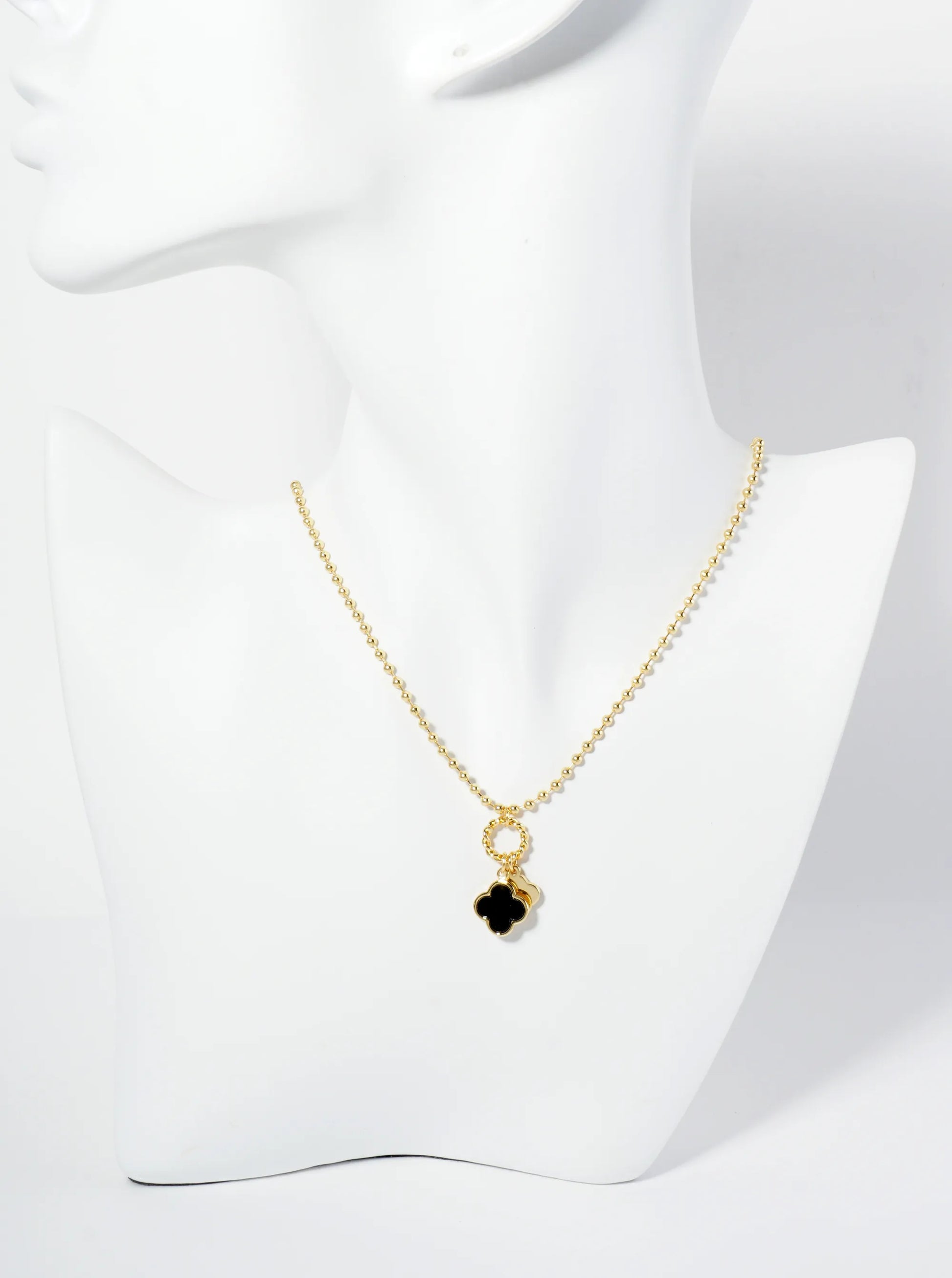 18K Gold Dipped Two Quatrefoils Pendant Ball Chain Necklace