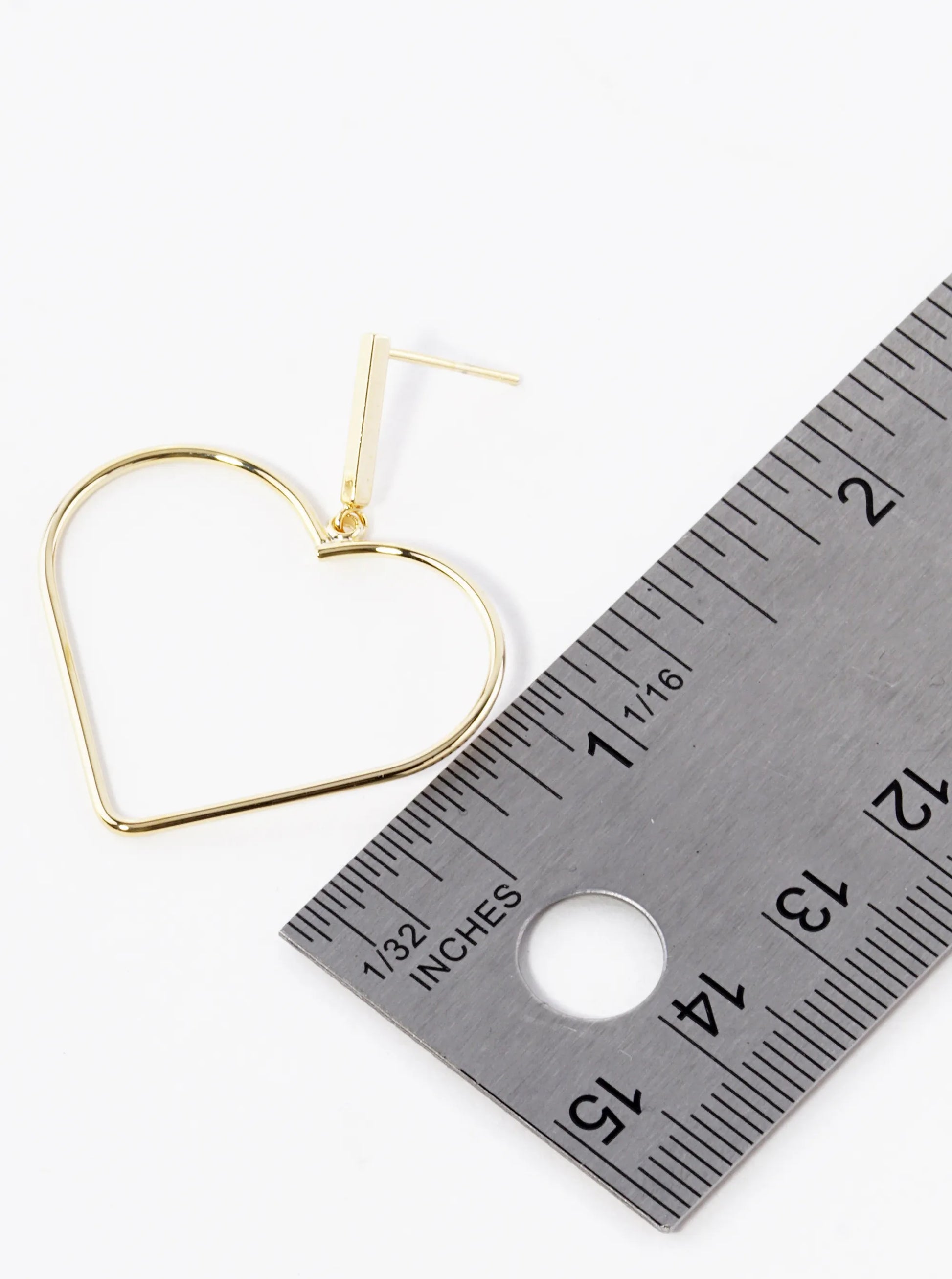 18K Gold Dipped Wire Heart Drop Dangle Post Earrings