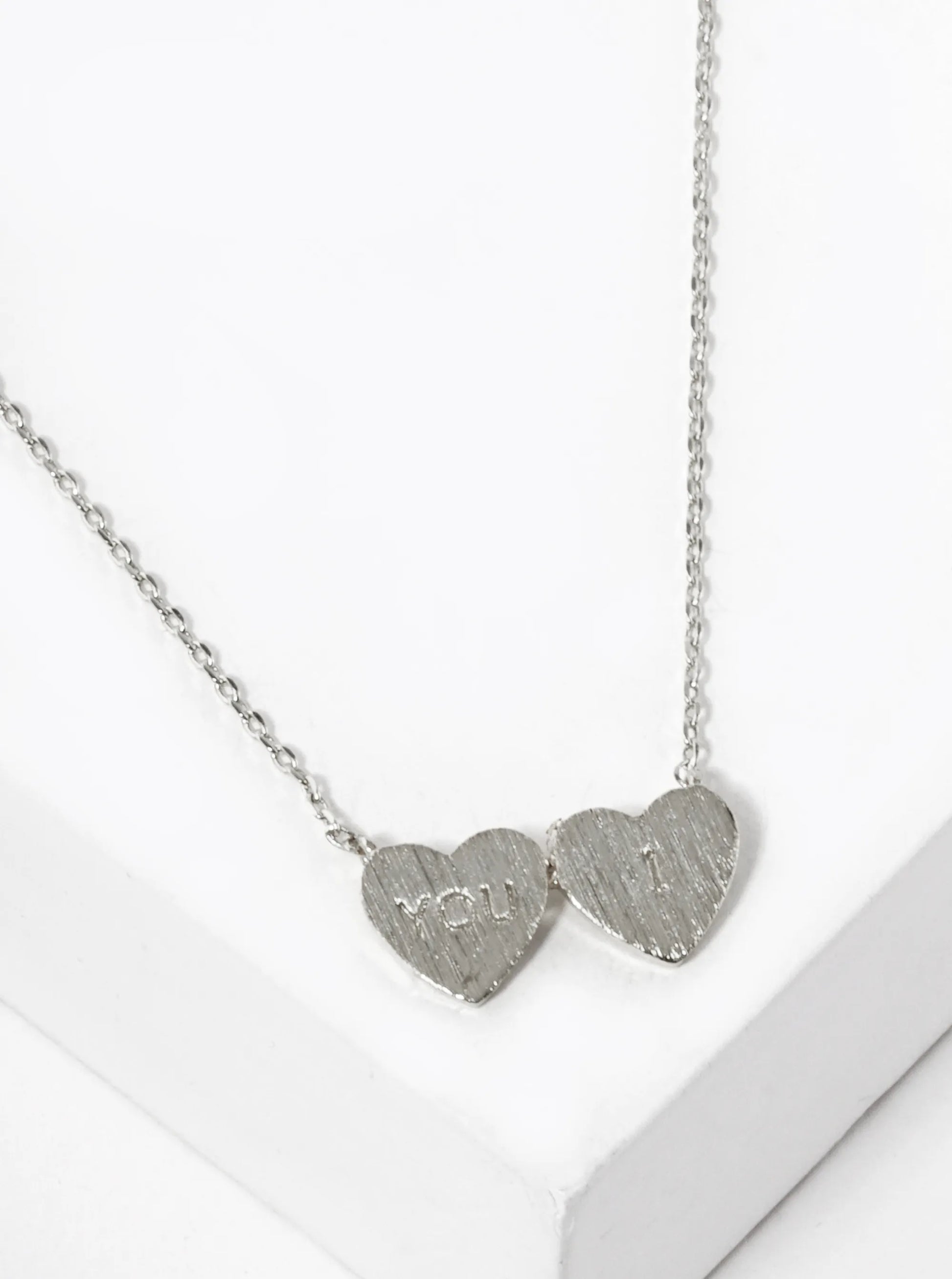 18K Gold Dipped You And I Engraved Two Heart Pendant Necklace