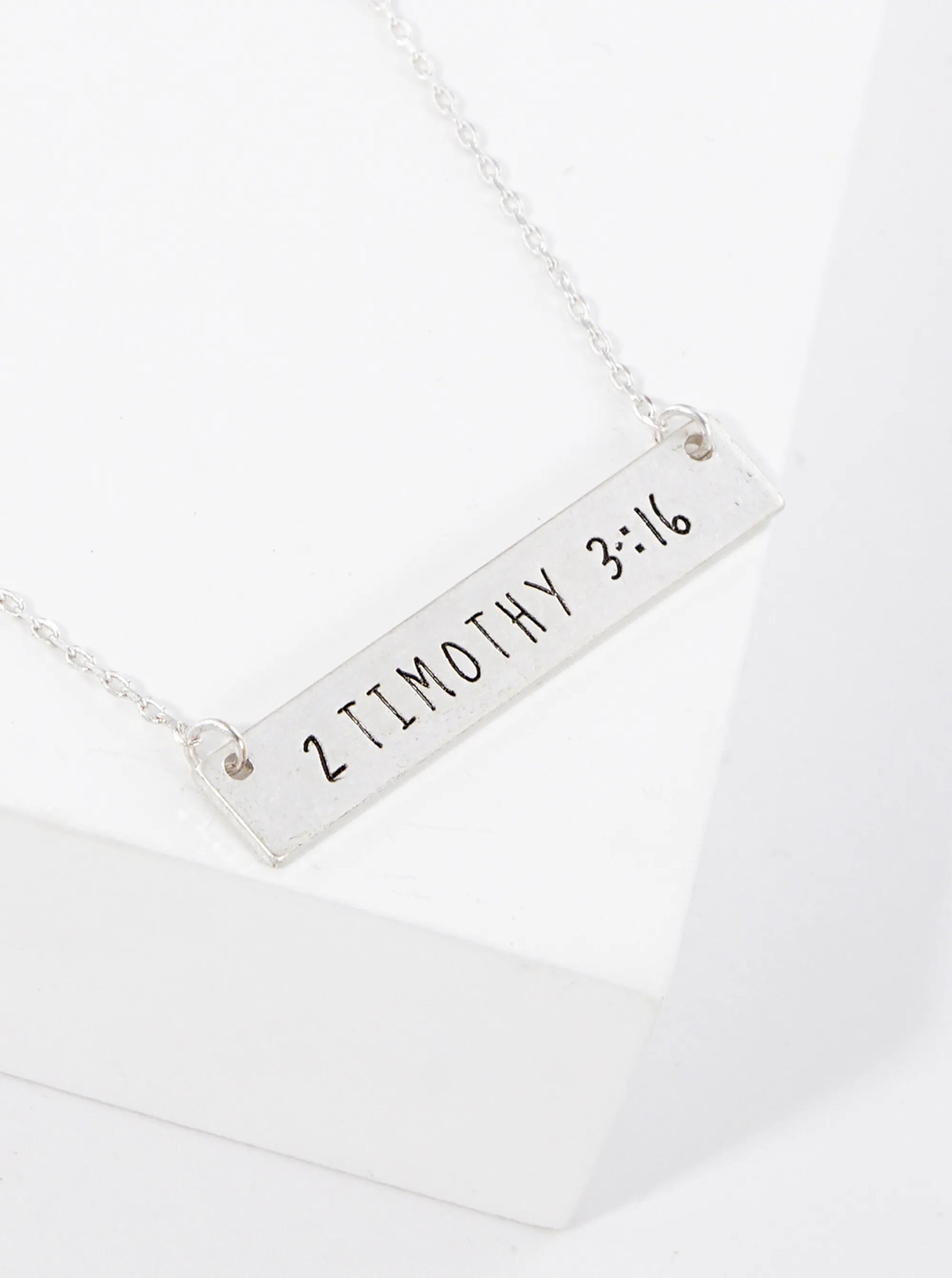 2 Timothy 3 16 Engraved Horizontal Bar Pendant Necklace