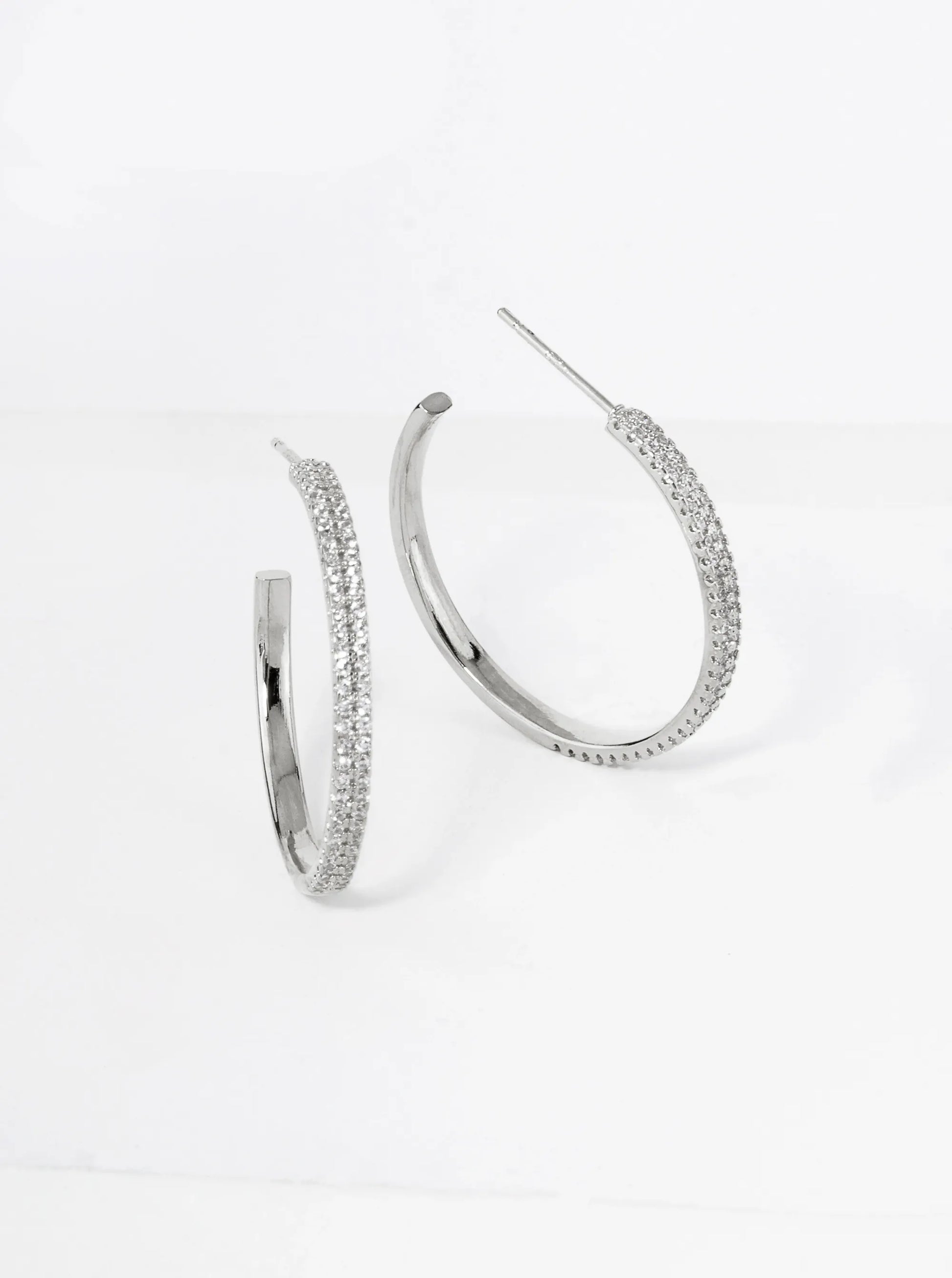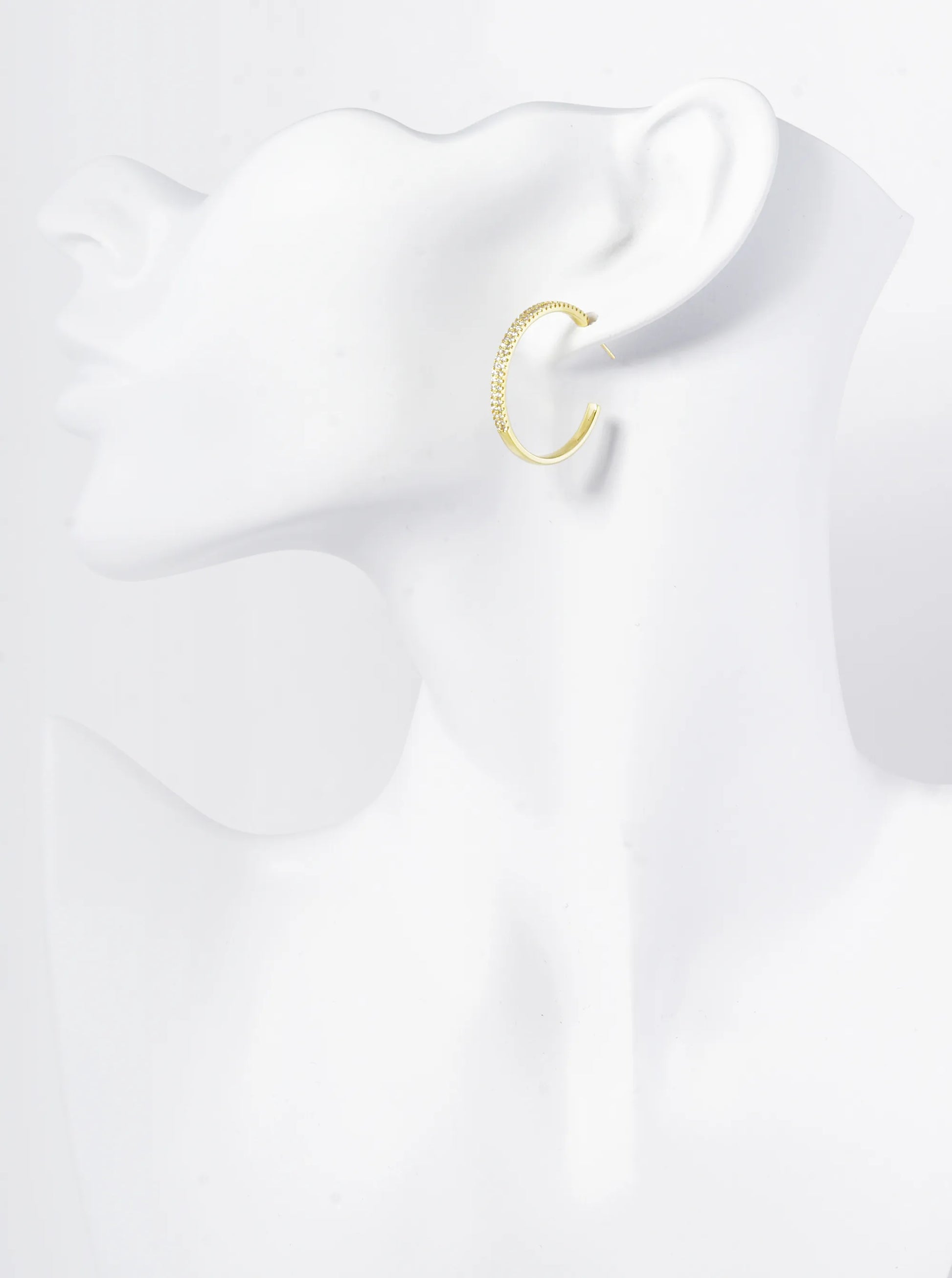 25mm 18K Gold Dipped Double Row Micro Pave Cubic Zirconia Open Hoop Earrings