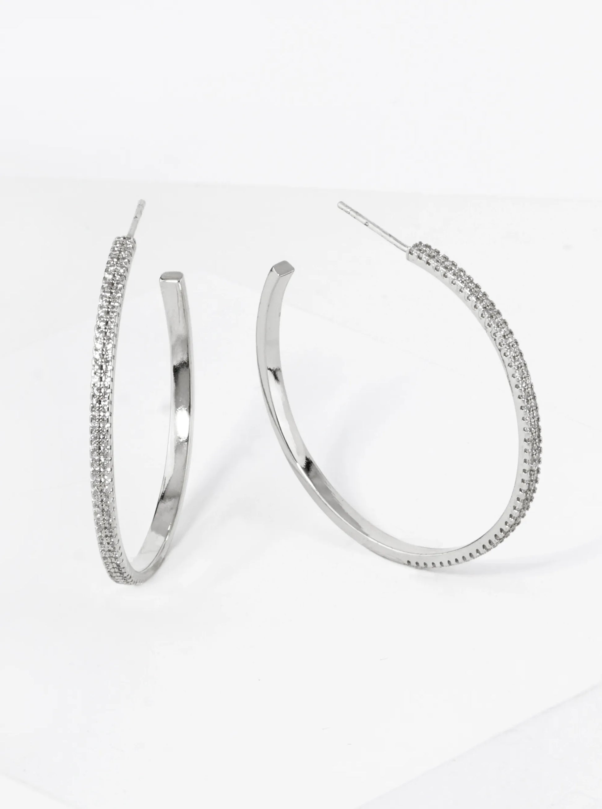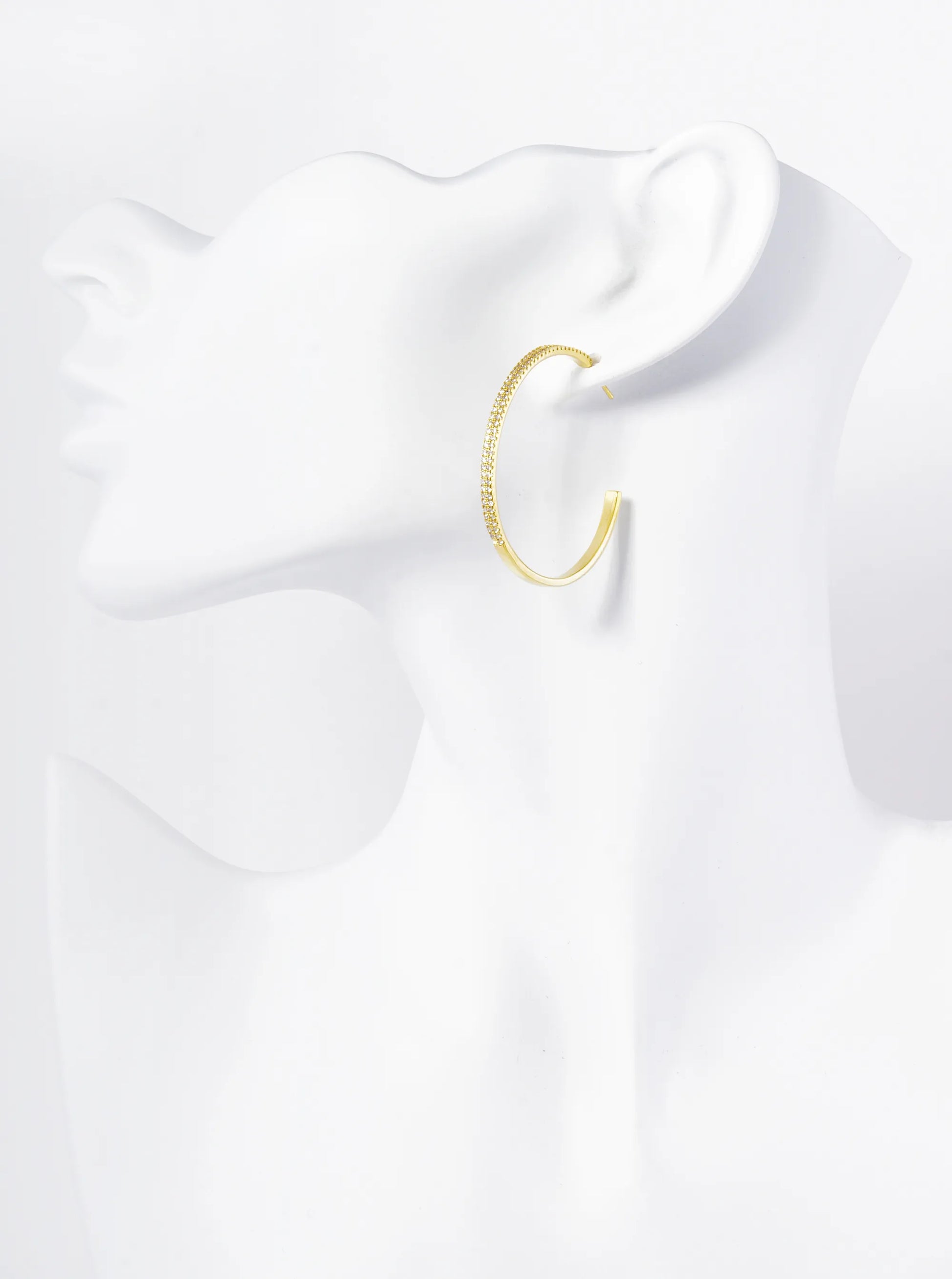 40mm 18K Gold Dipped Double Row Micro Pave Cubic Zirconia Open Hoop Earrings