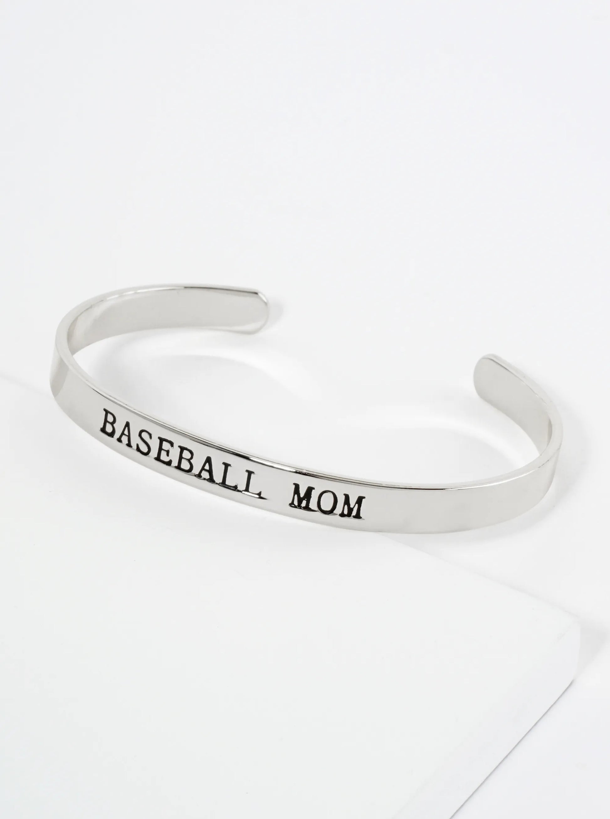 Baseball Mom Engraved 18K Gold Dipped Open Cuff Bangle Bracelet