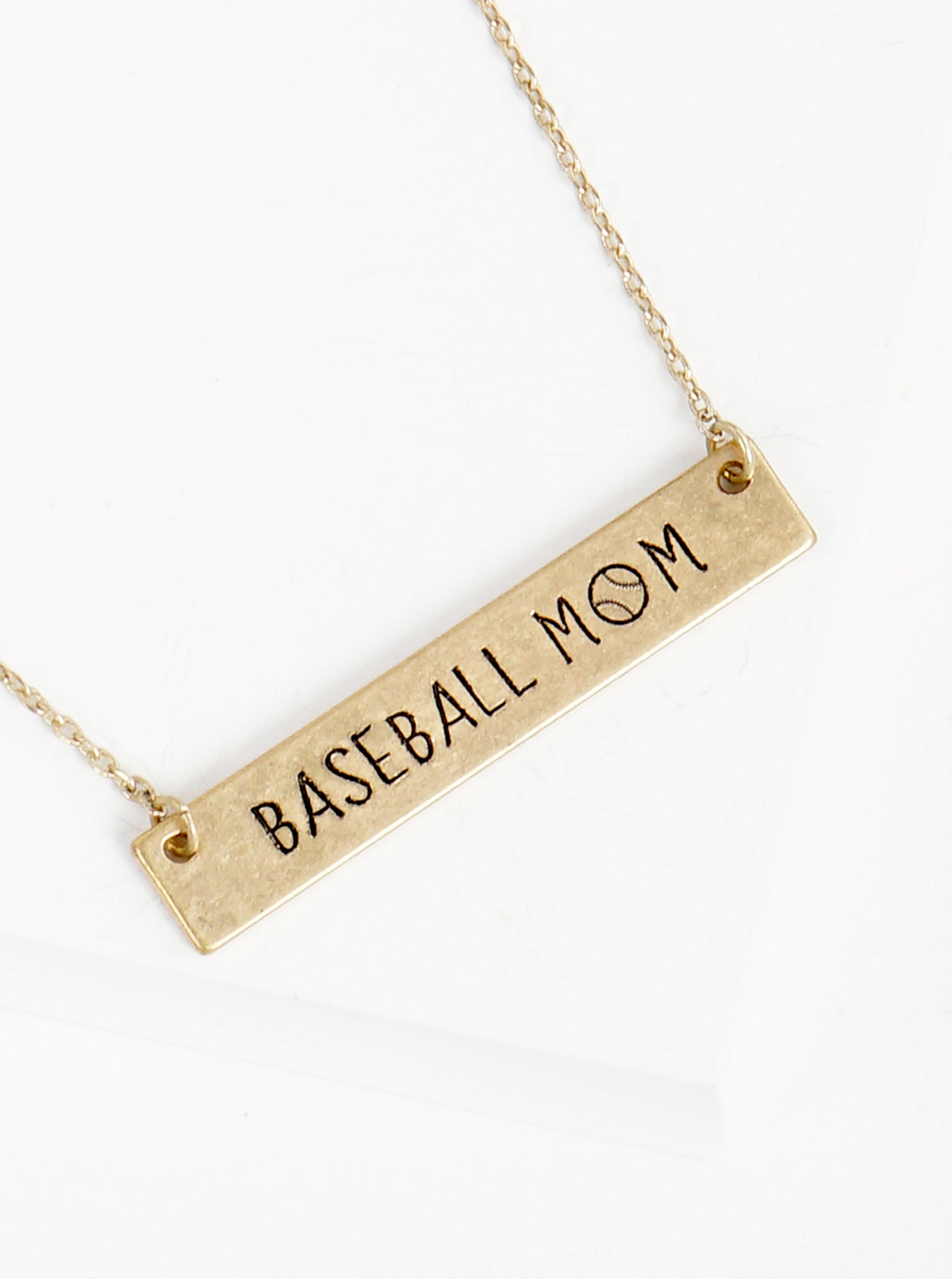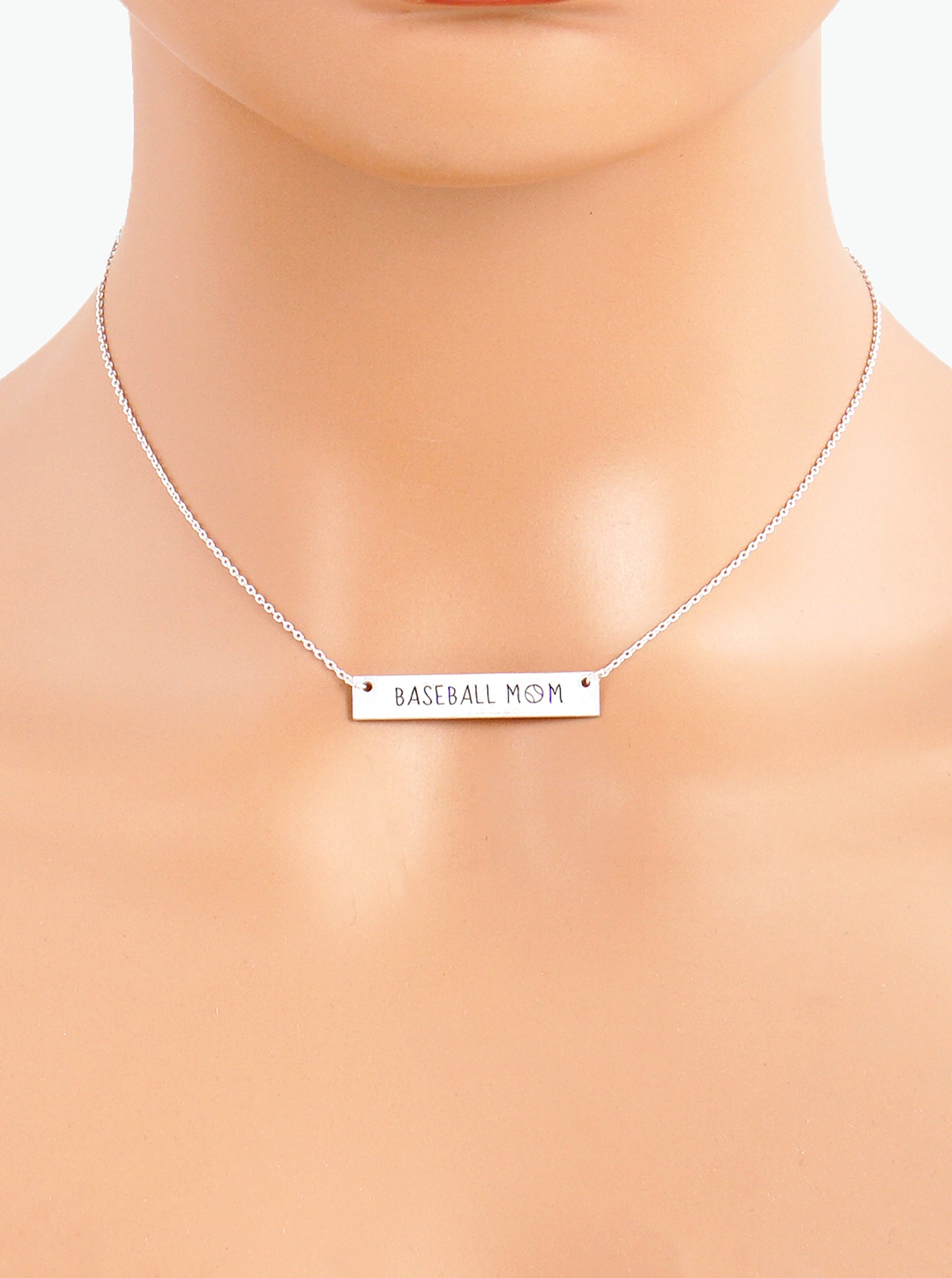 Baseball Mom Engraved Horizontal Bar Pendant Necklace