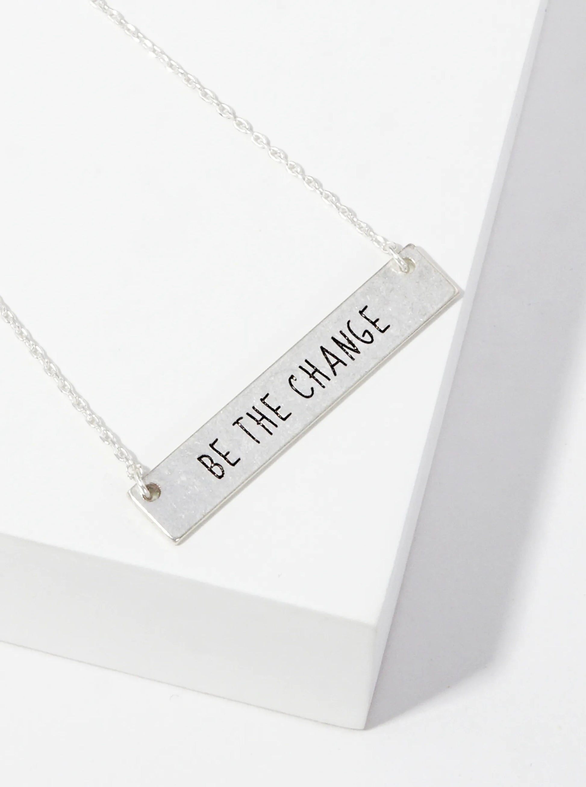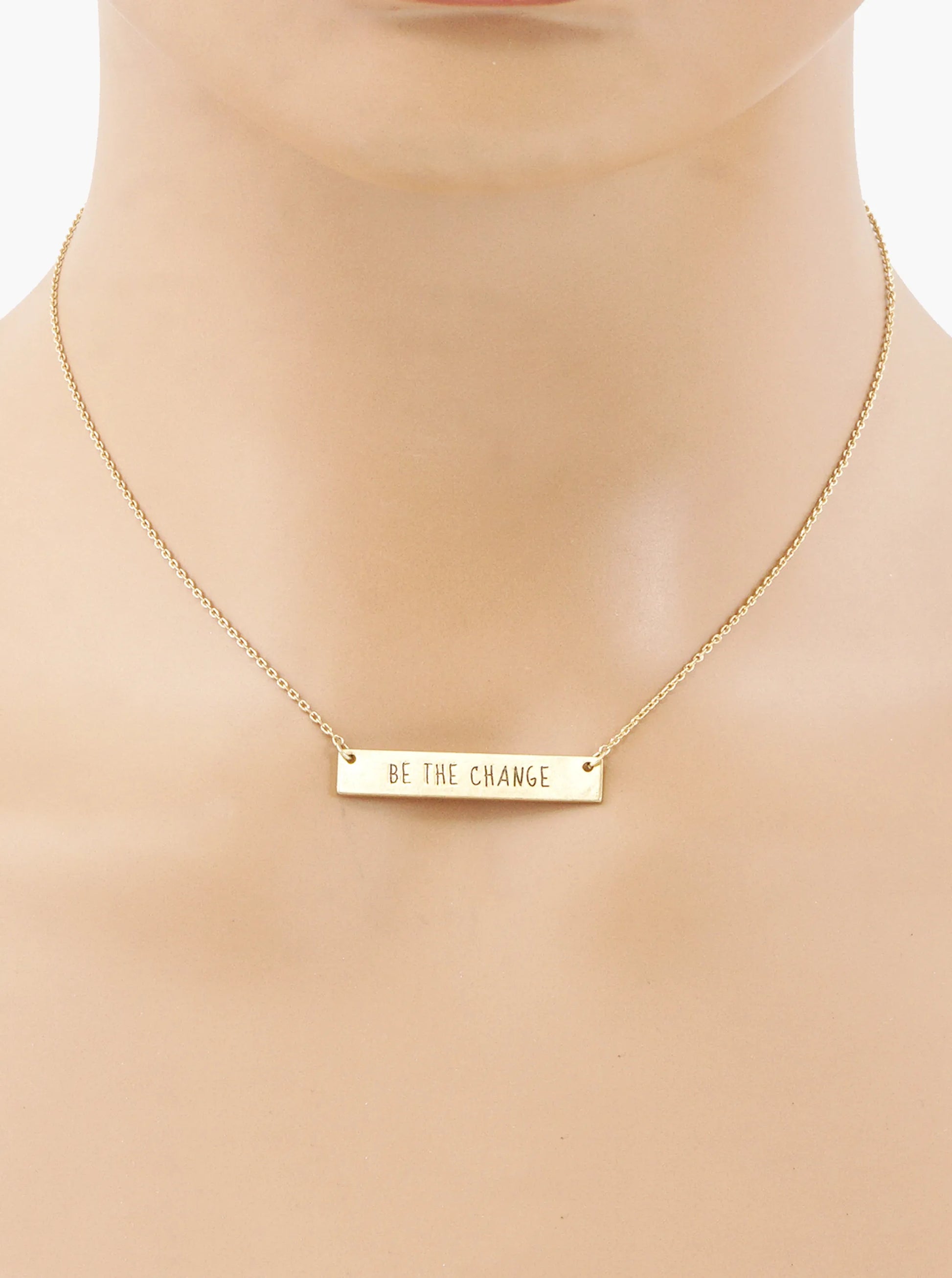 Be The Change Engraved Horizontal Bar Pendant Necklace