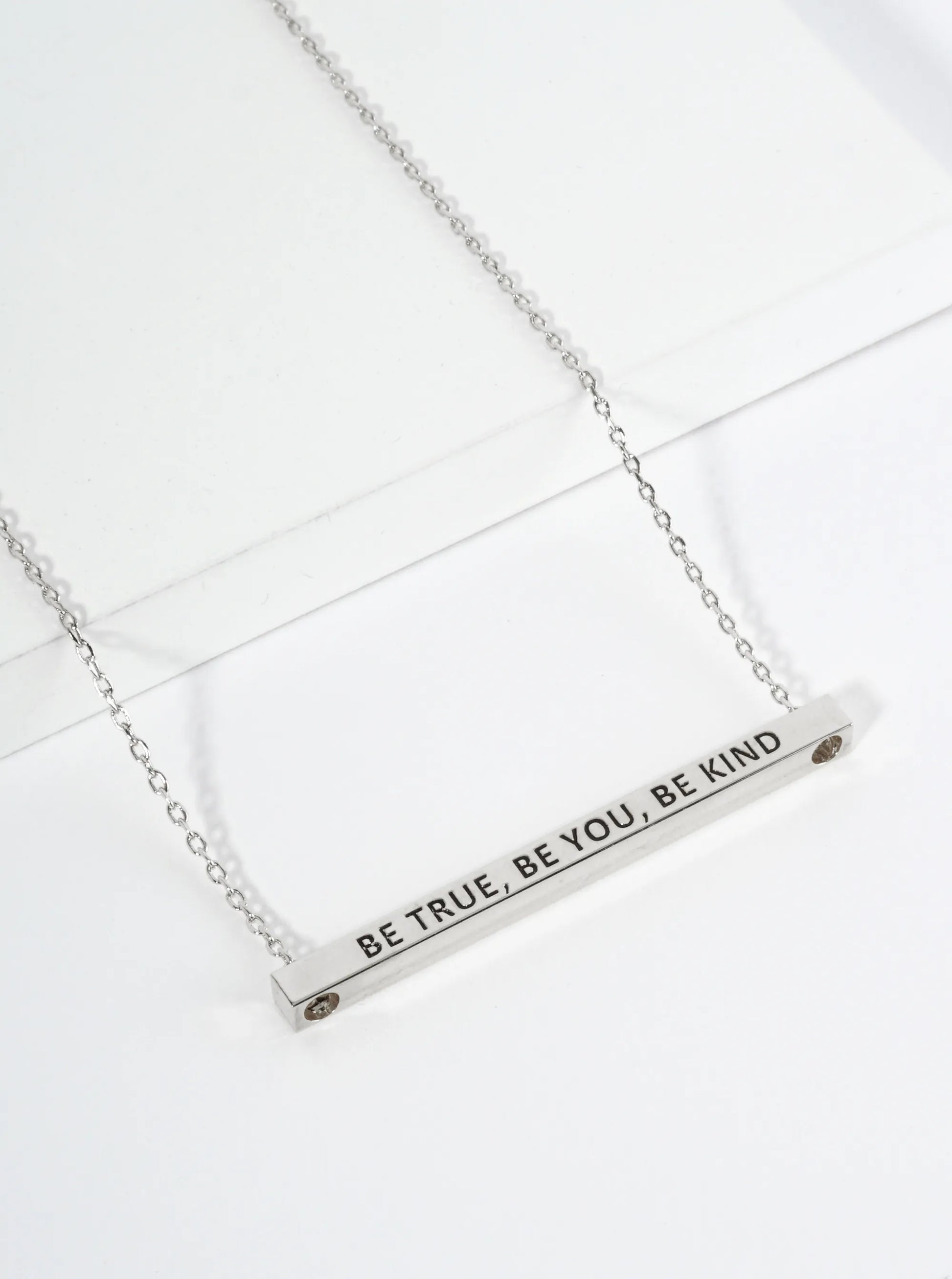 Be True Be You Be Kind Engraved 18K Gold Dipped Horizontal Brass Bar Pendant Inspirational Necklace