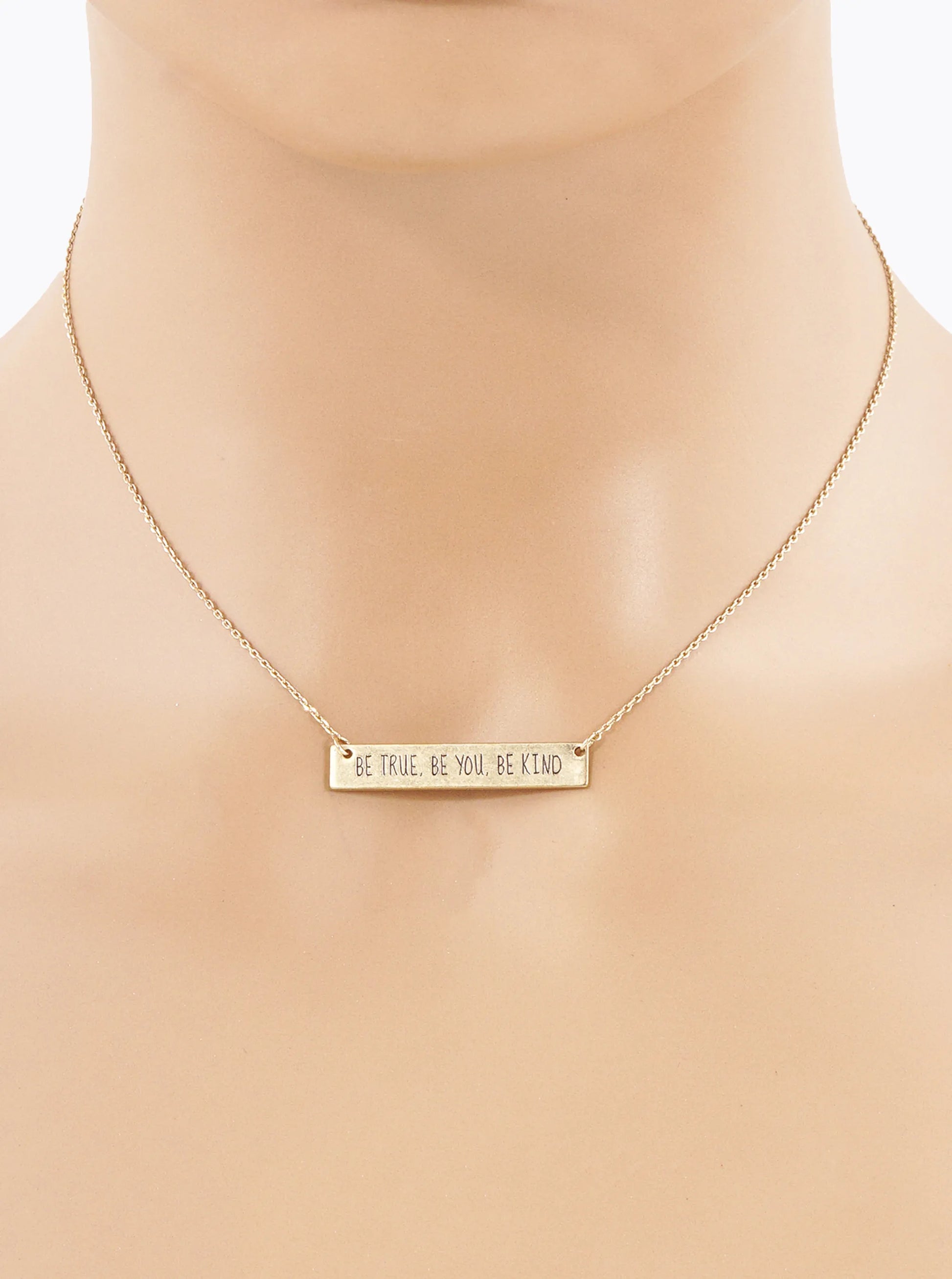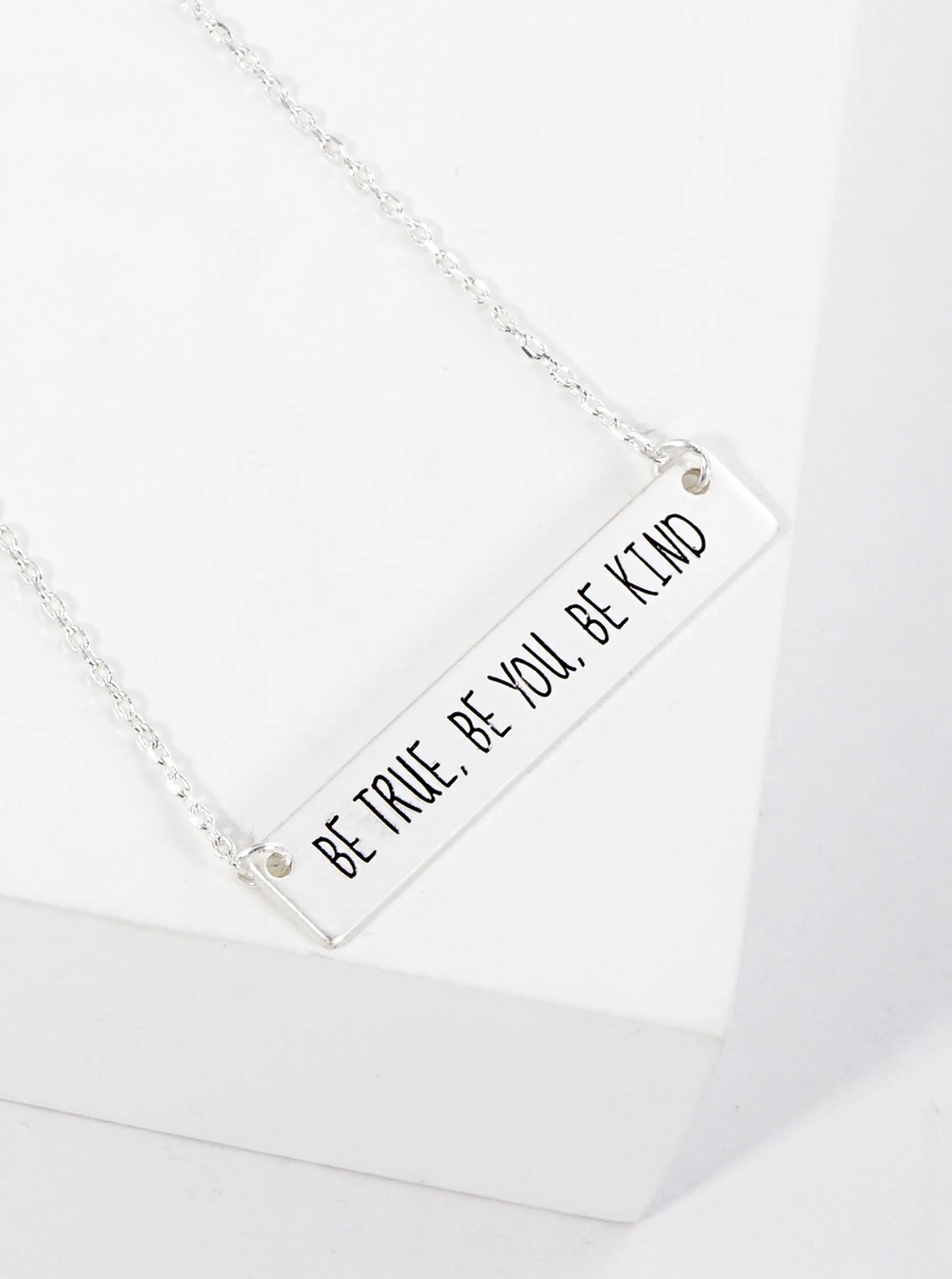 Be True Be You Be Kind Engraved Horizontal Bar Pendant Necklace