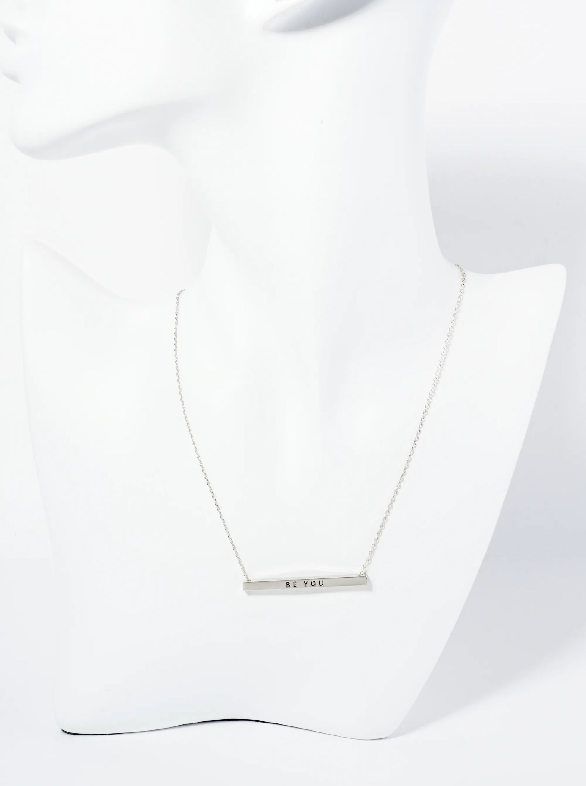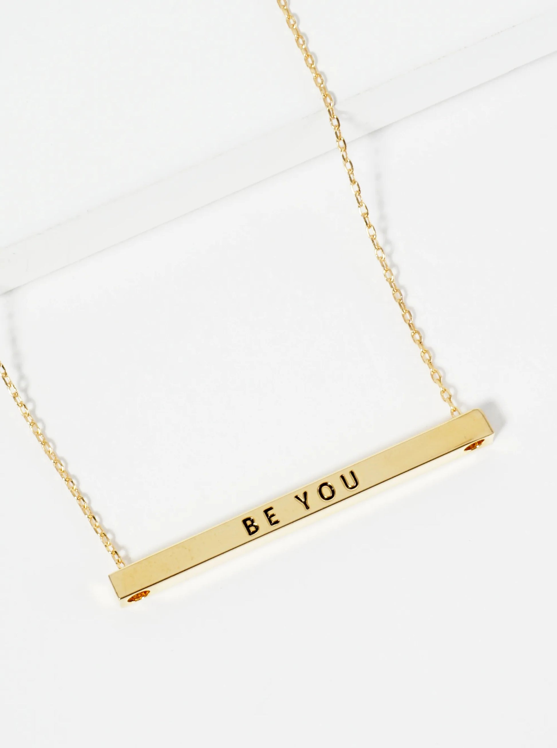 Be You Engraved 18K Gold Dipped Horizontal Brass Bar Pendant Inspirational Necklace