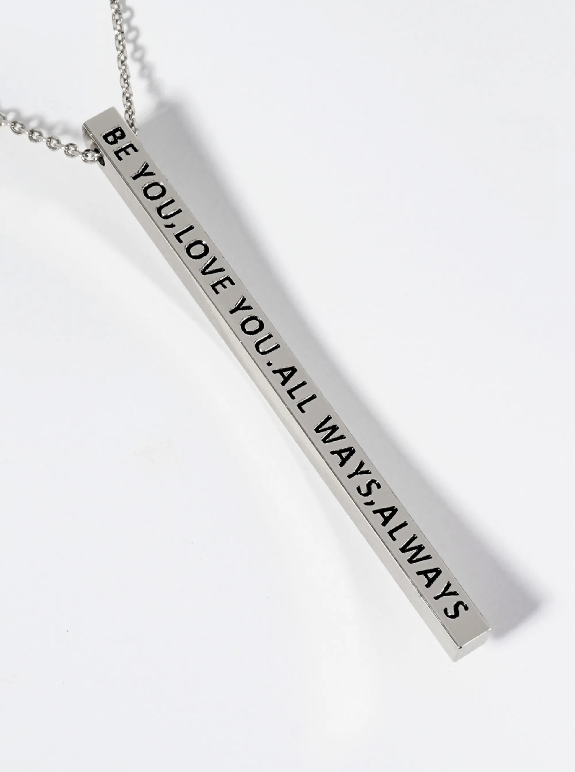 Be You Love You All Ways Always Engraved Vertical Bar Pendant Inspirational Necklace