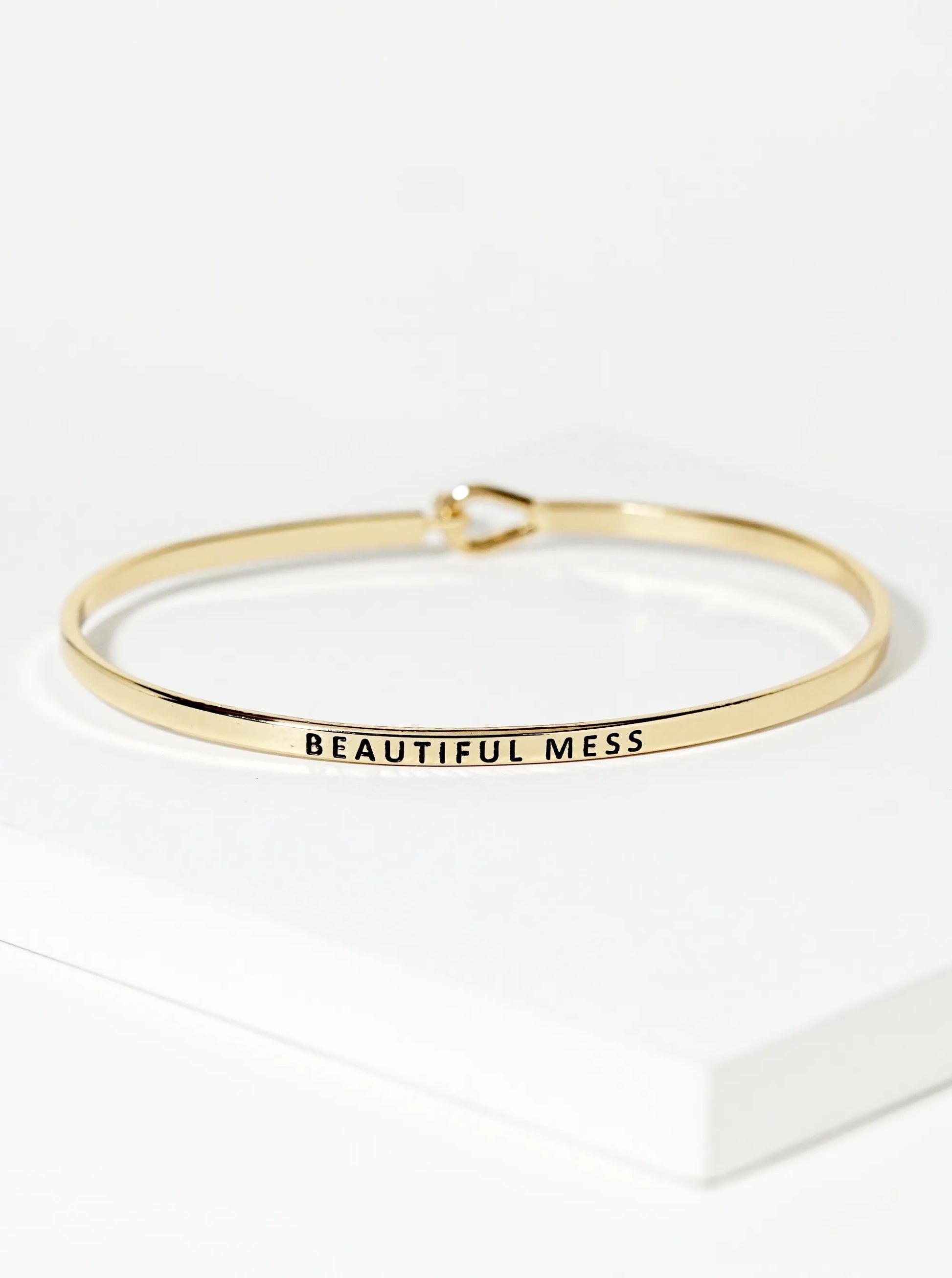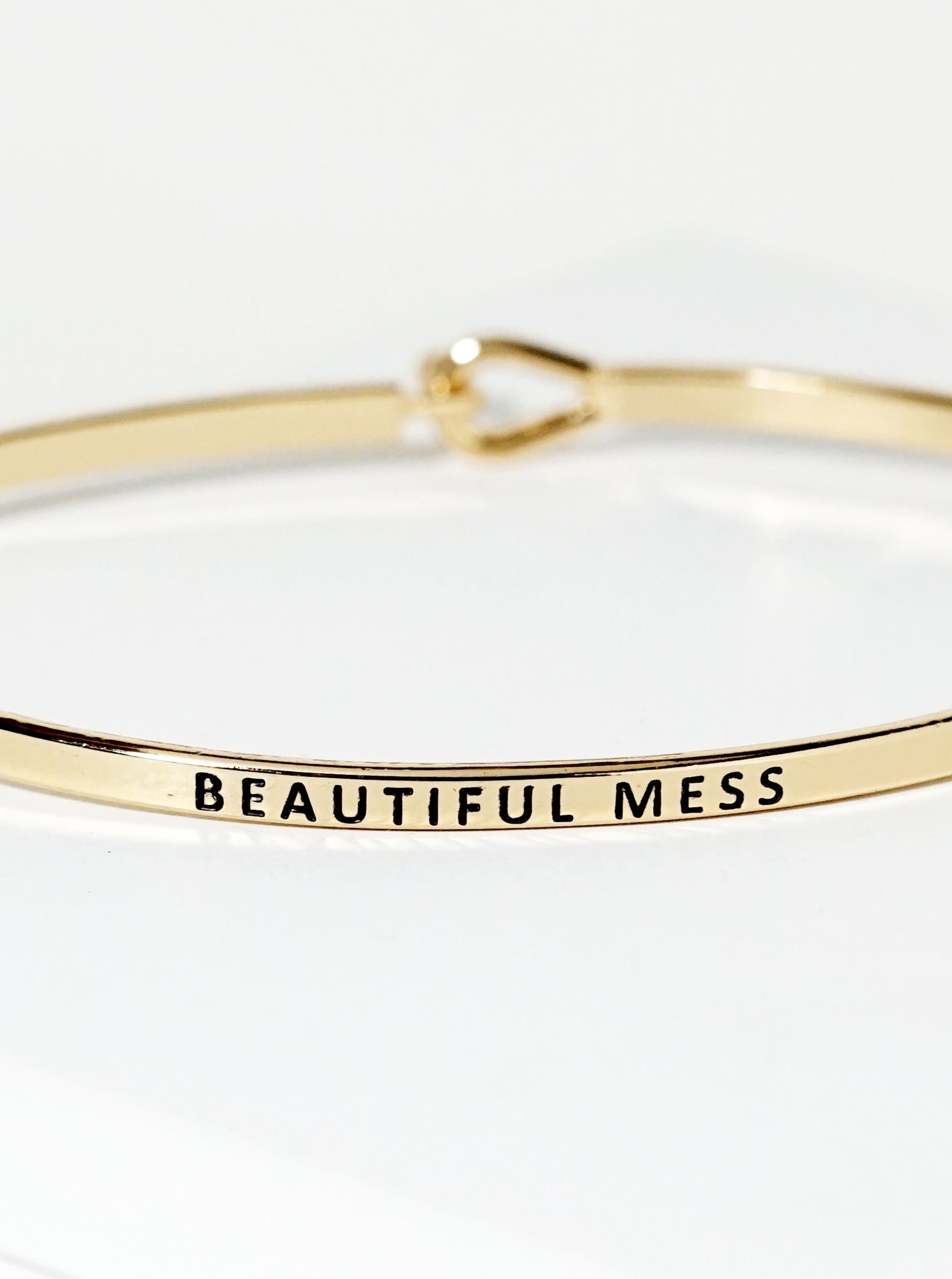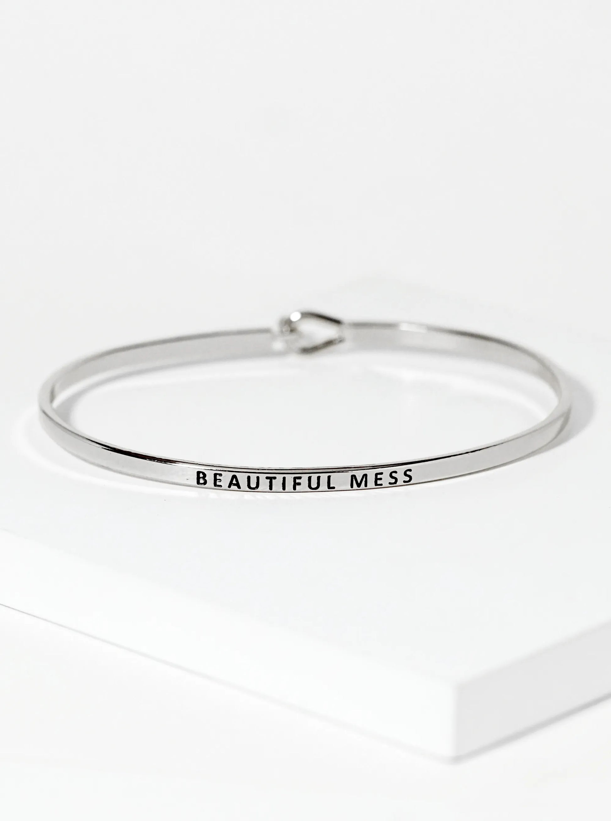 Beautiful Mess Engraved Inspirational Bangle Bracelet