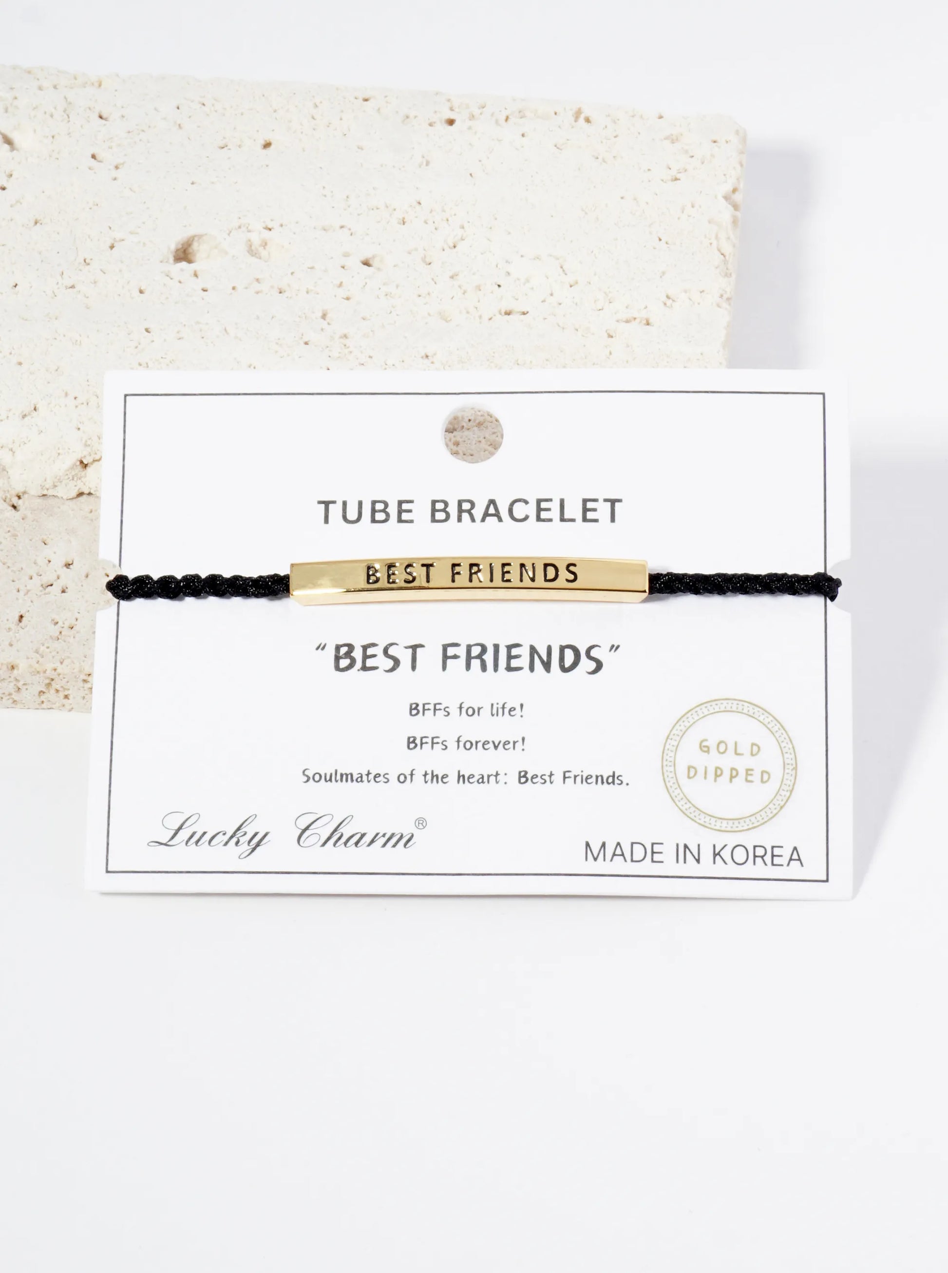 Best Friends Engraved 18K Gold Dipped Curved Brass Tube Bar Adjustable Pull Tie Bracelet