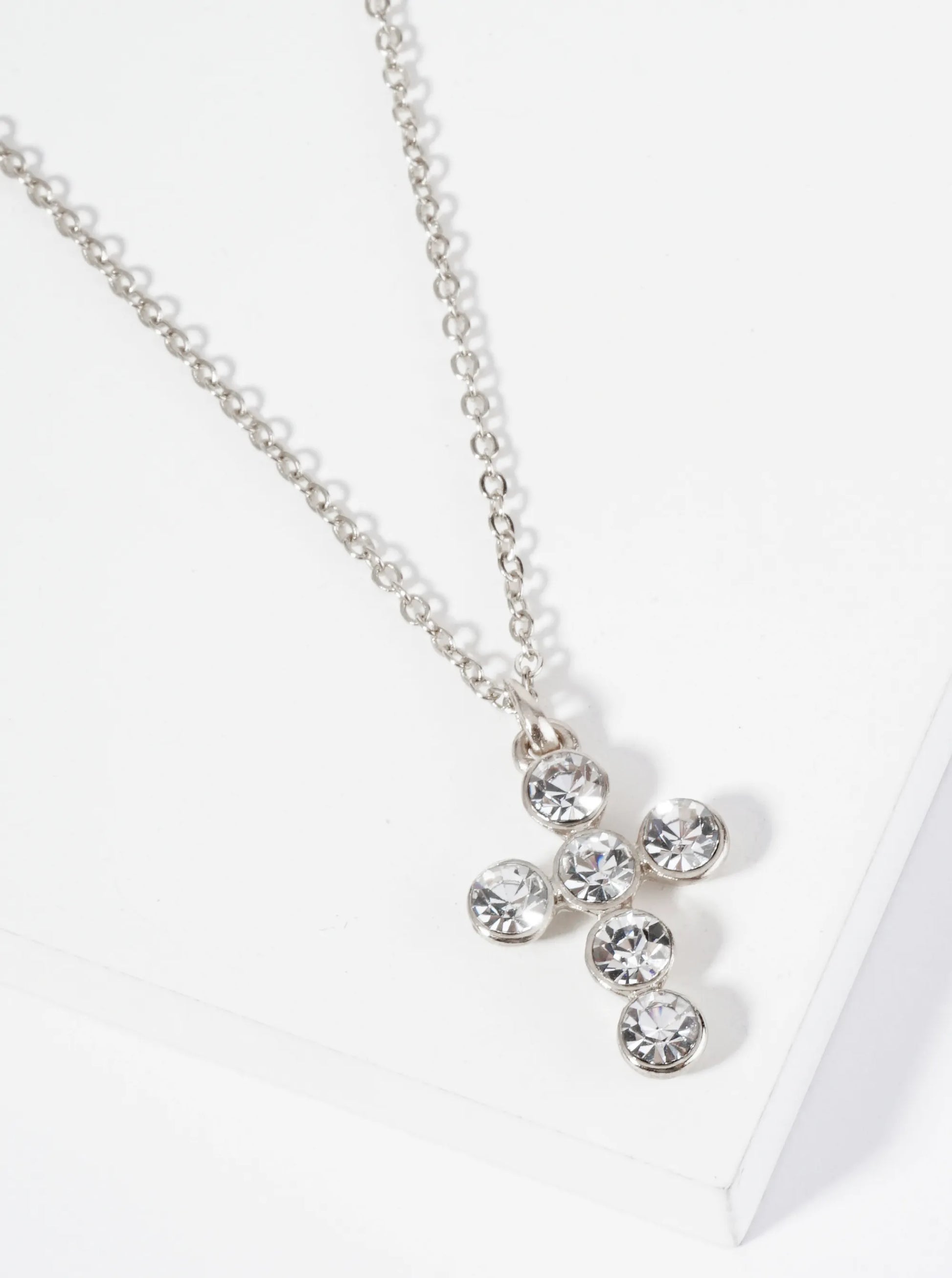Bezel Set Rhinestone Cross Pendant Necklace