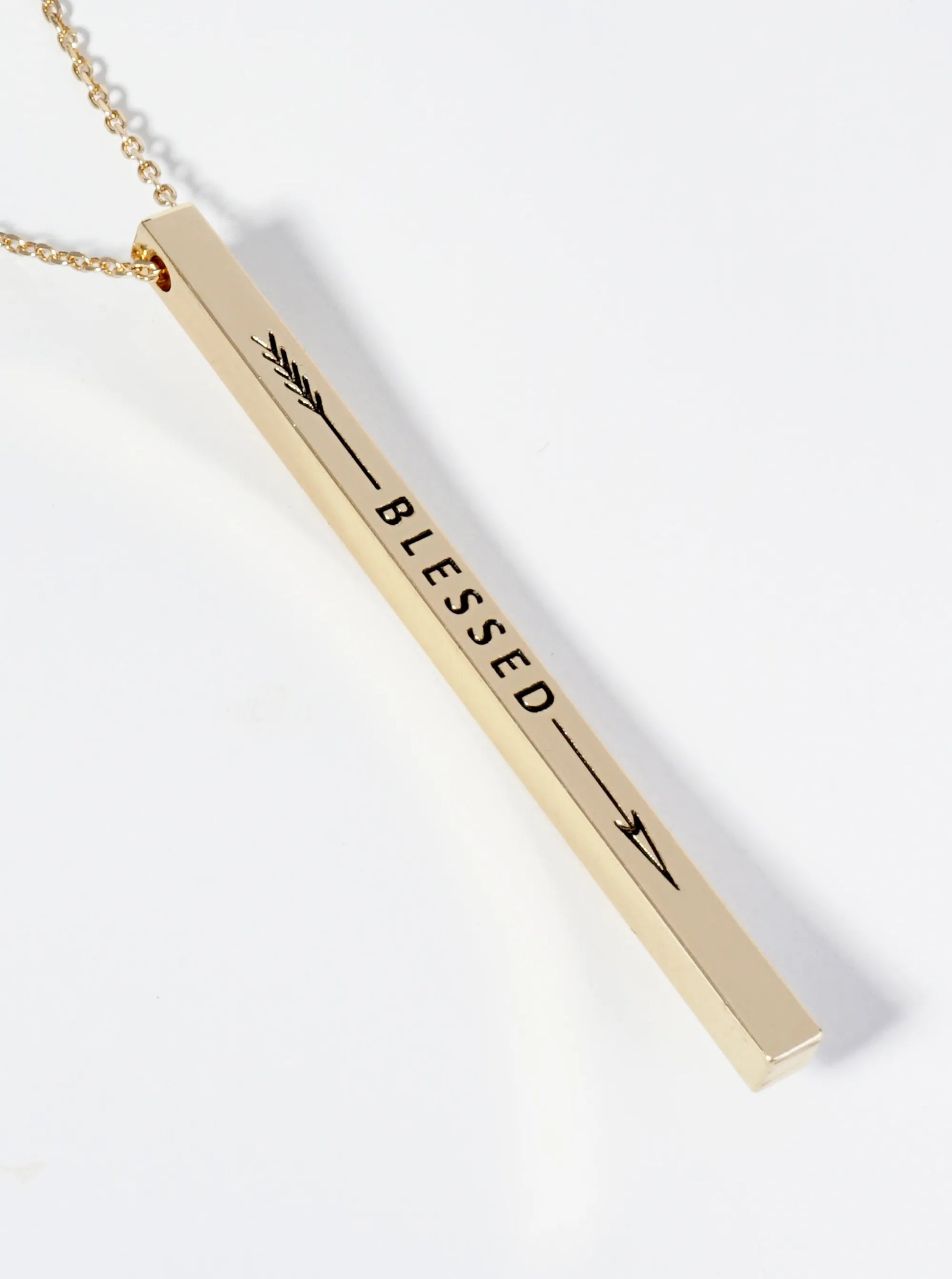 Blessed Arrow Engraved Vertical Bar Pendant Inspirational Necklace