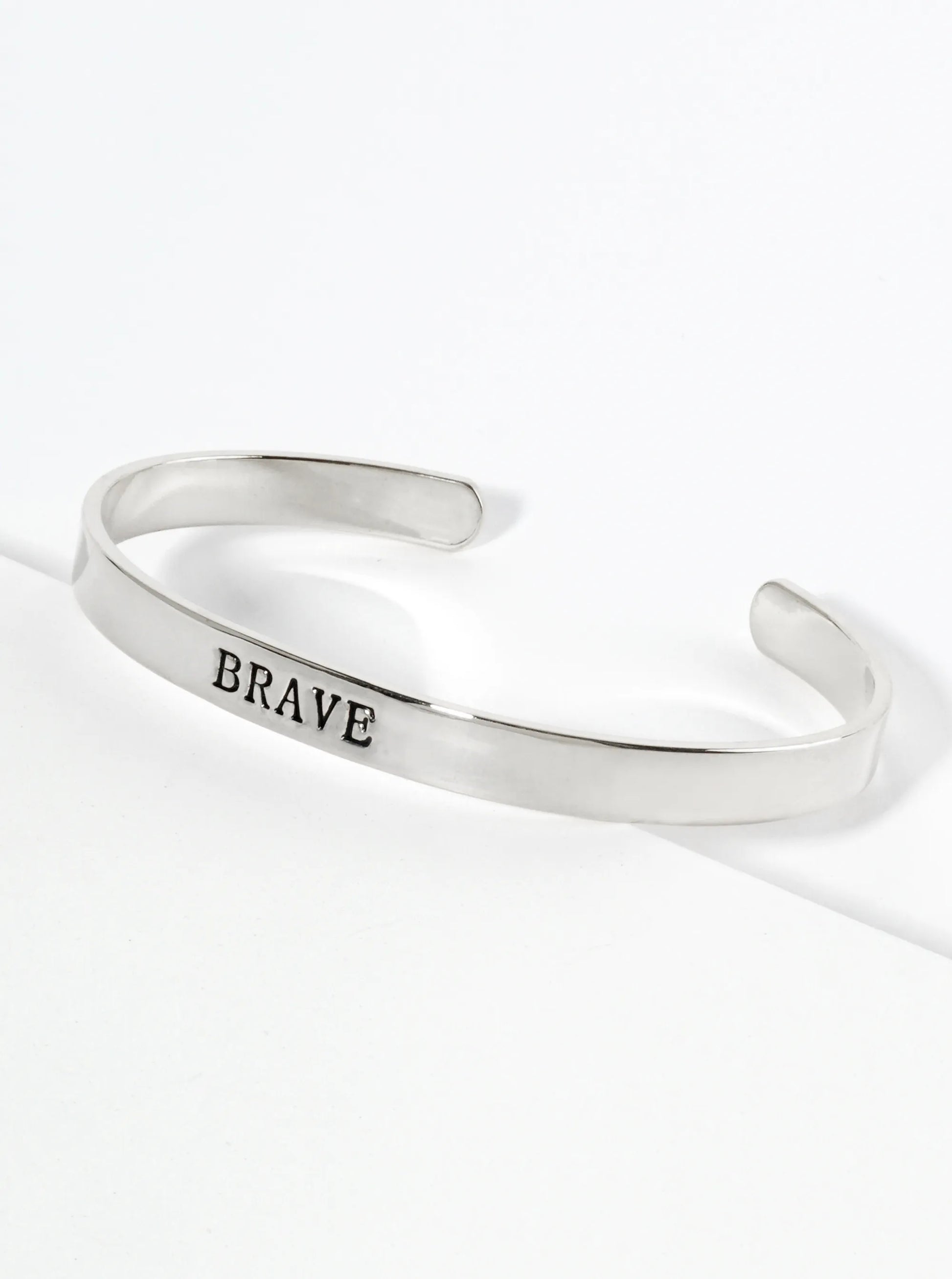 Brave Engraved 18K Gold Dipped Open Cuff Bangle Bracelet