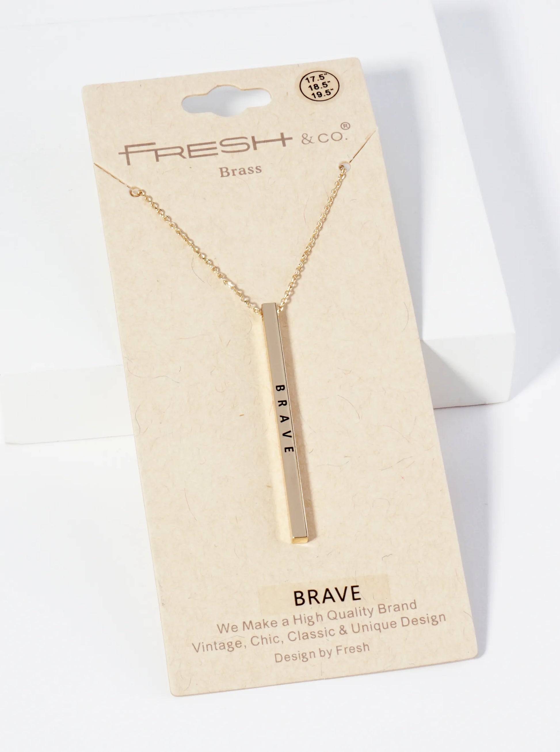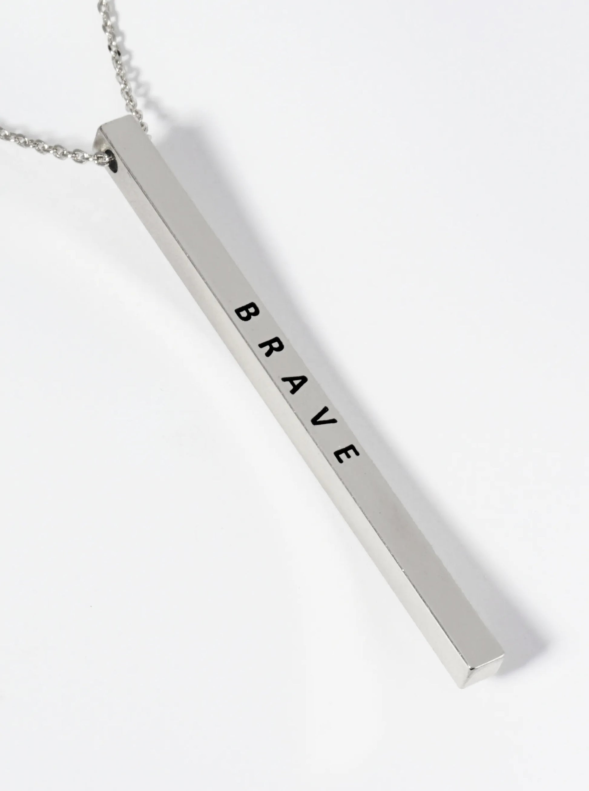 Brave Engraved Vertical Bar Pendant Inspirational Necklace
