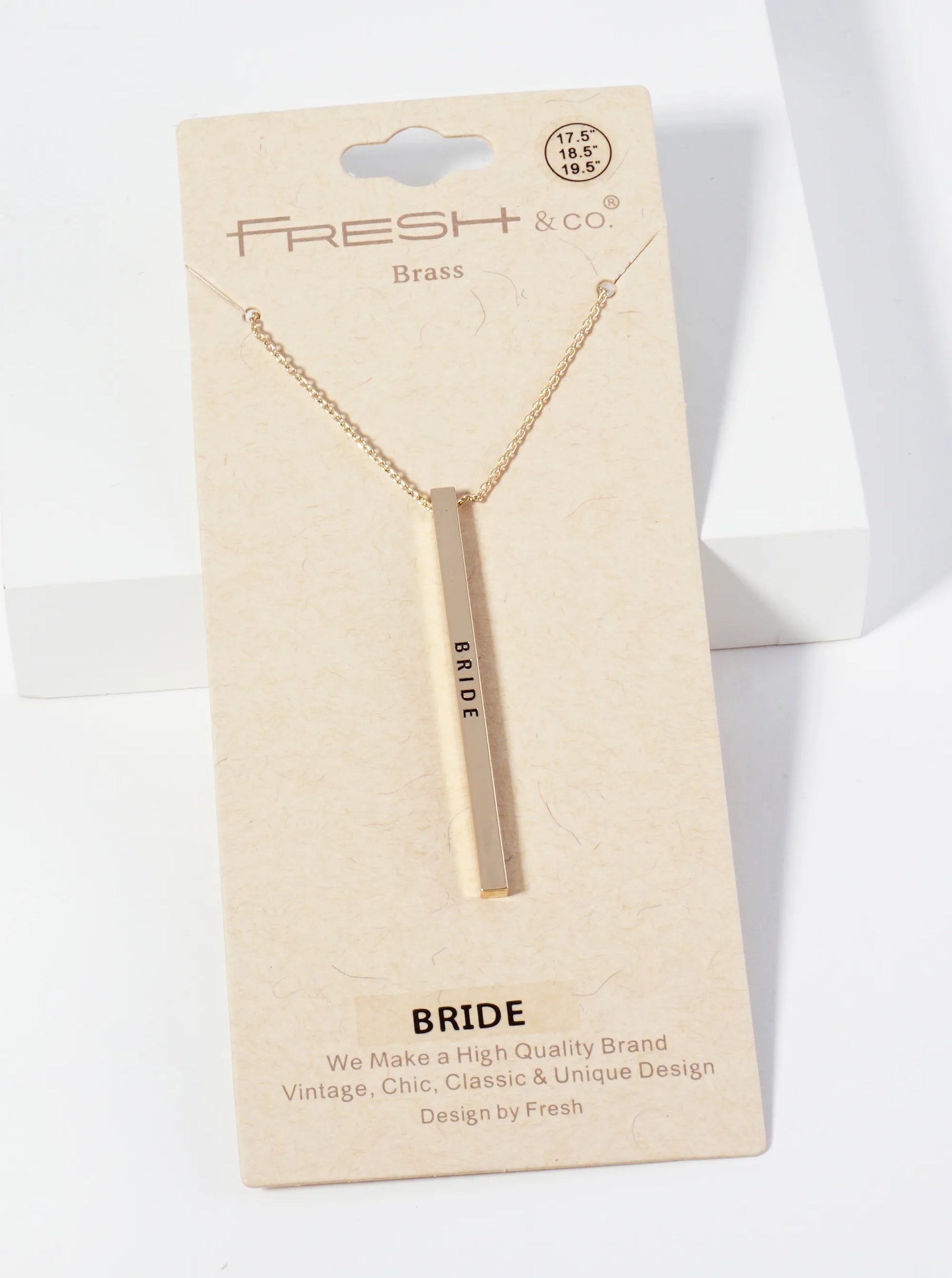 Bride Engraved Vertical Bar Pendant Inspirational Necklace