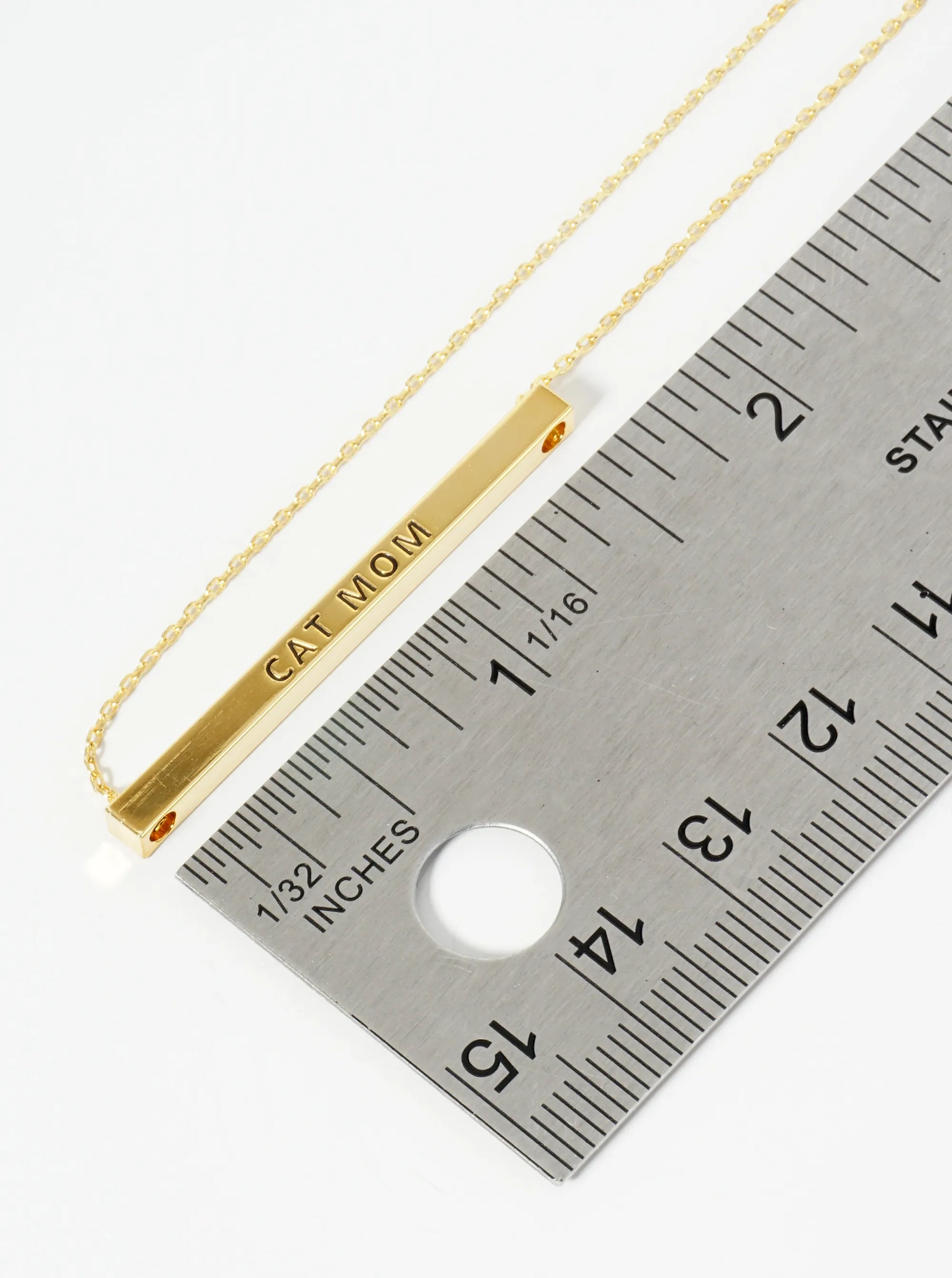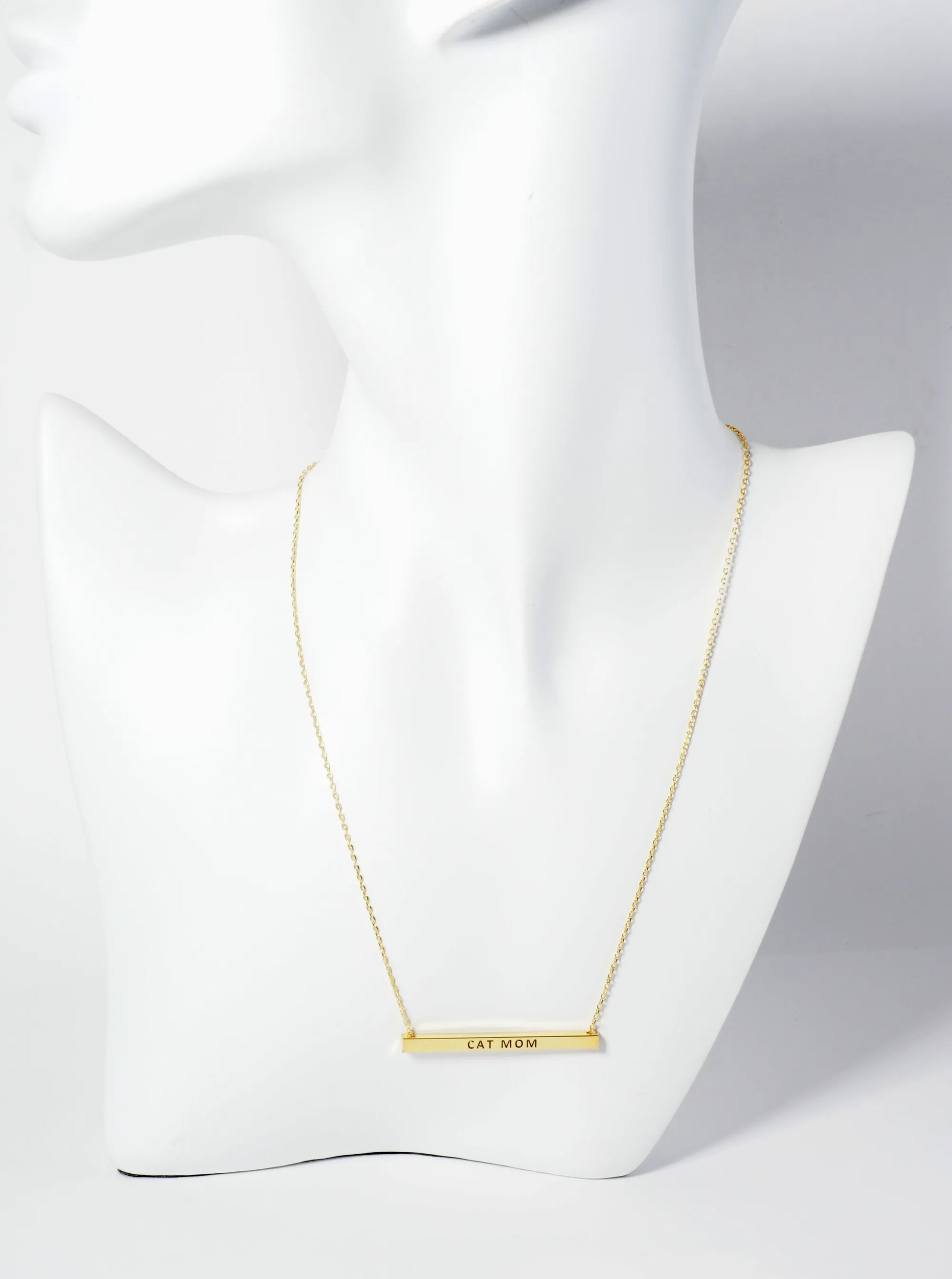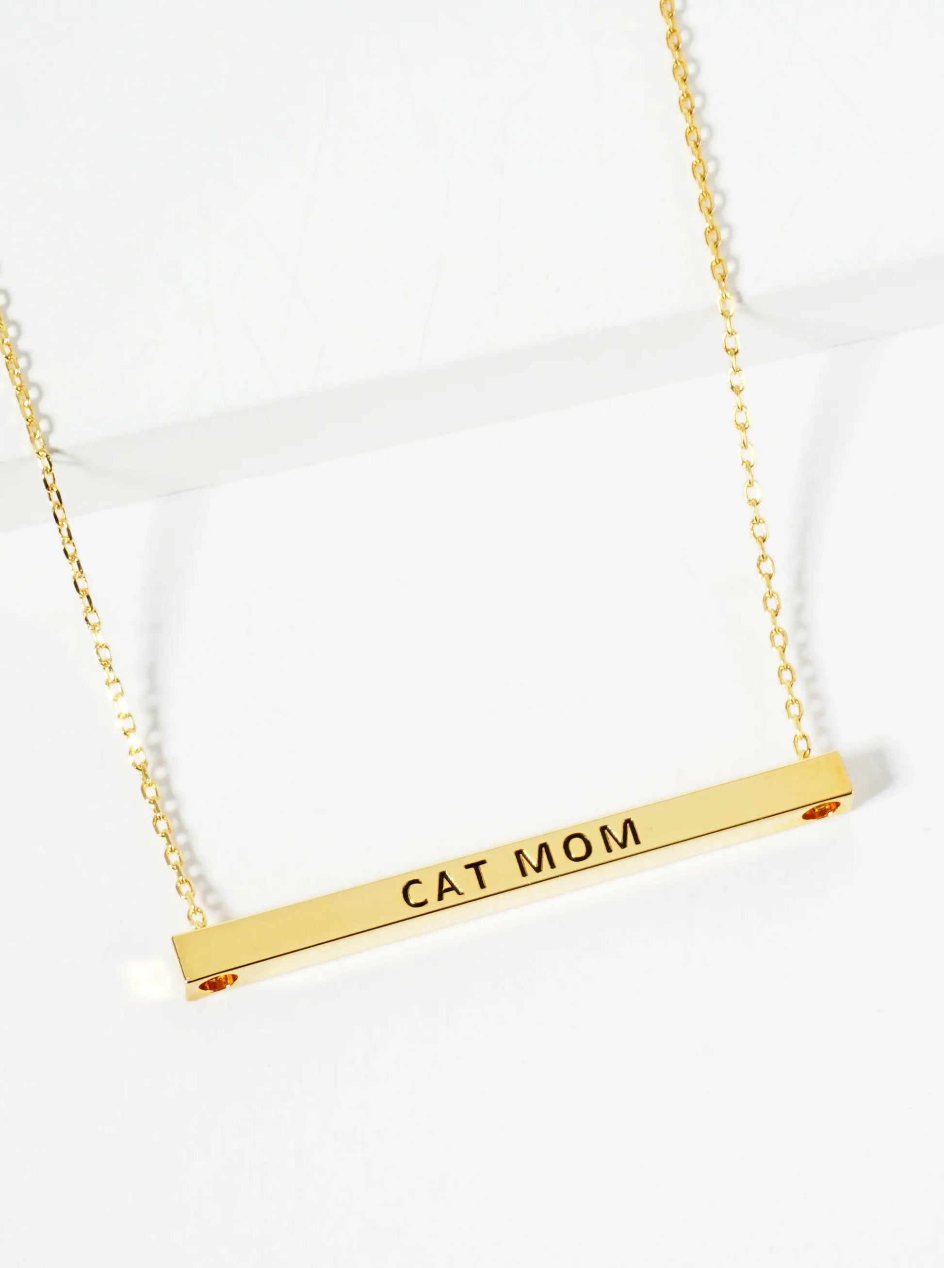 Cat Mom Engraved 18K Gold Dipped Horizontal Brass Bar Pendant Inspirational Necklace