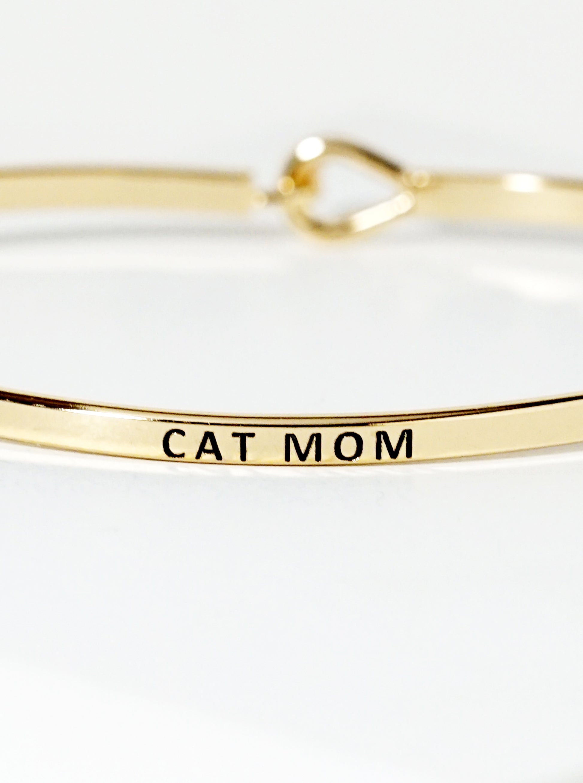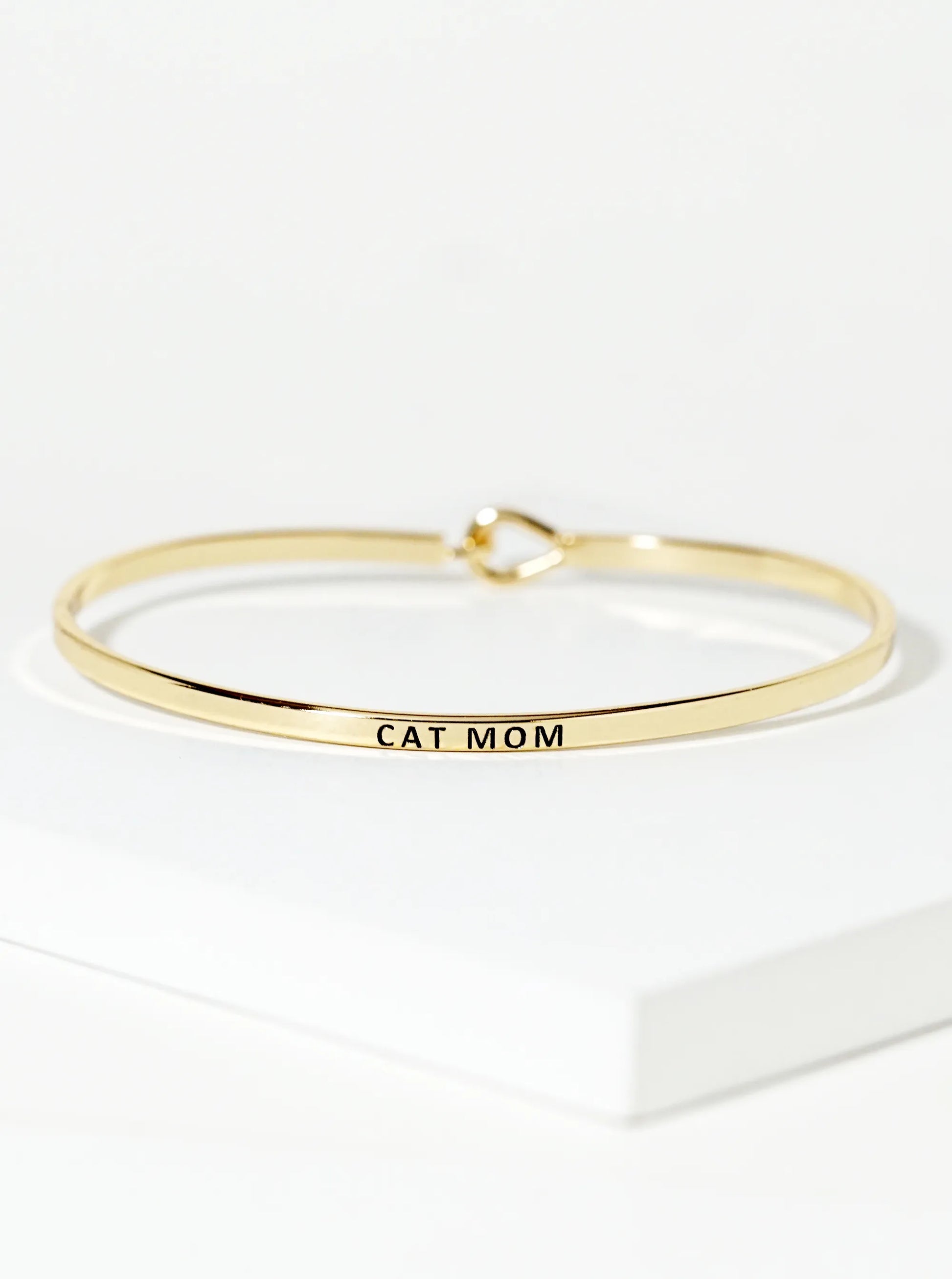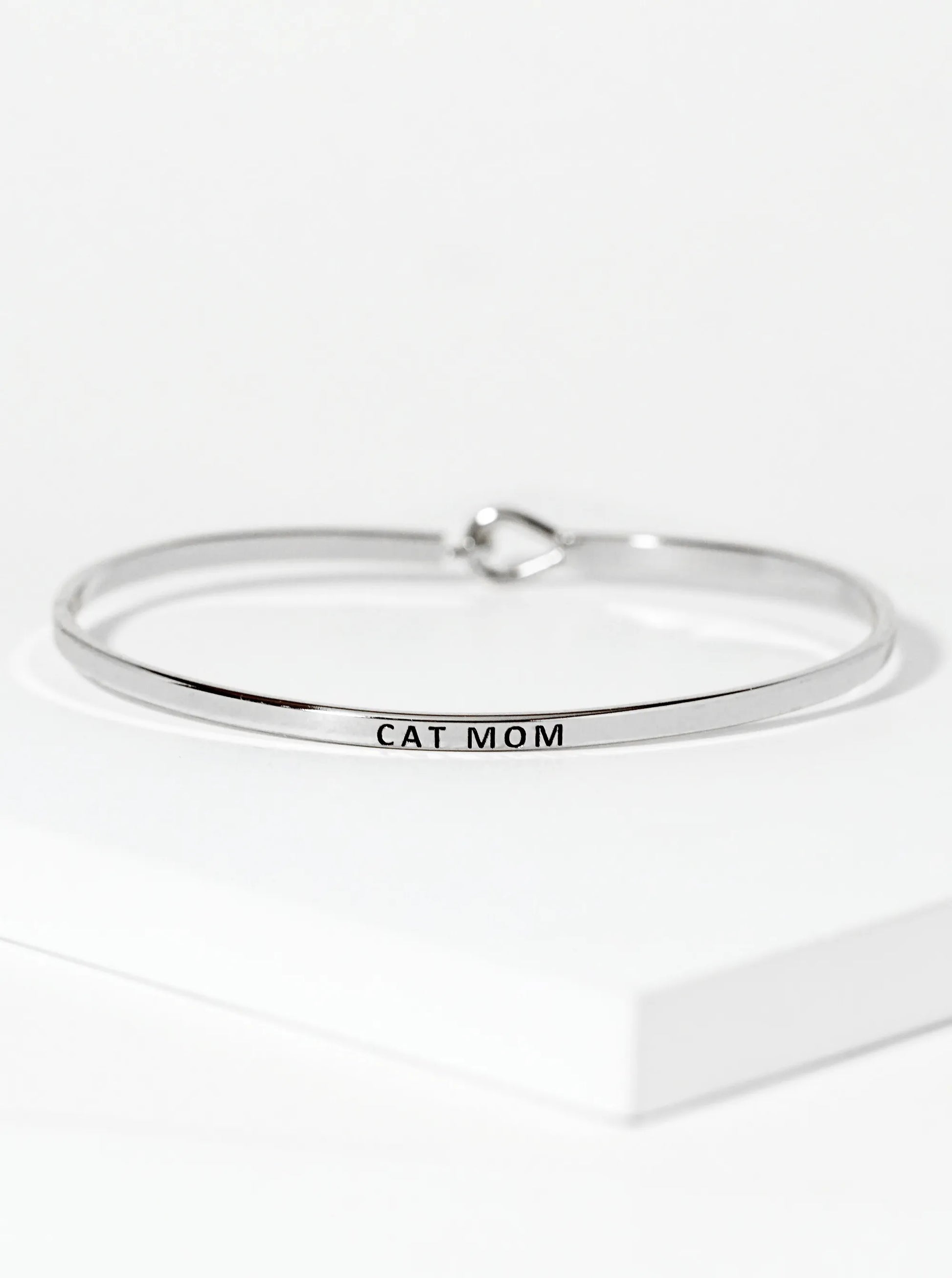 Cat Mom Engraved Inspirational Bangle Bracelet