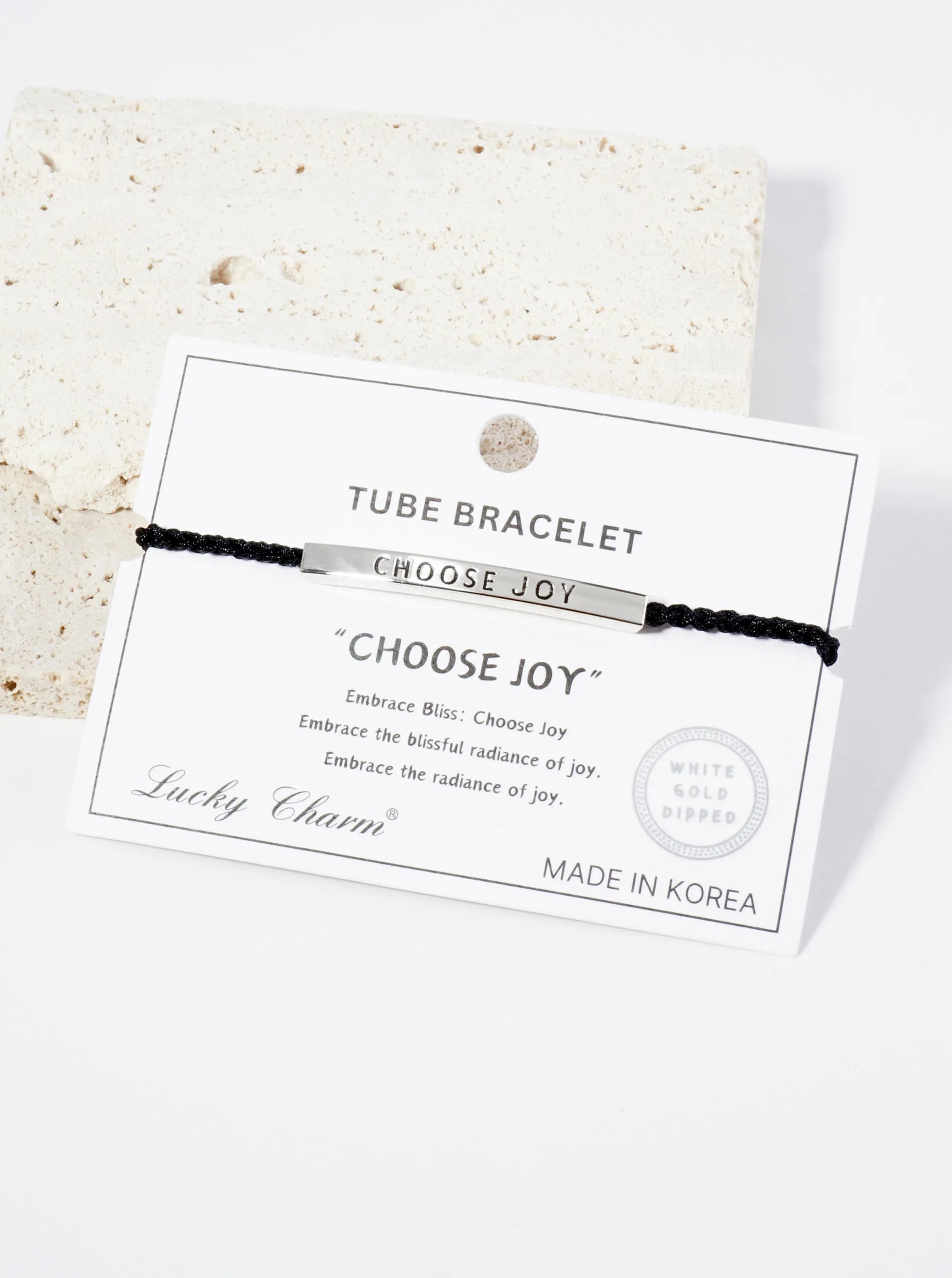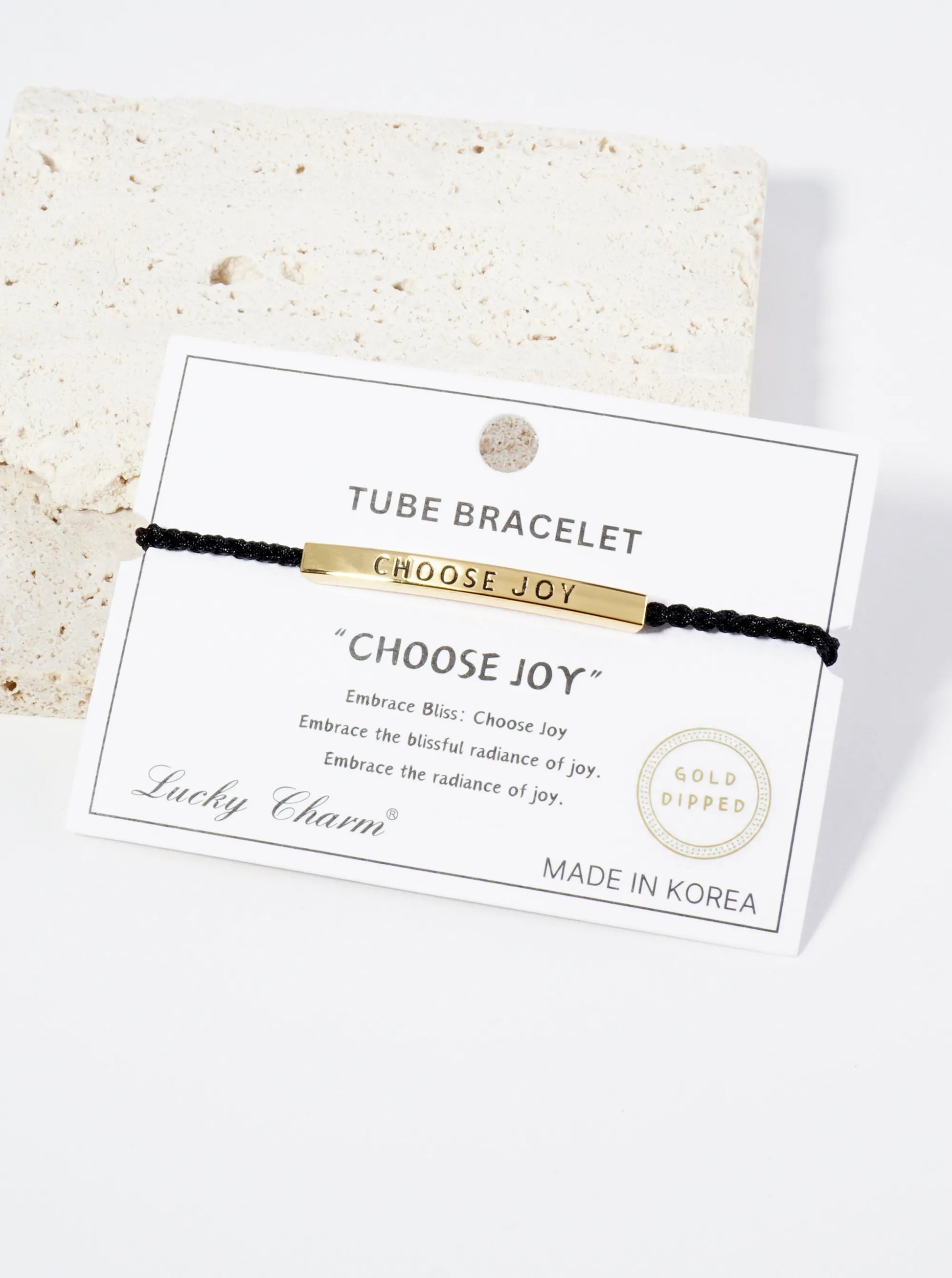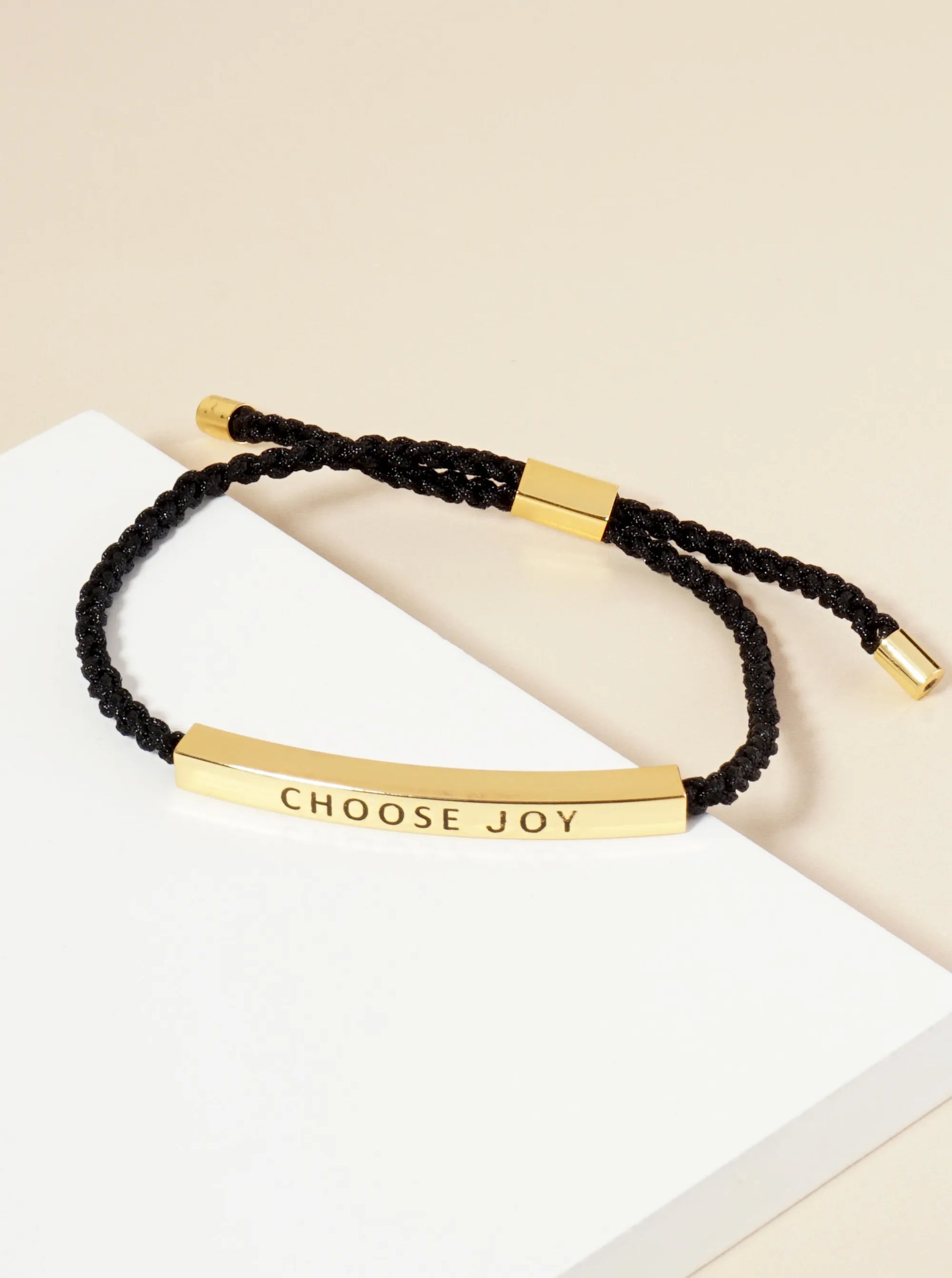 Choose Joy Engraved 18K Gold Dipped Curved Brass Tube Bar Adjustable Pull Tie Bracelet