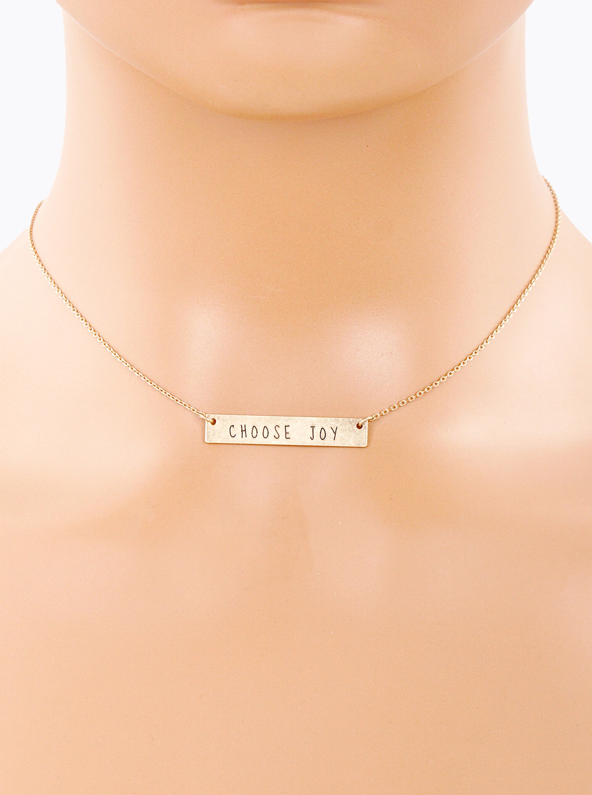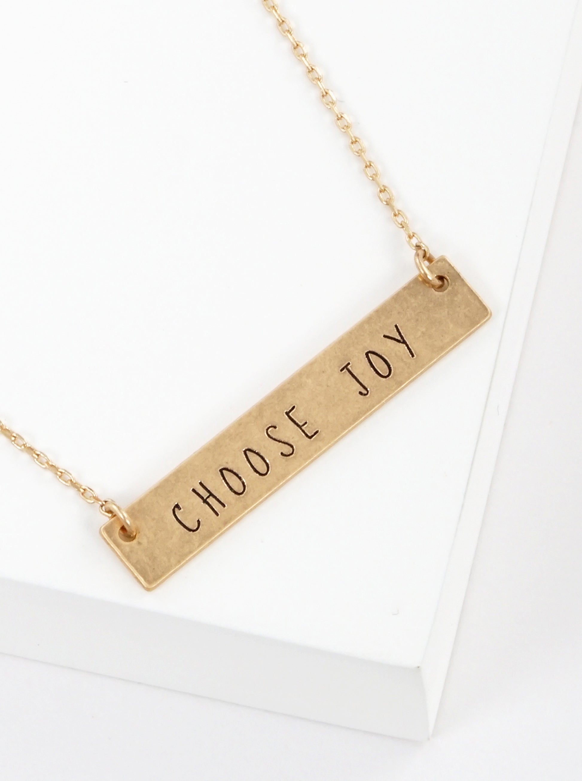 Choose Joy Engraved Horizontal Bar Pendant Necklace