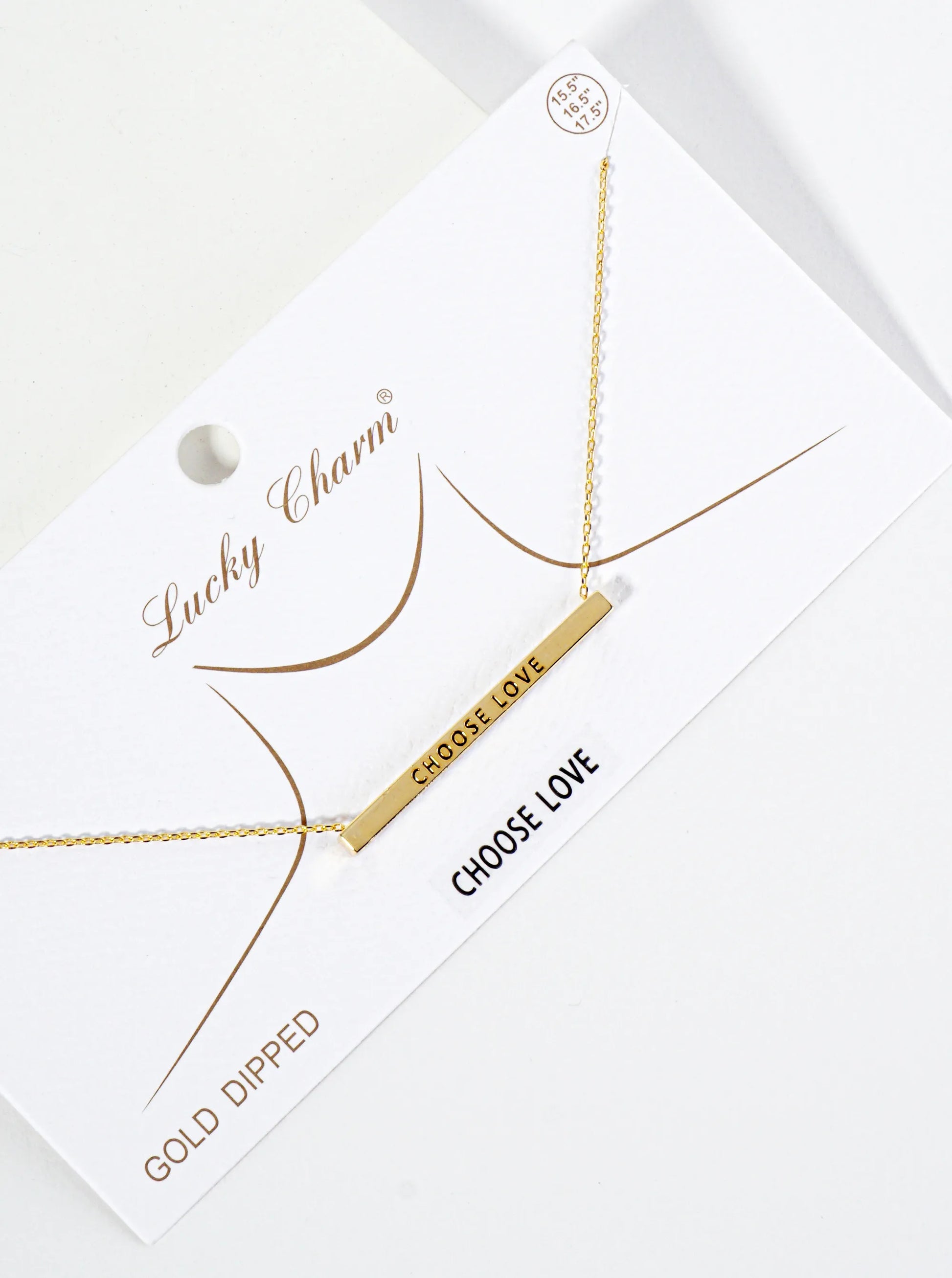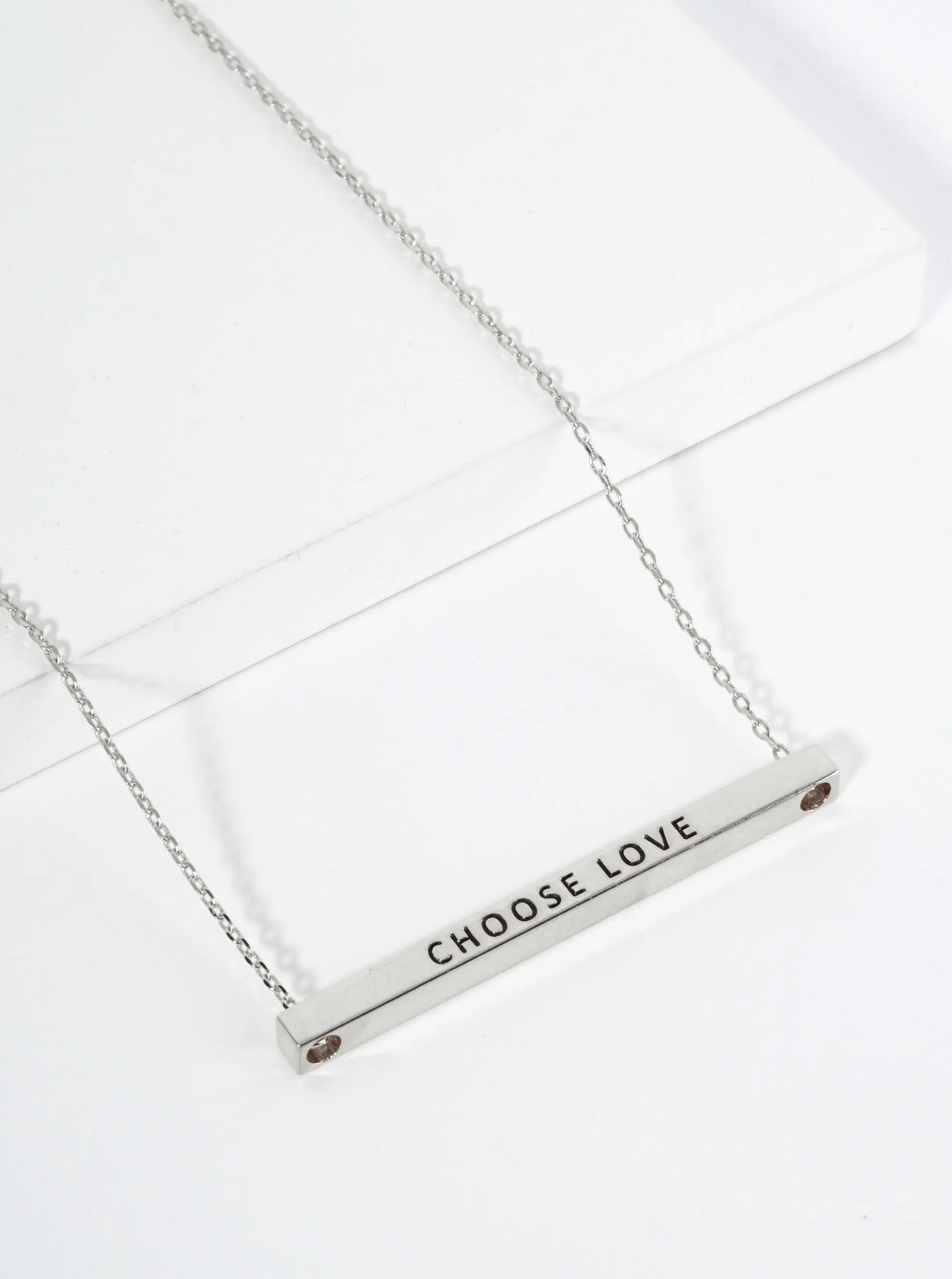 Choose Love Engraved 18K Gold Dipped Horizontal Brass Bar Pendant Inspirational Necklace