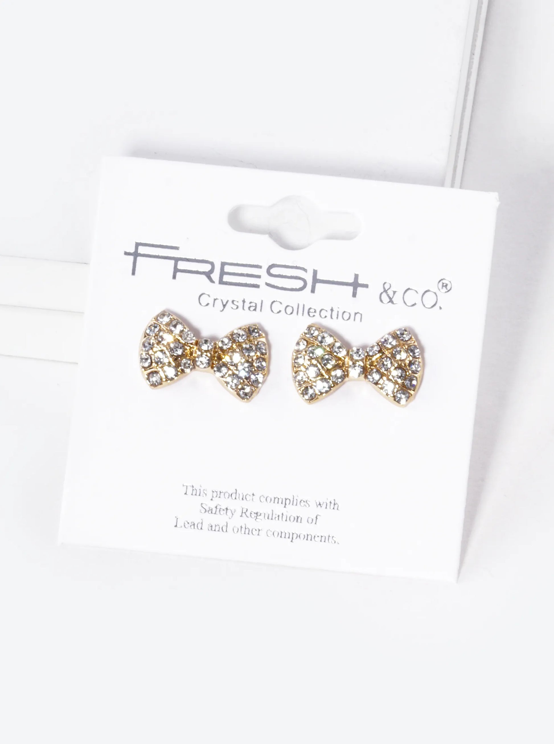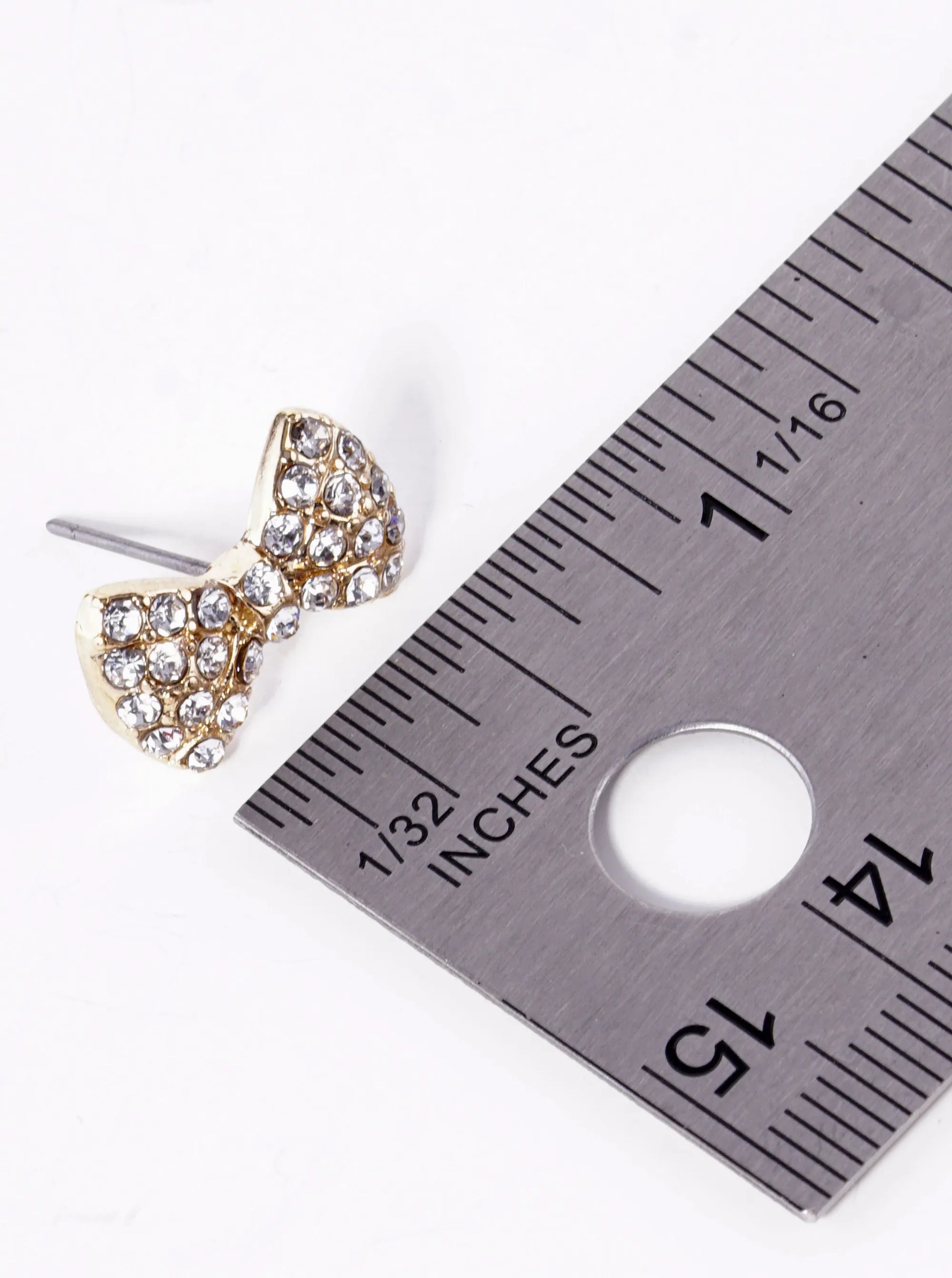 Crystal Pave 10mm Ribbon Bow Stud Earrings