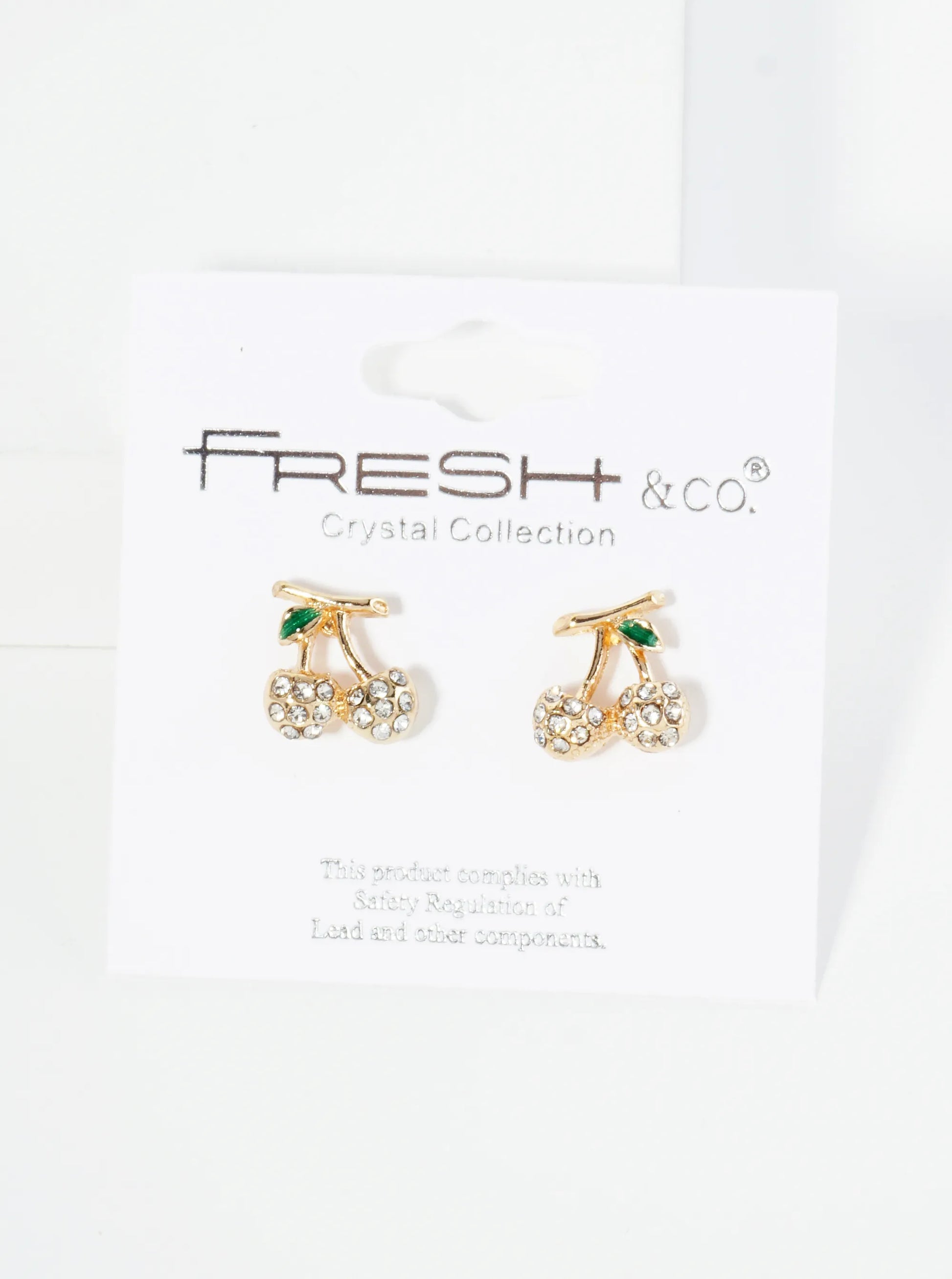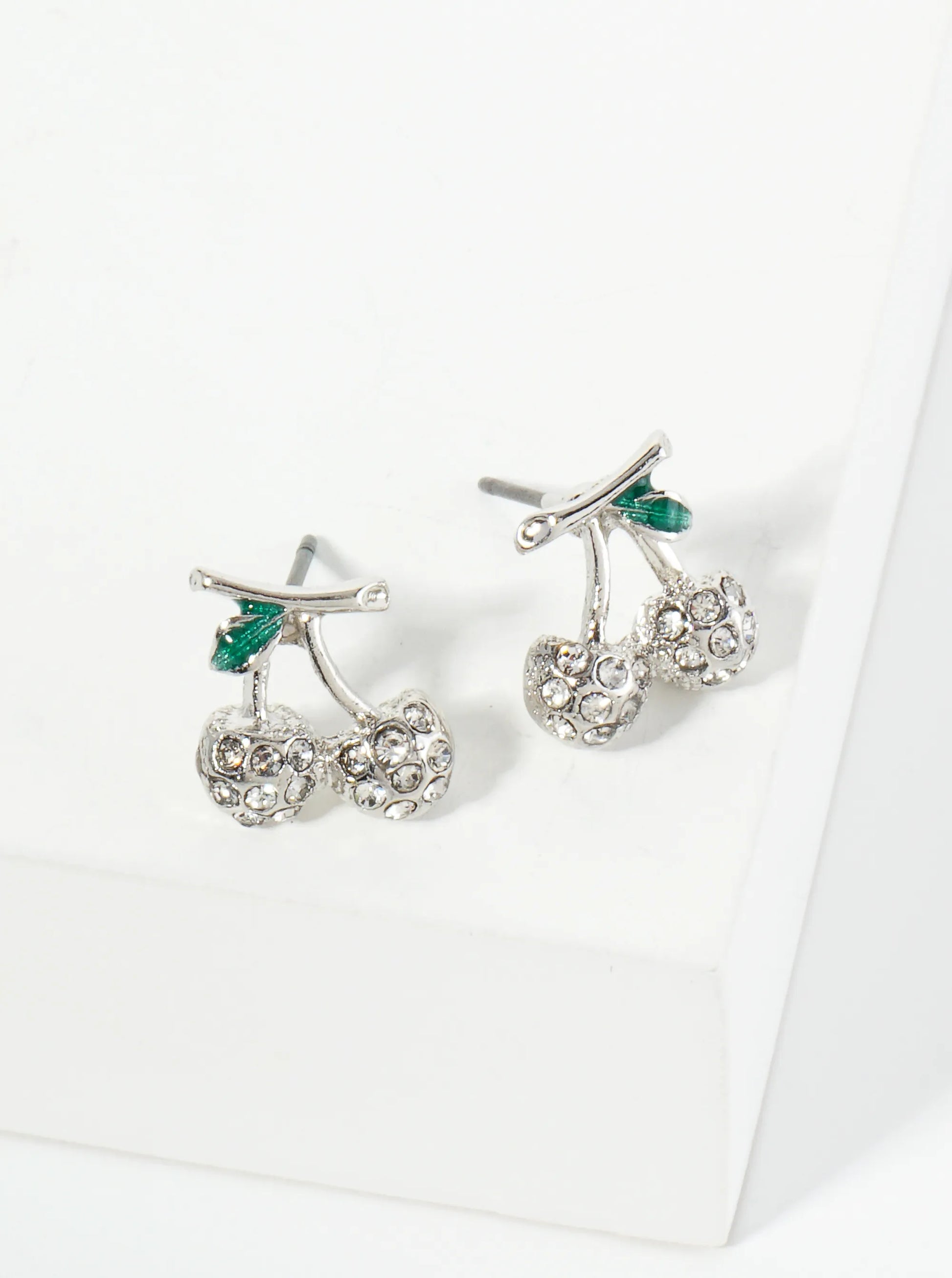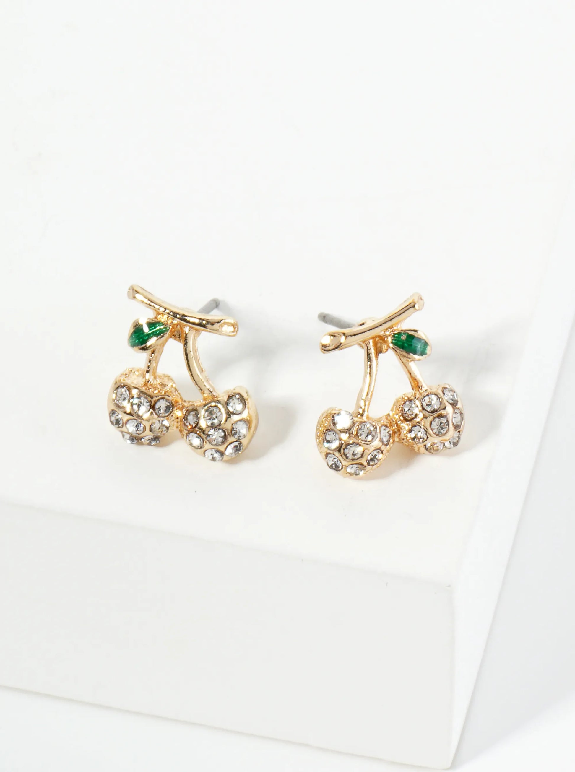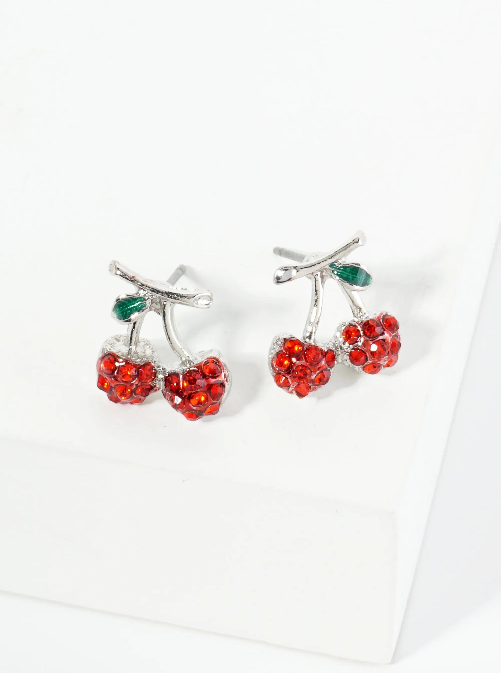 Crystal Pave 11mm Dainty Cherry Stud Earrings