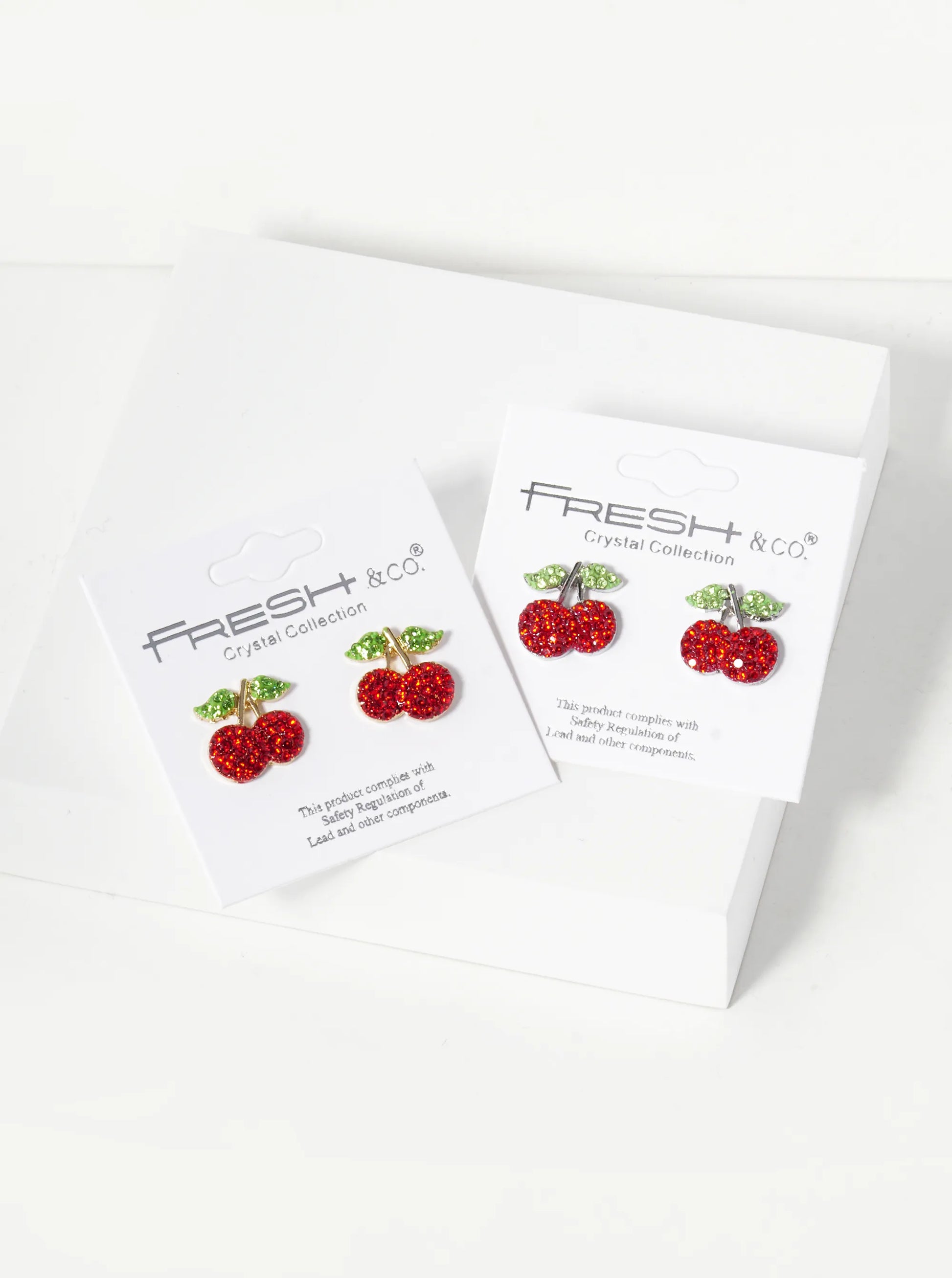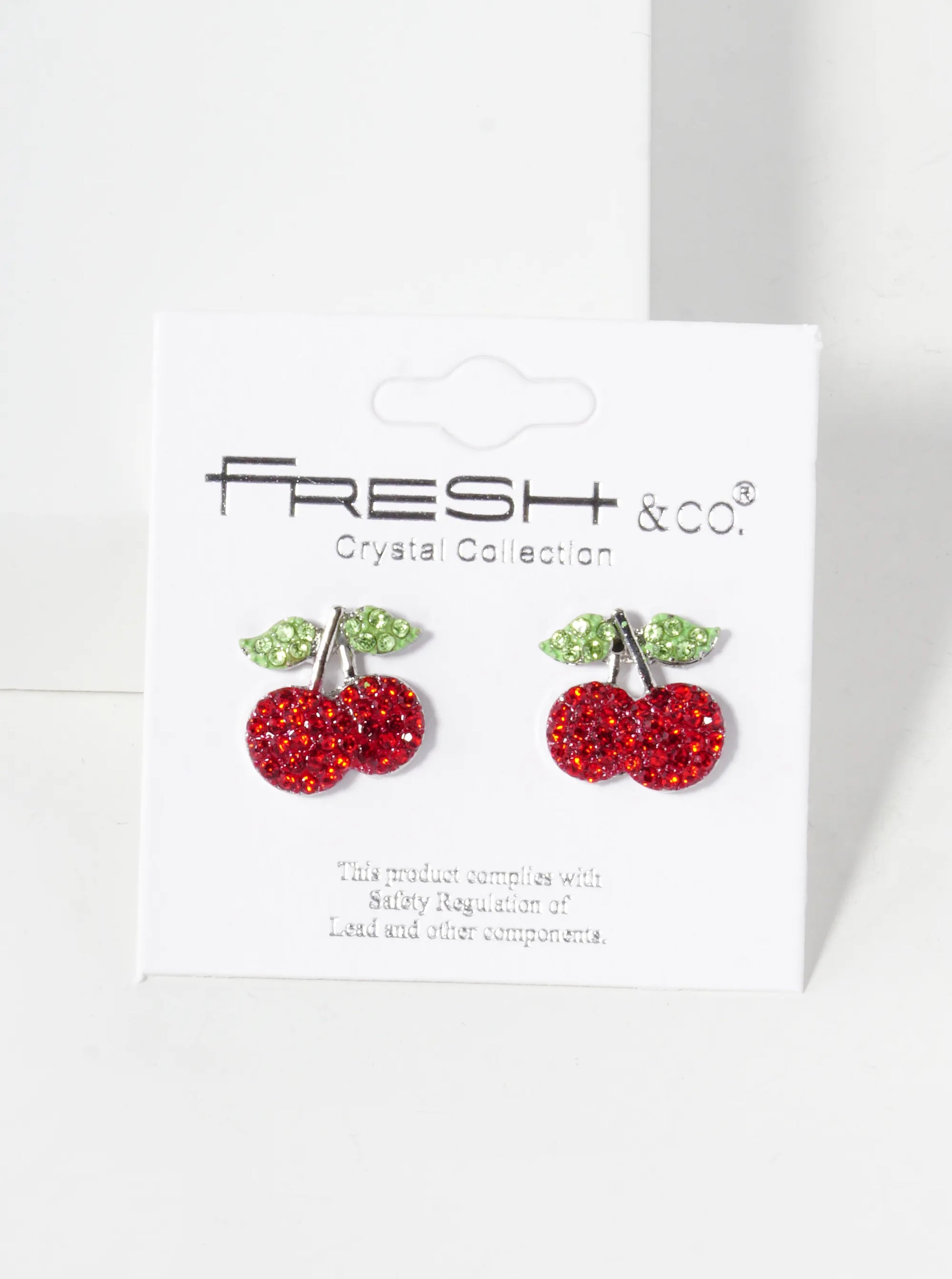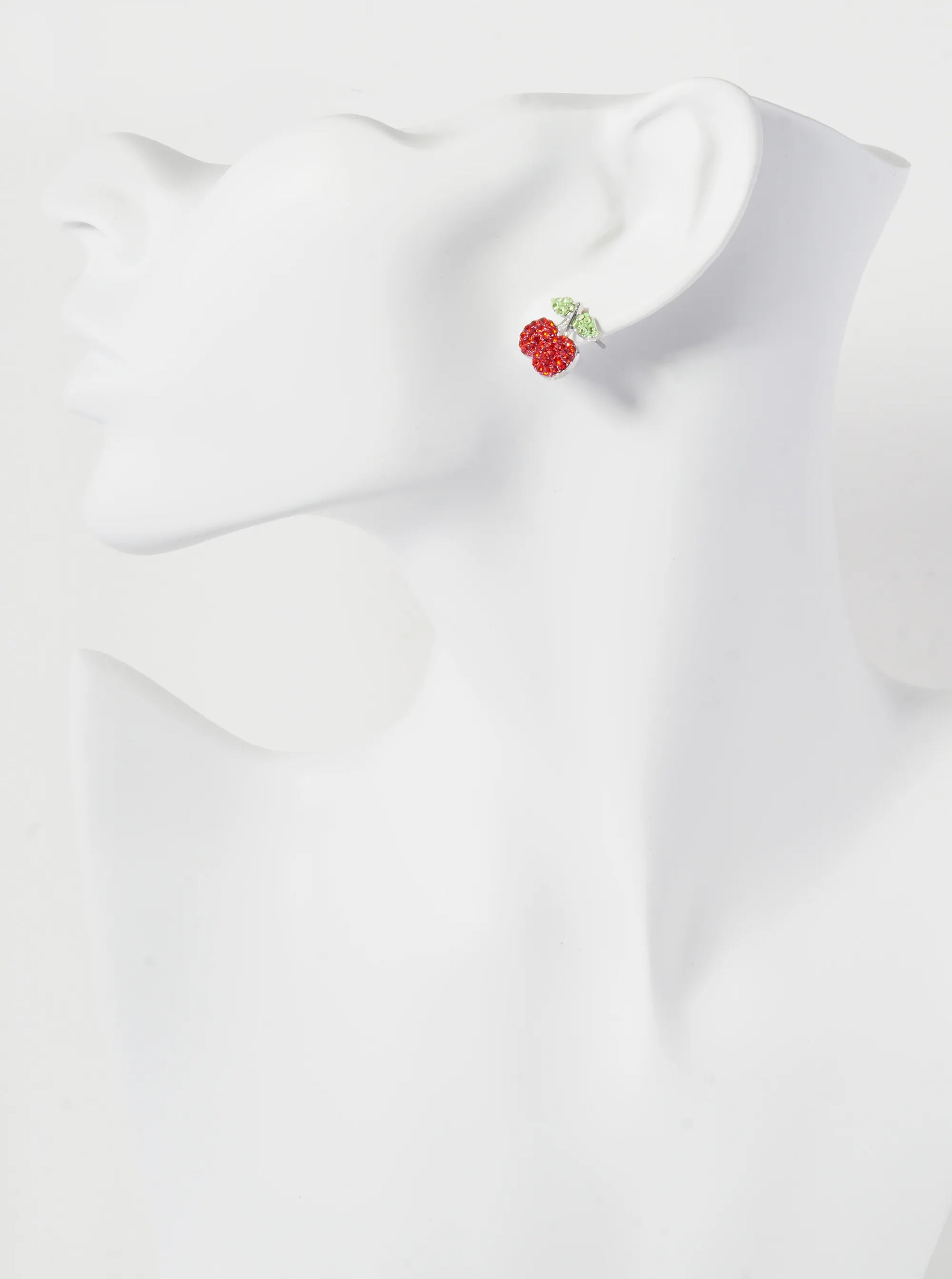 Crystal Pave 12mm Dainty Cherry Stud Earrings