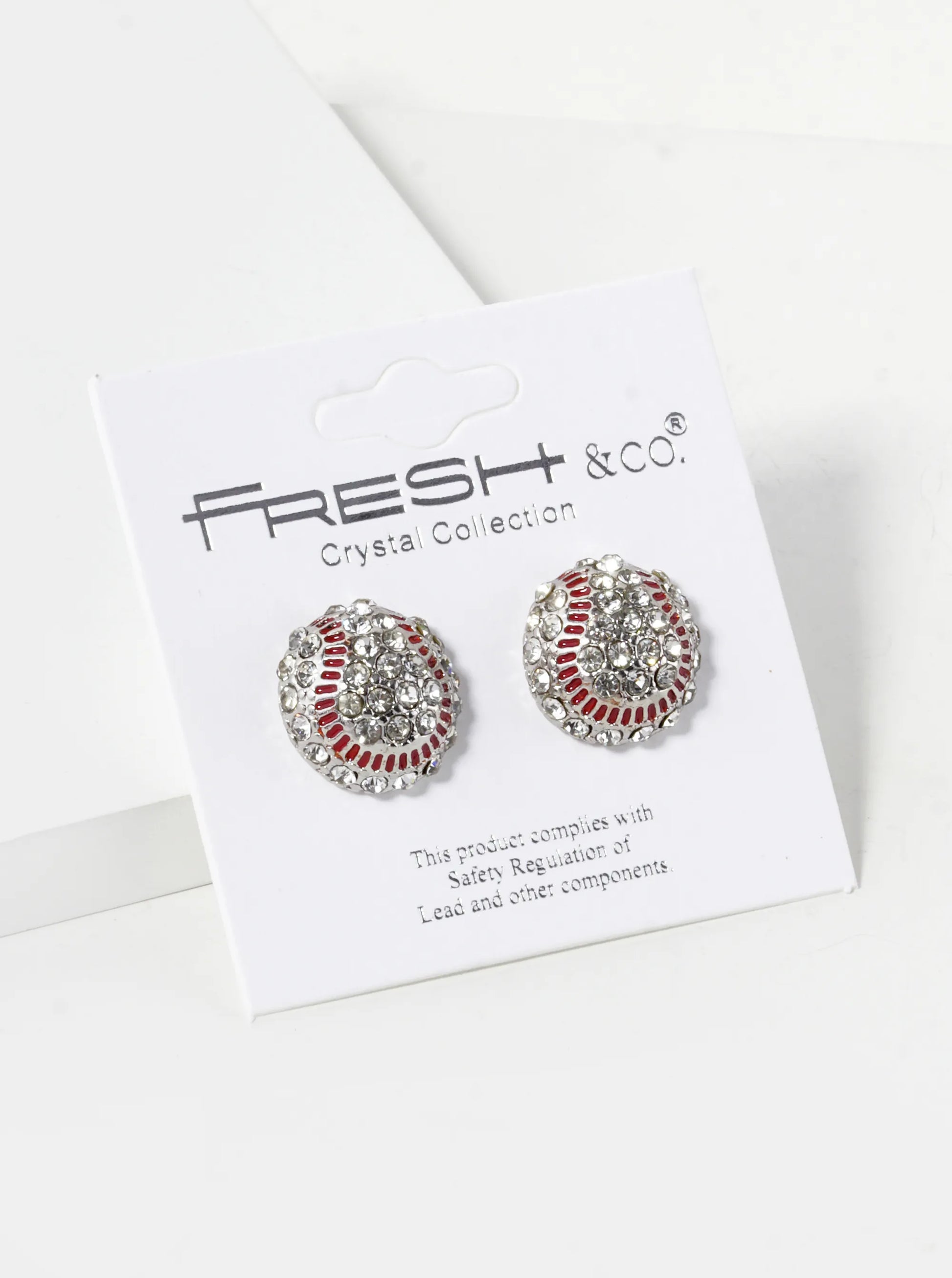 Crystal Pave 14mm Half Circle Tennis Ball Stud Earrings