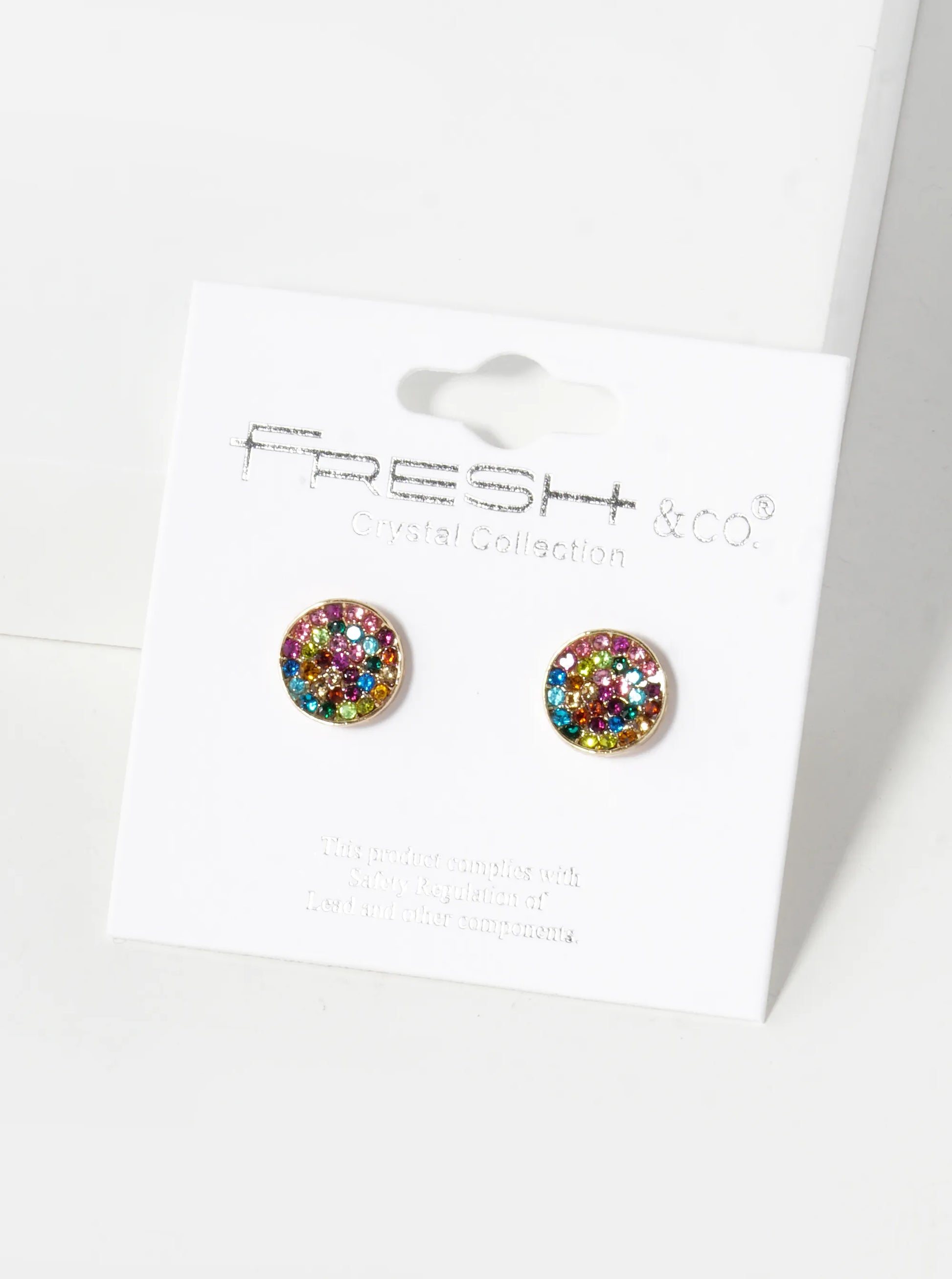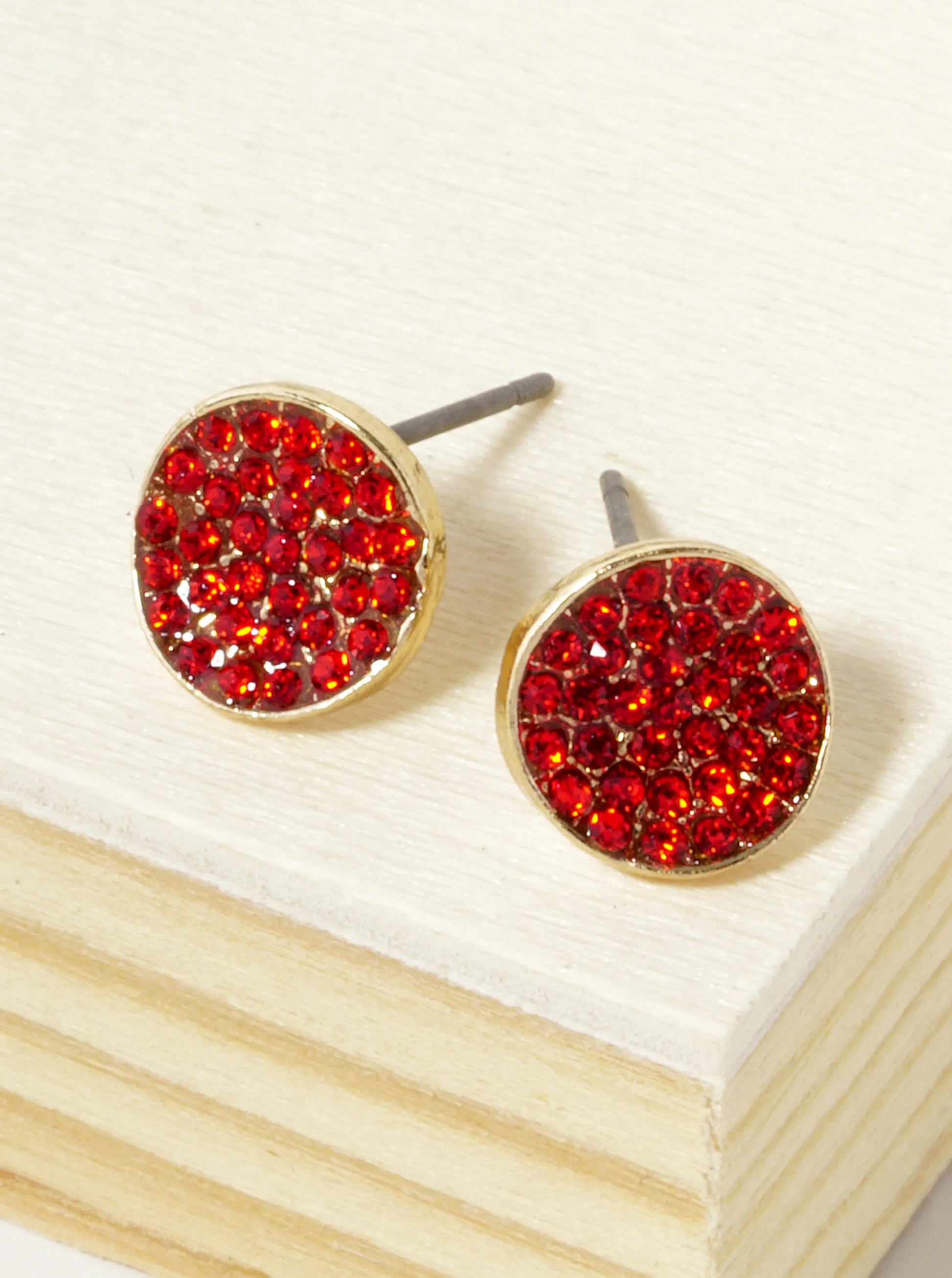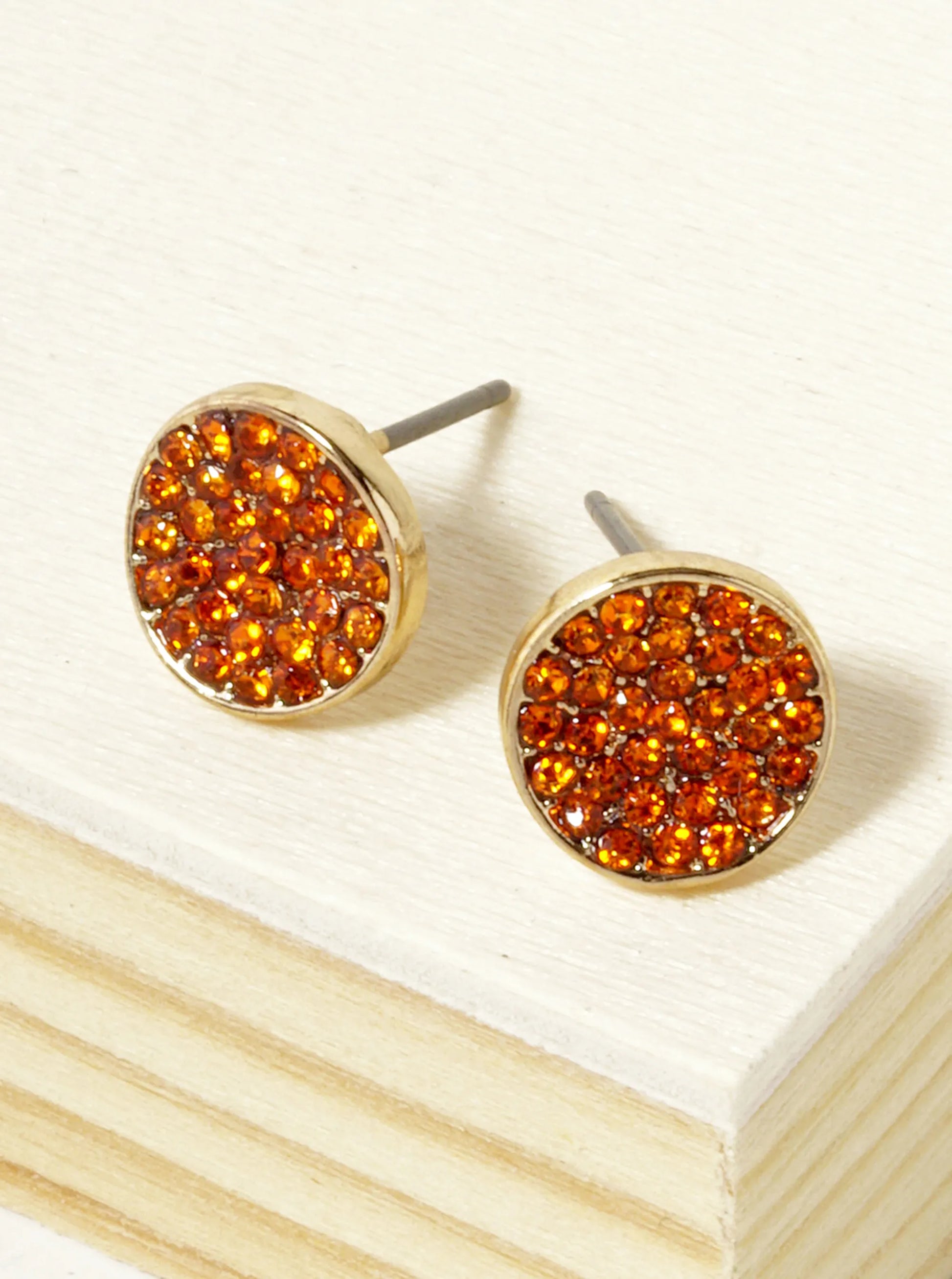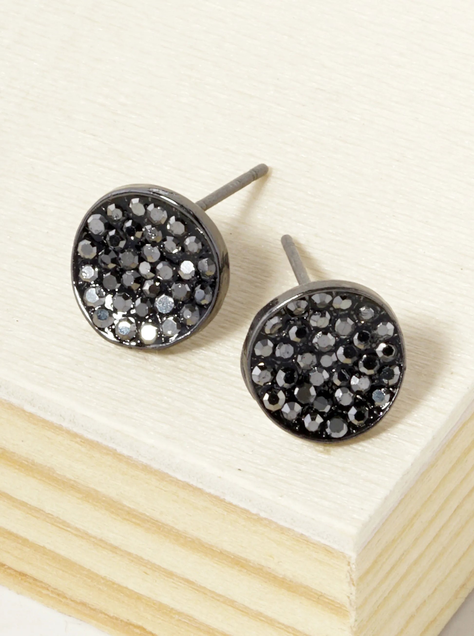 Crystal Pave 9mm Curved Round Disc Button Stud Earrings
