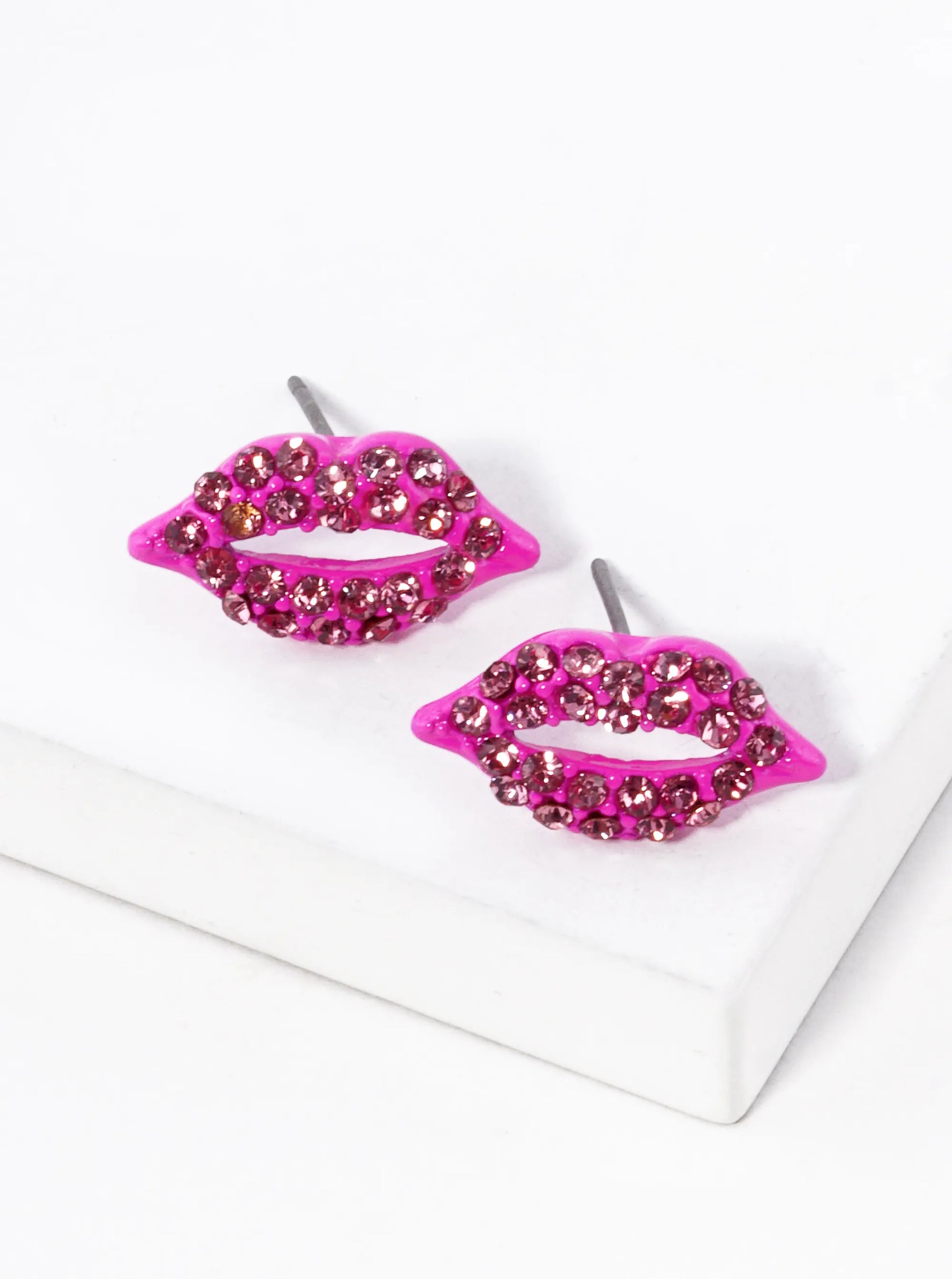 Crystal Pave 9mm Lips Post Stud Earrings