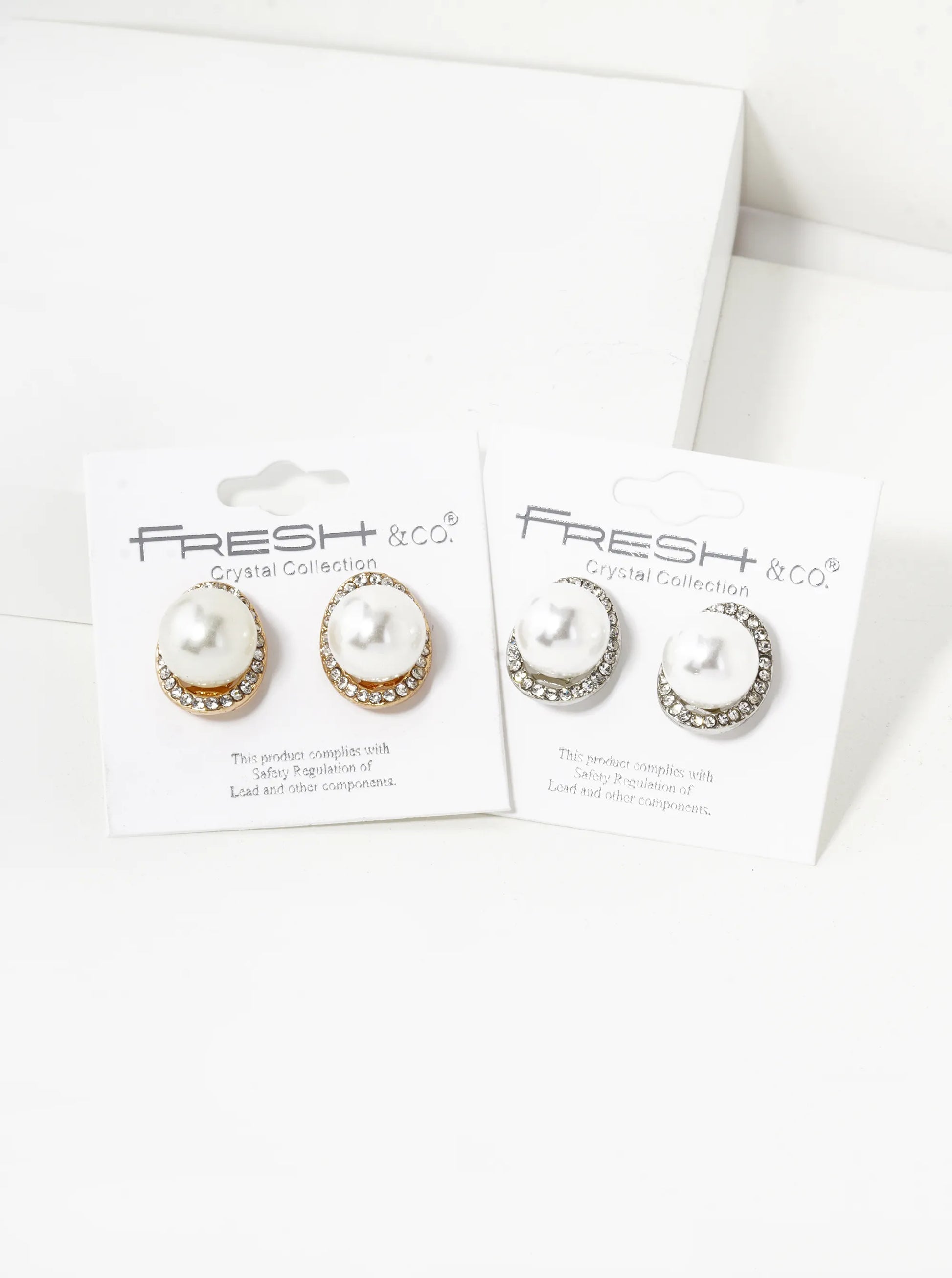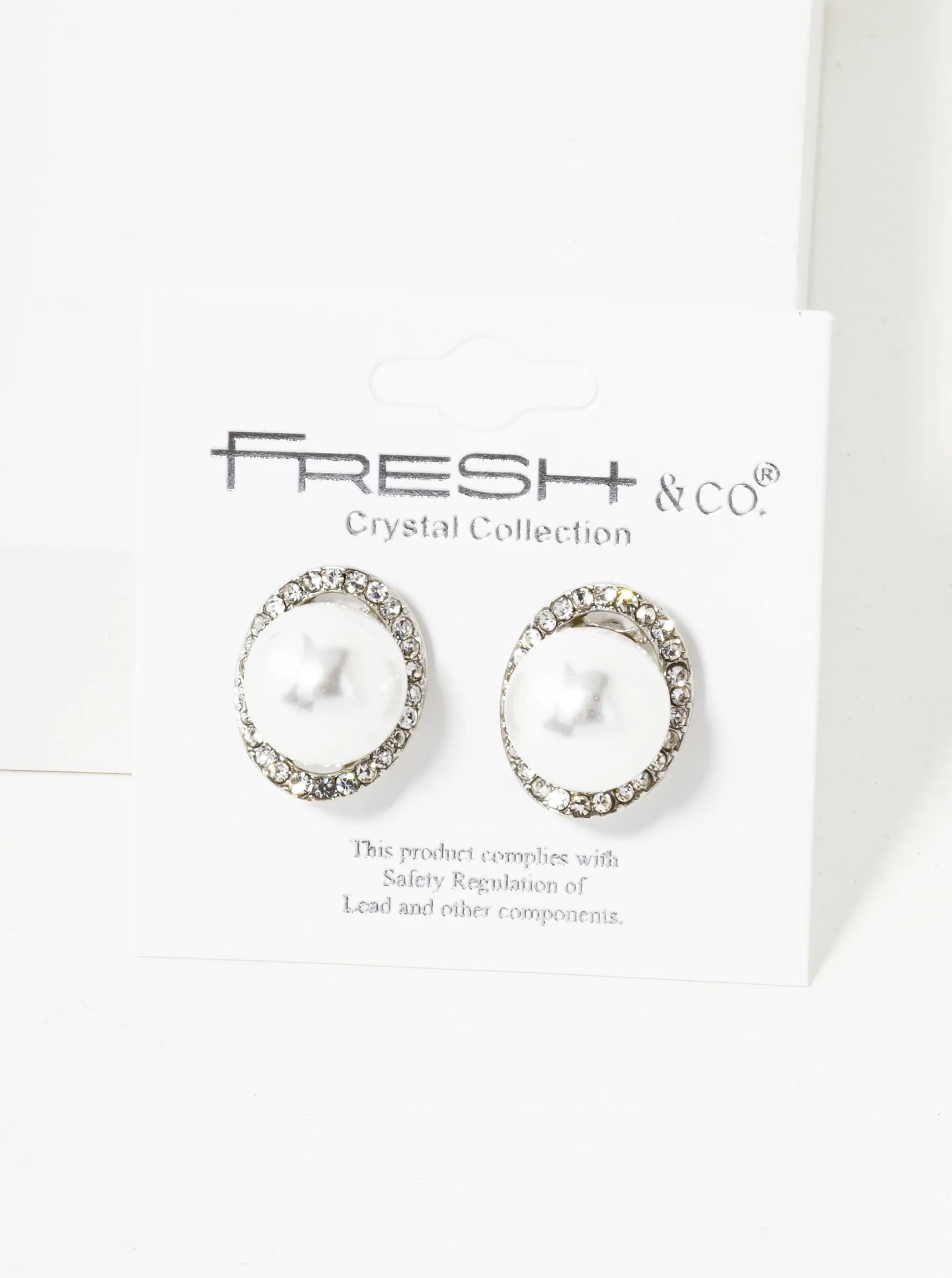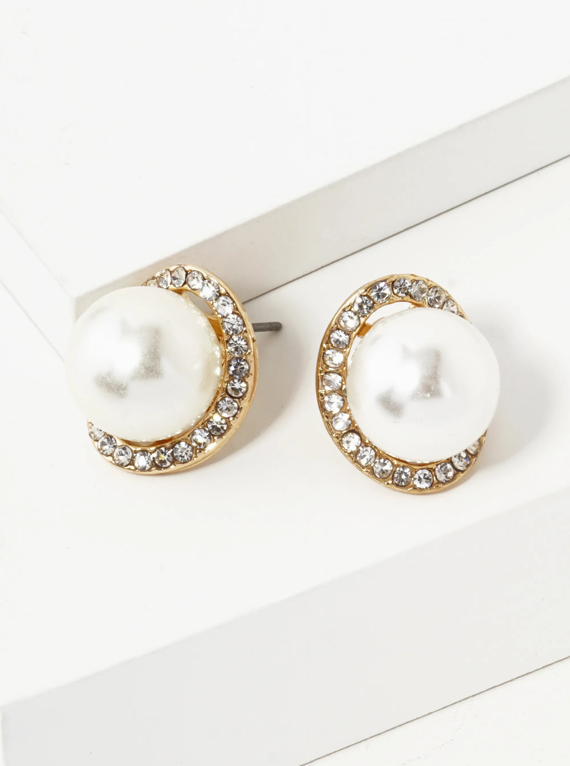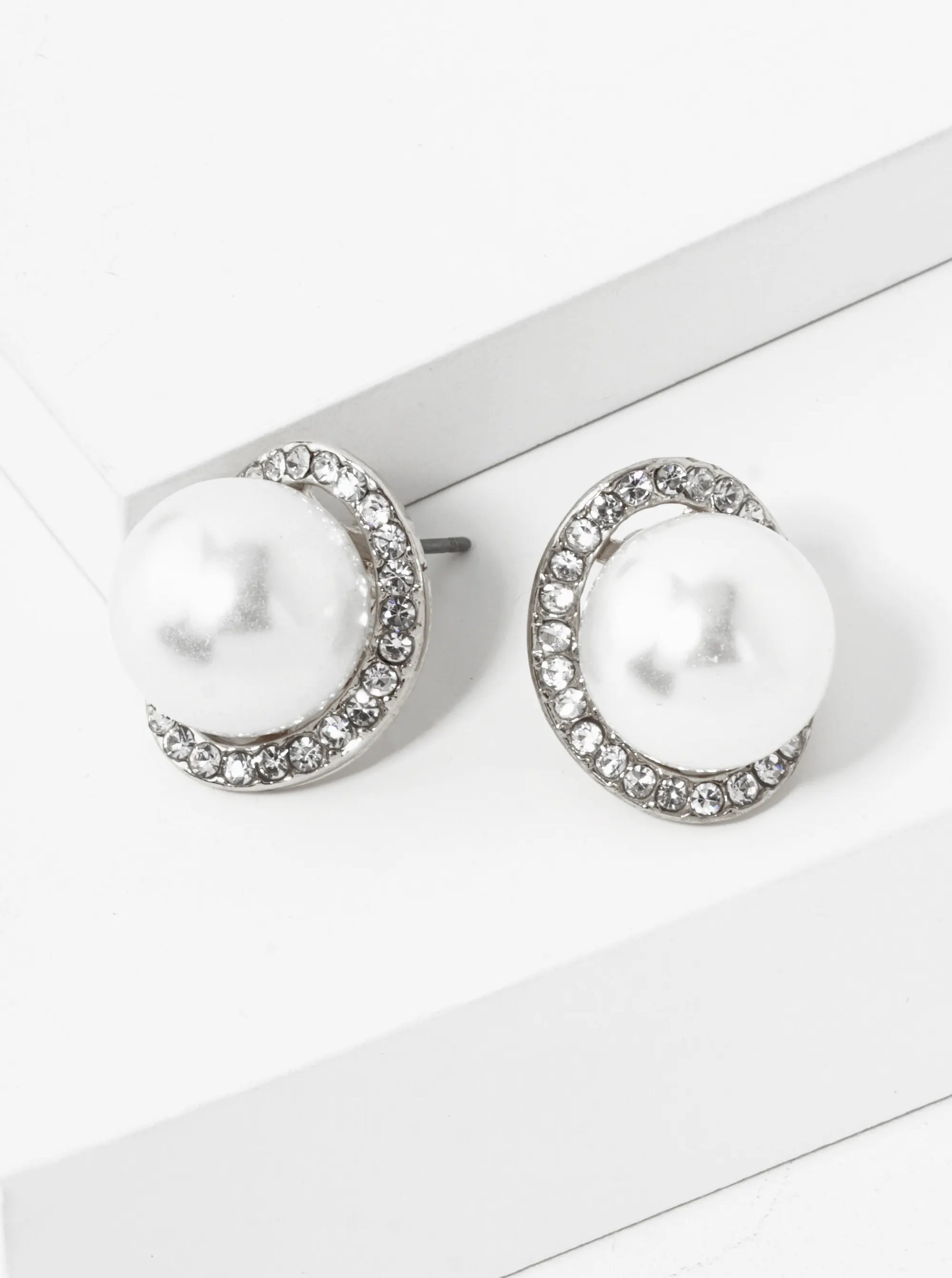Crystal Pave Curved Oval With12mm Pearl Stud Earrings