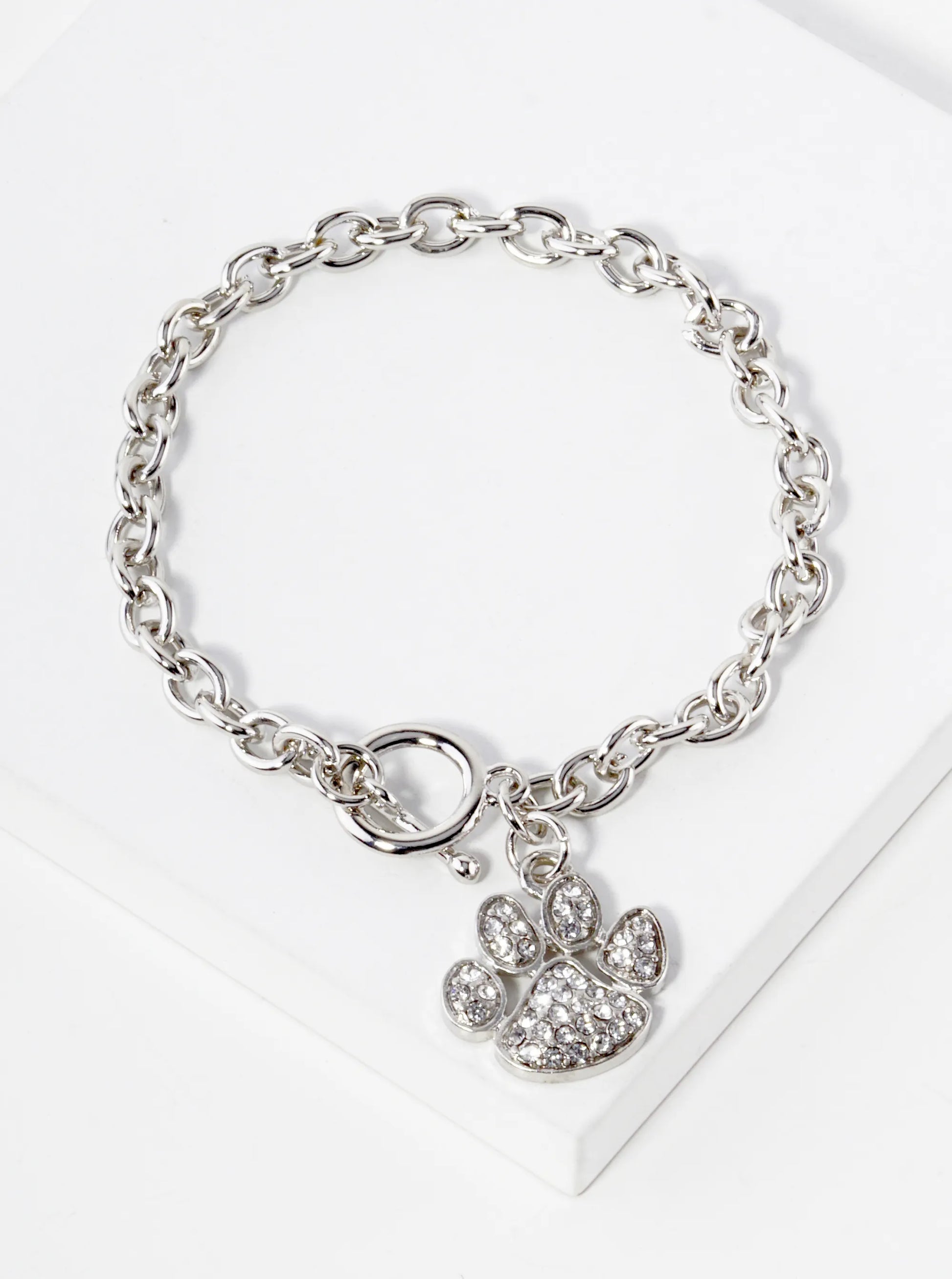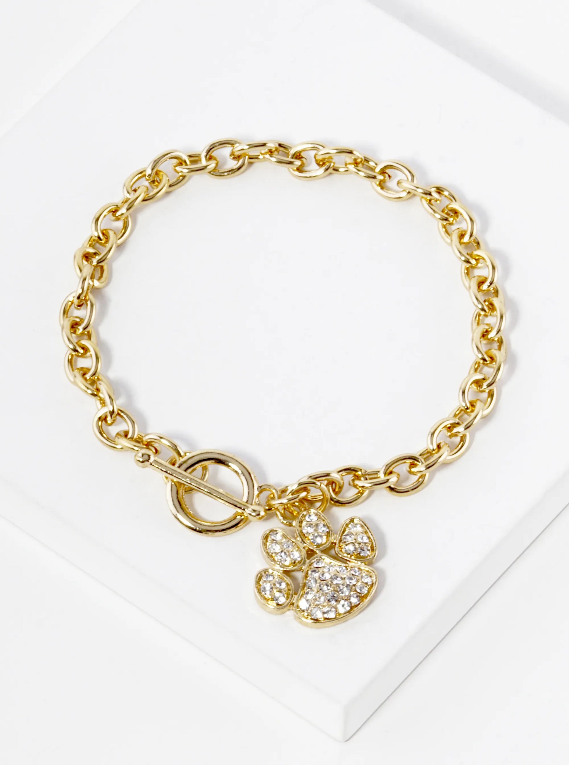 Crystal Pave Dog Paw Game Day Mascot Charm Toggle Closure Chain Bracelet