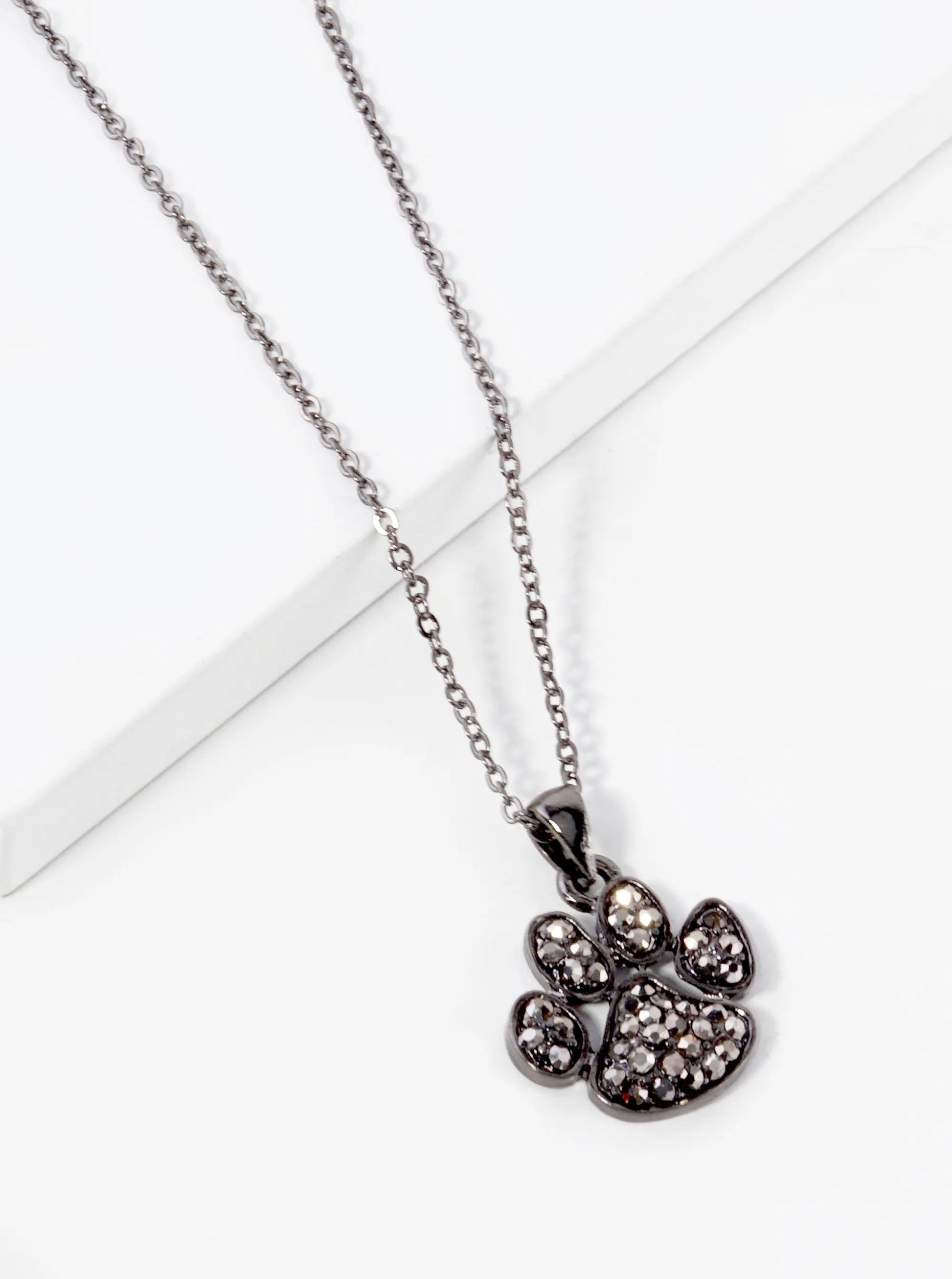 Crystal Pave Dog Paw Game Day Mascot Pendant Necklace