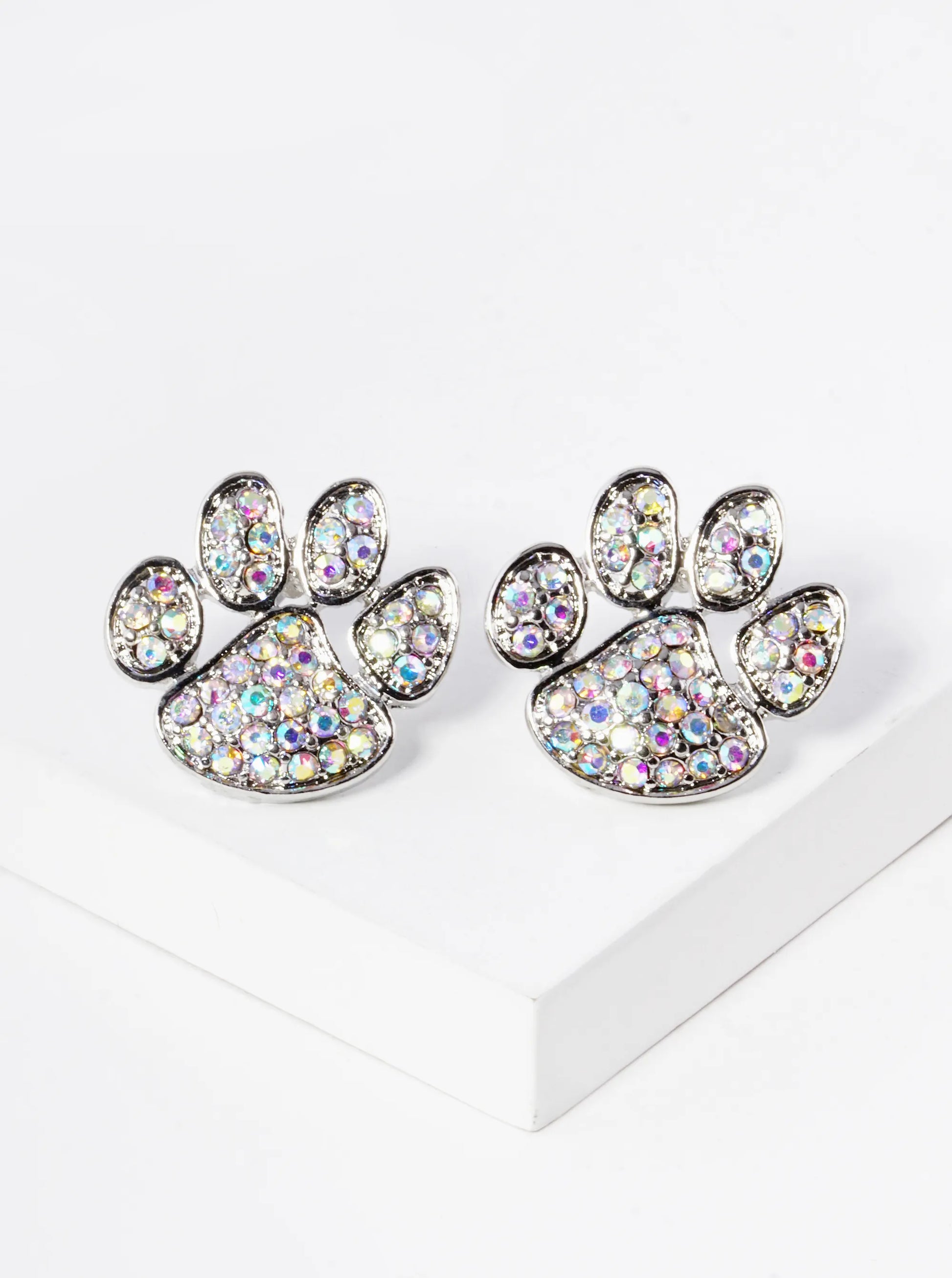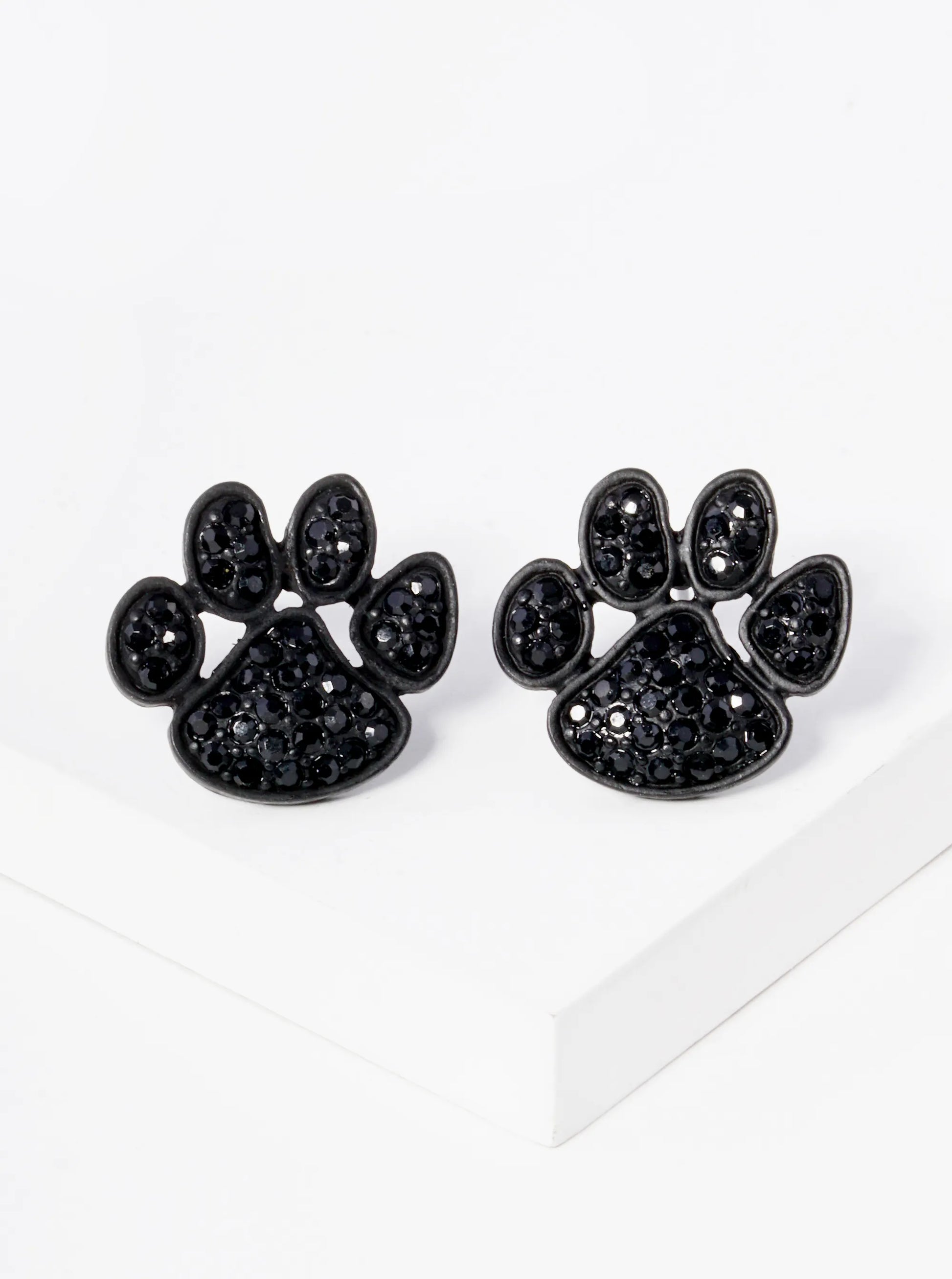 Crystal Pave Dog Paw Game Day Mascot Post Stud Earrings