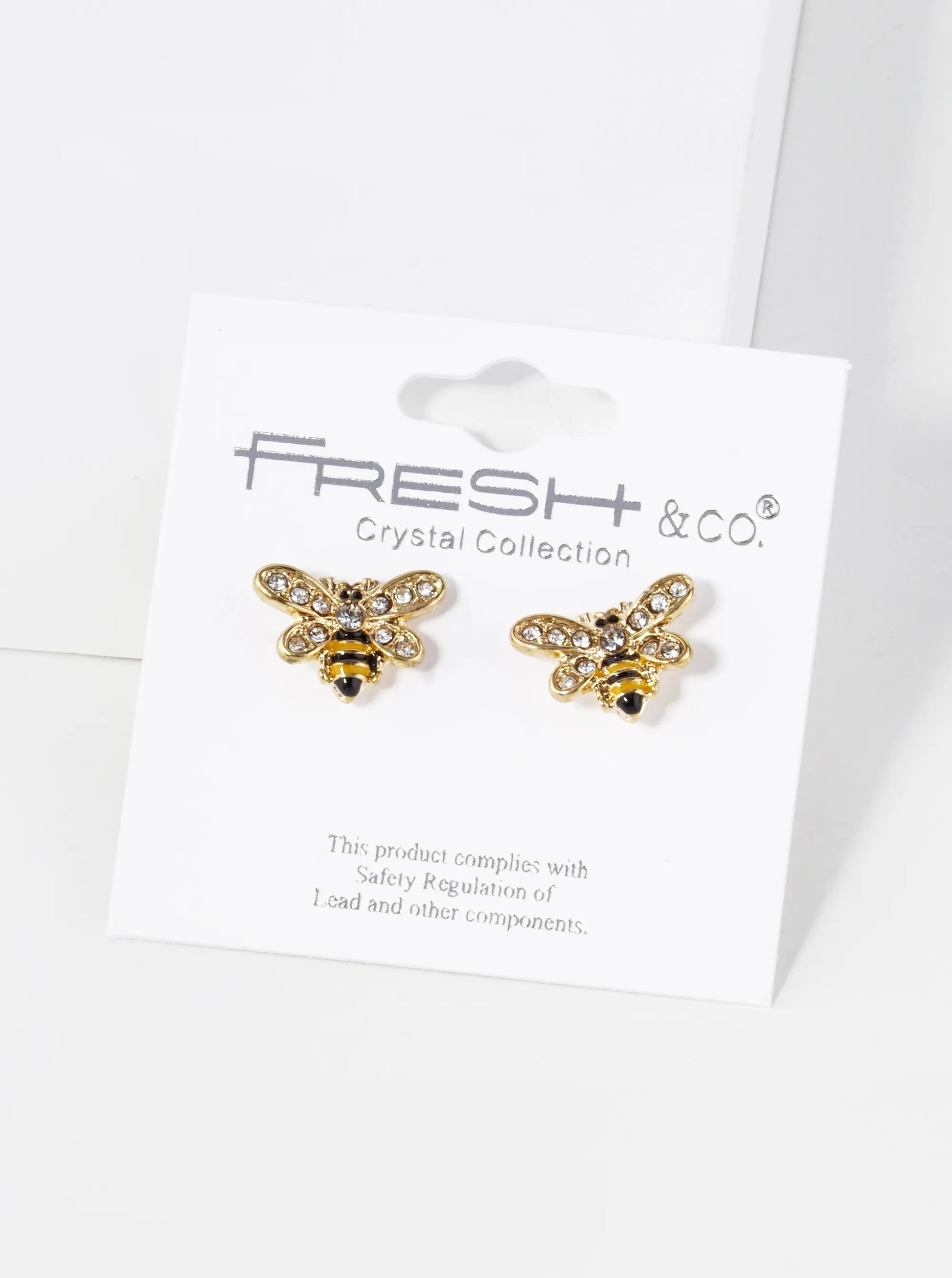 Crystal Pave Enamel 10mm Honey Bee Stud Earrings