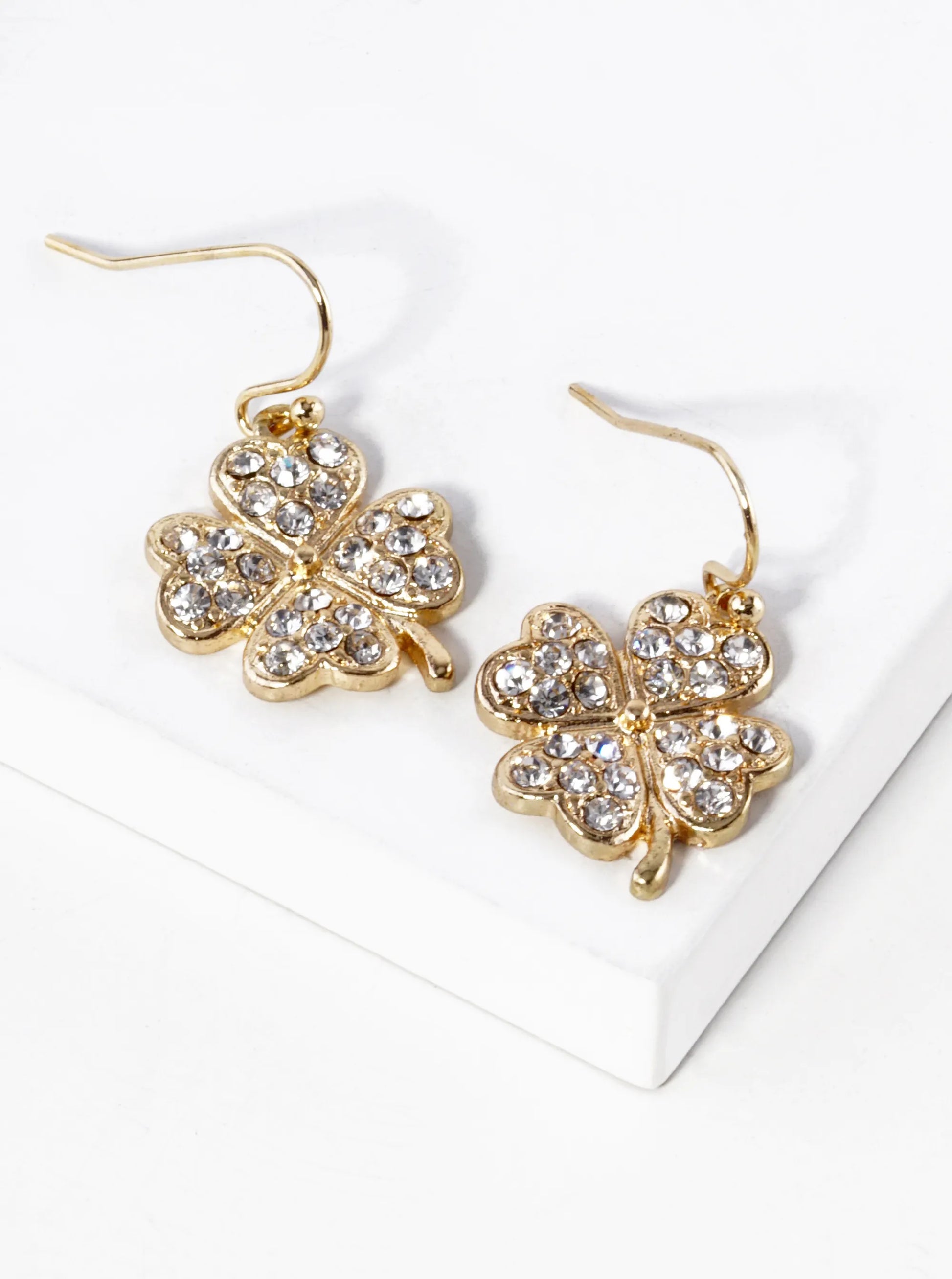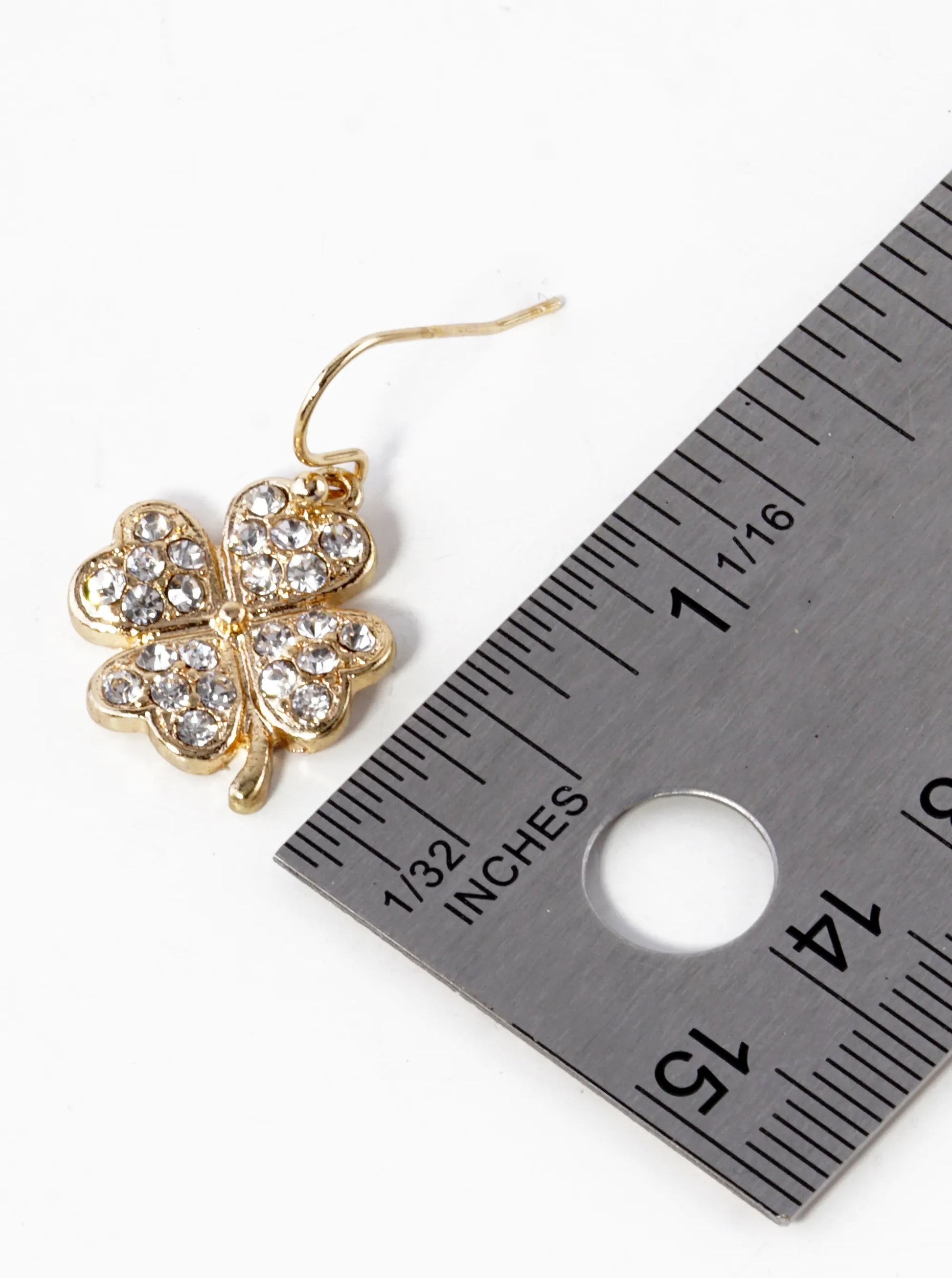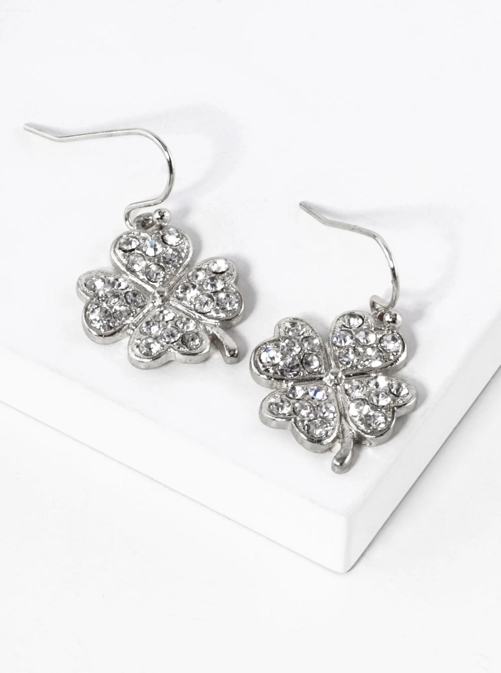 Crystal Pave Four-Leaf Clover Drop Earrings